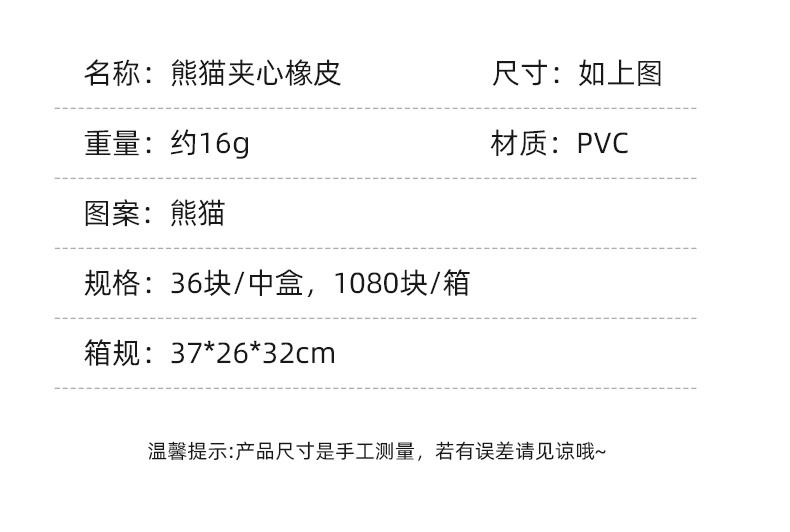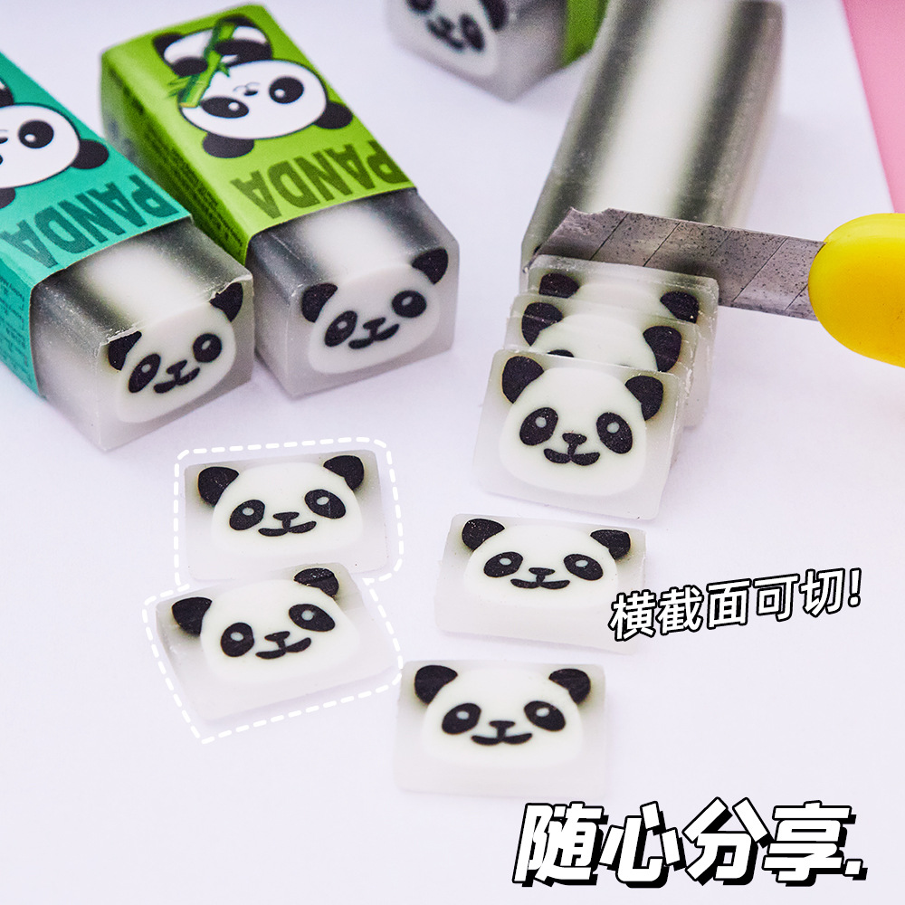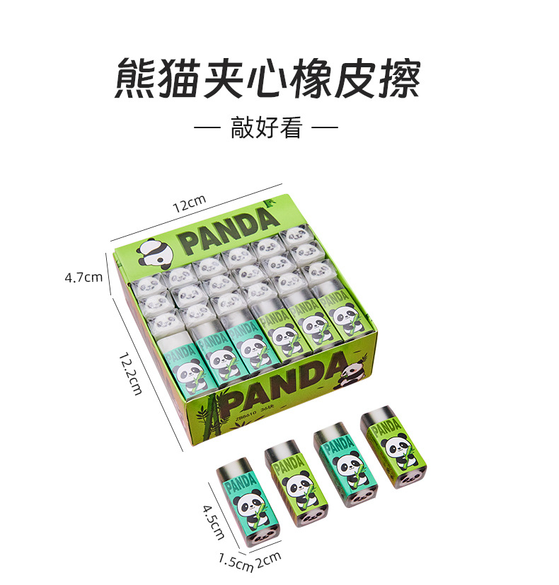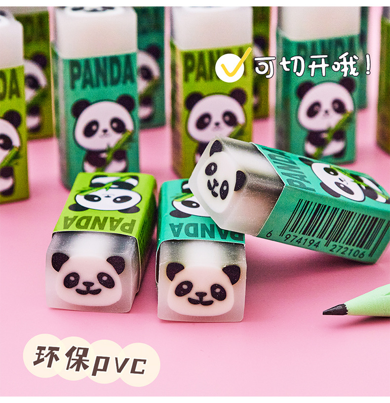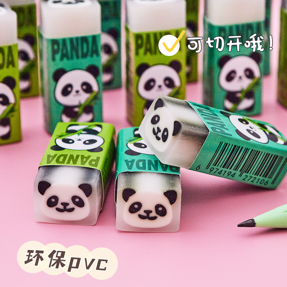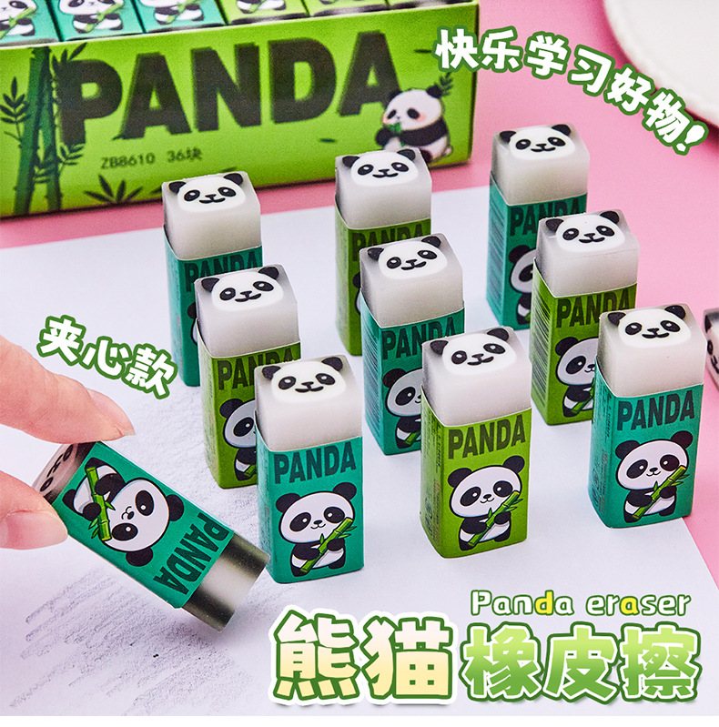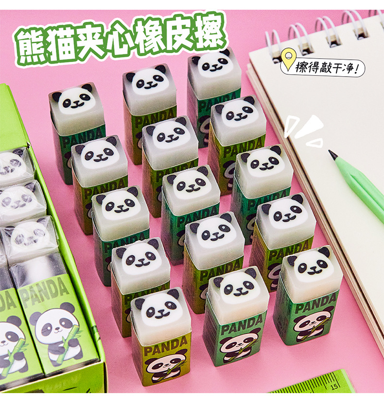 卡通熊猫橡皮擦批发小学生专用可爱夹心绘画橡皮考试擦的净铅笔擦