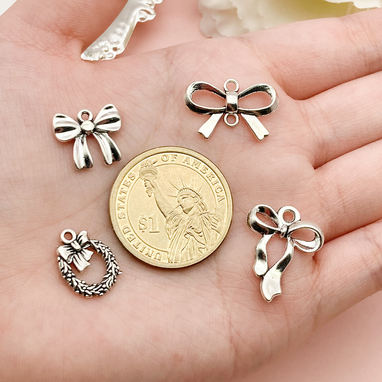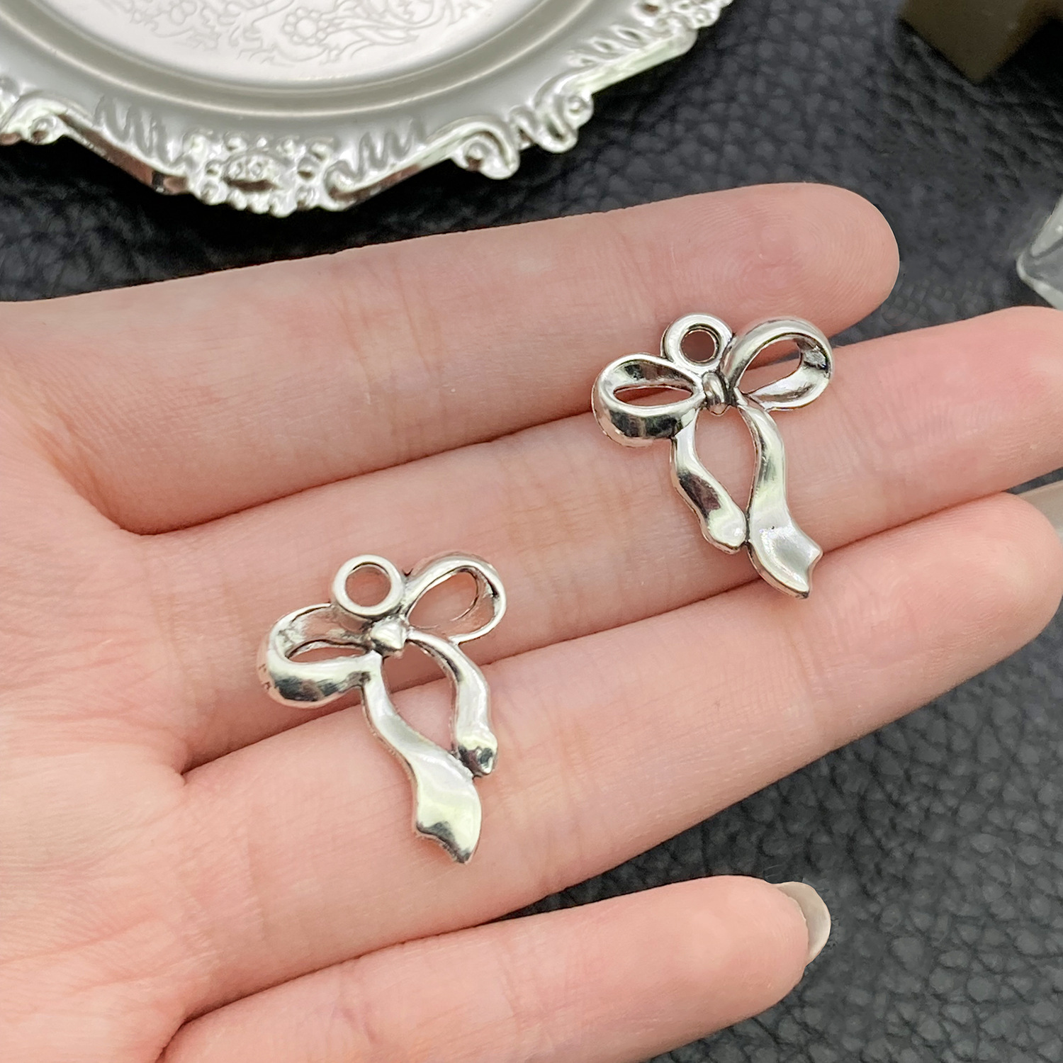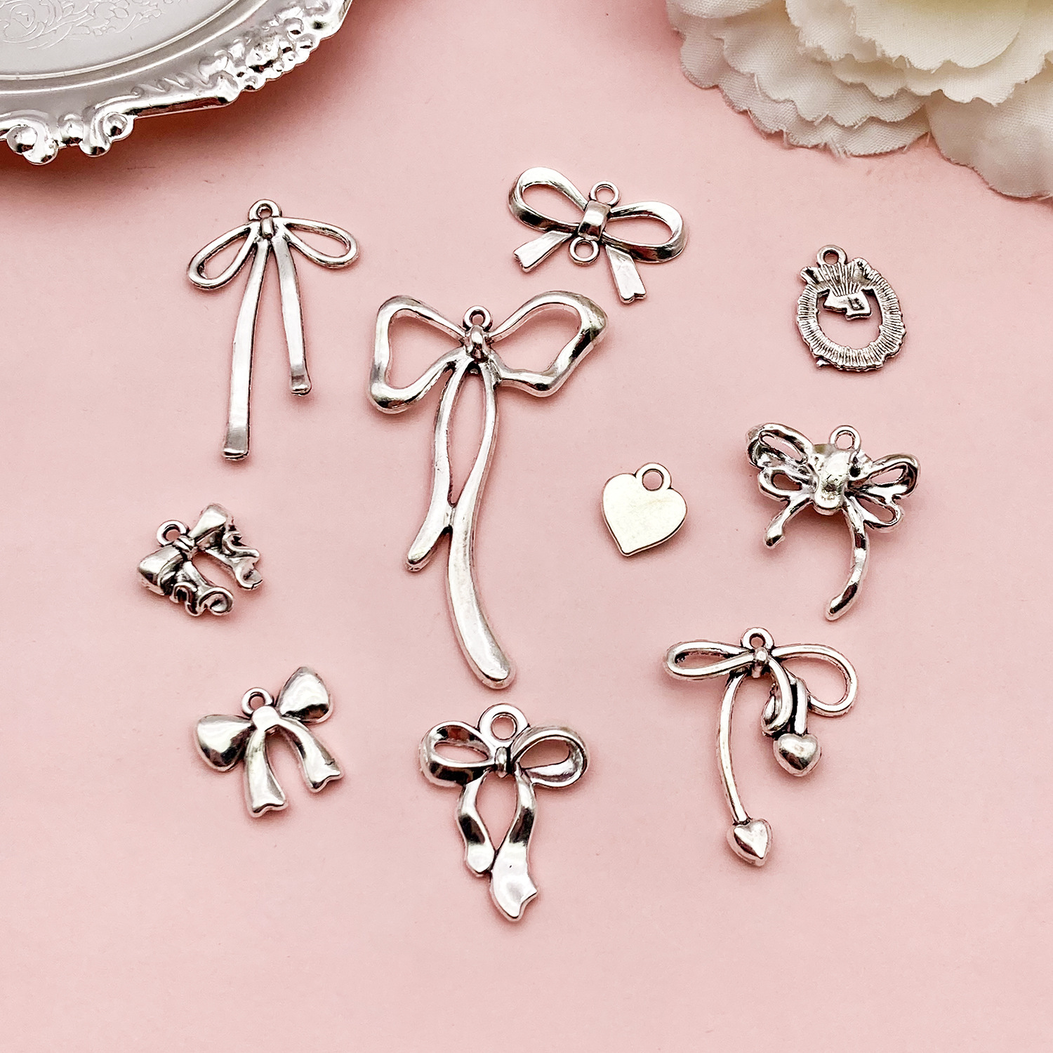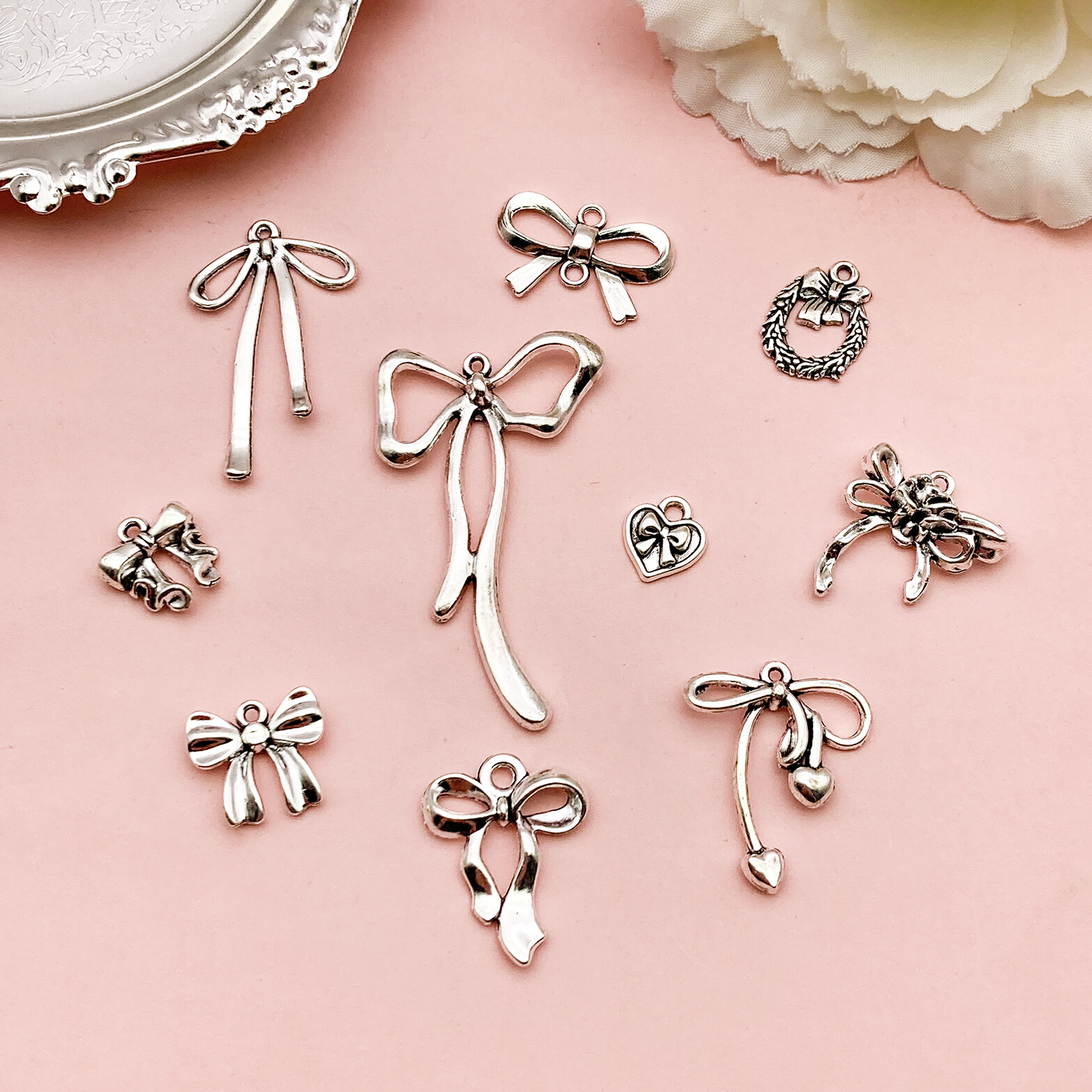 10款蝴蝶结diy合金镂空可爱吊坠魅力手工项链手链耳环饰品配件