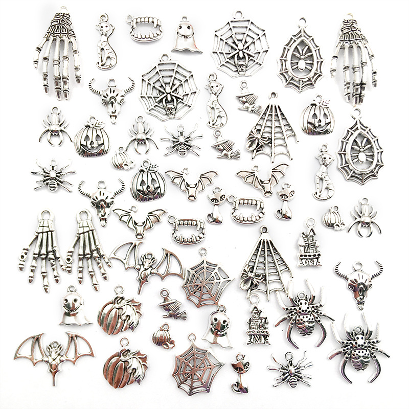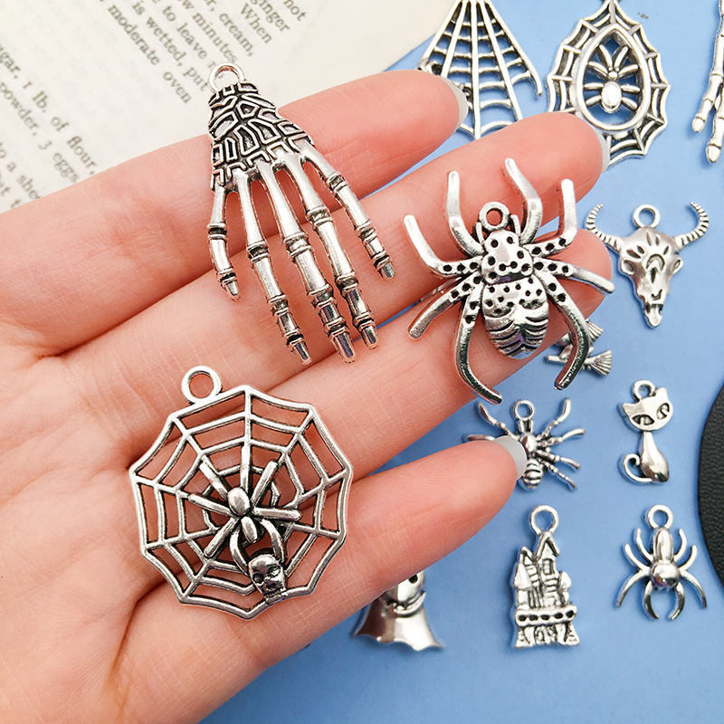 跨境热销DIY复古锌合金饰品配件1个蜘蛛蝙蝠骷髅手项链吊坠挂件