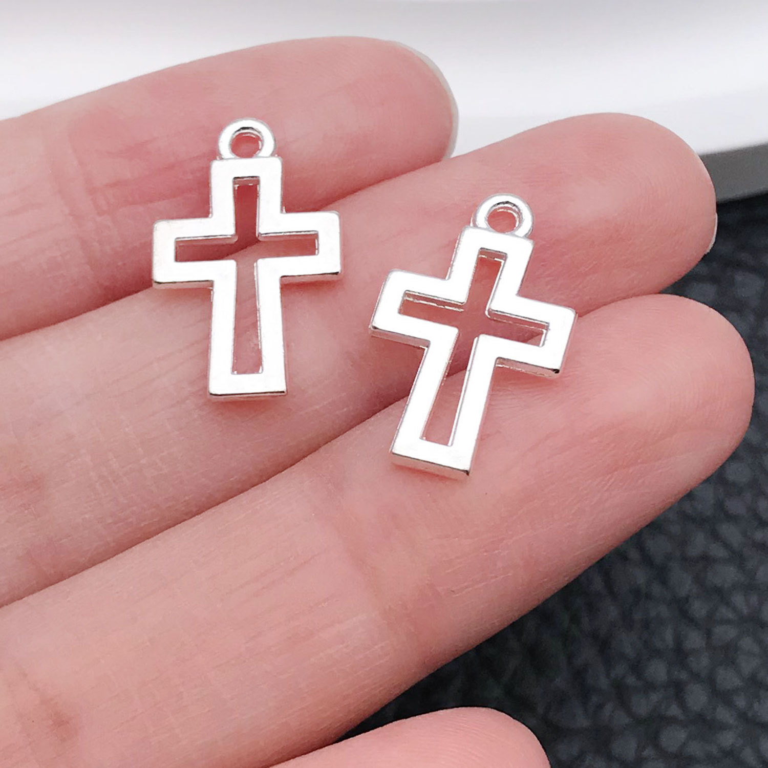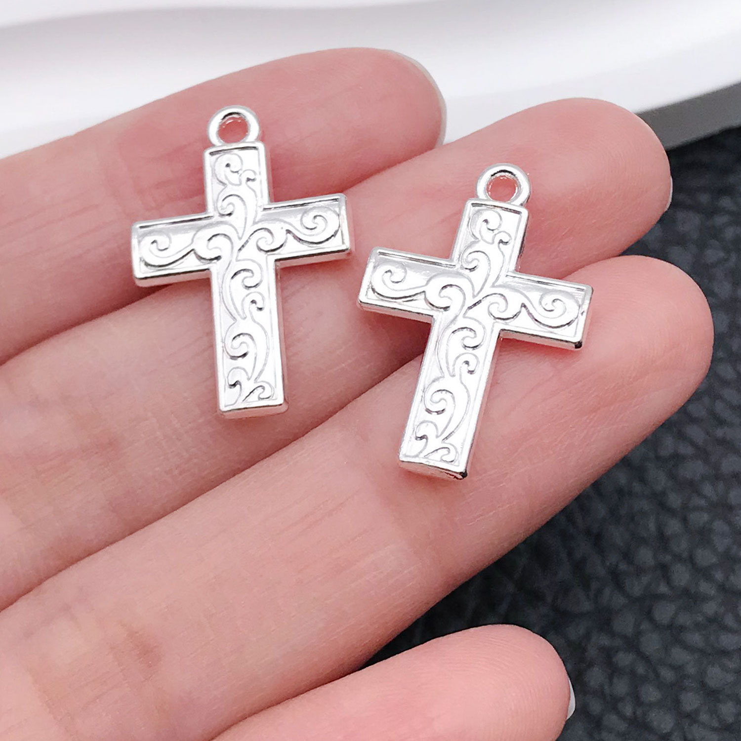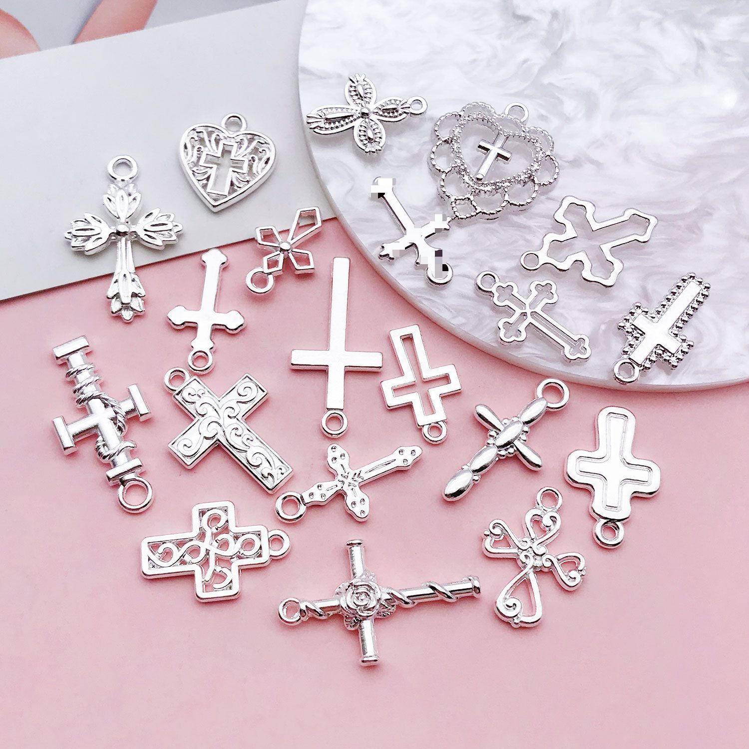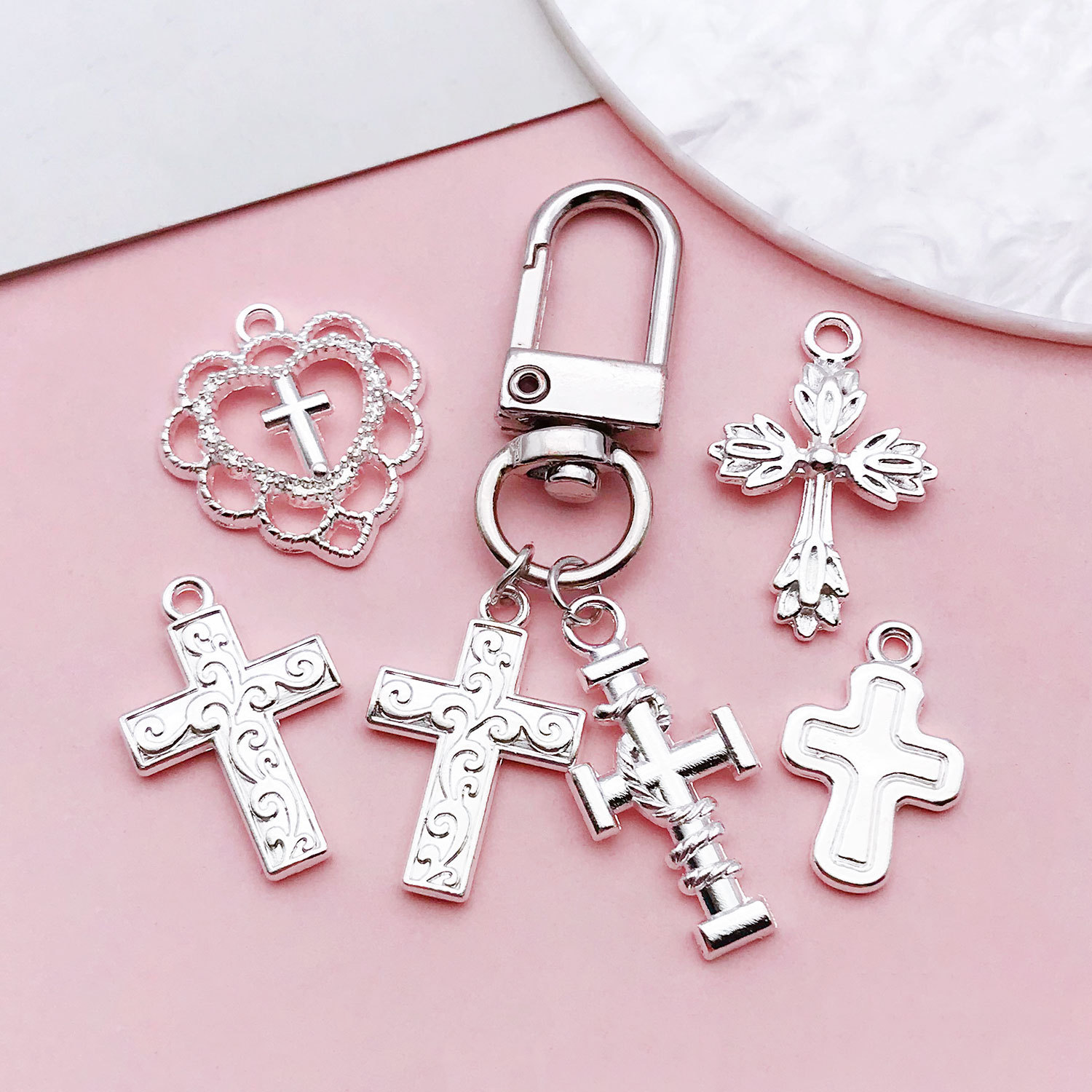 跨境热卖20款亮银十字架吊坠 手工diy项链钥匙扣合金饰品配件批发