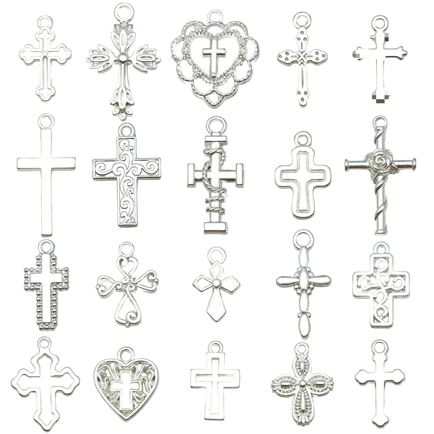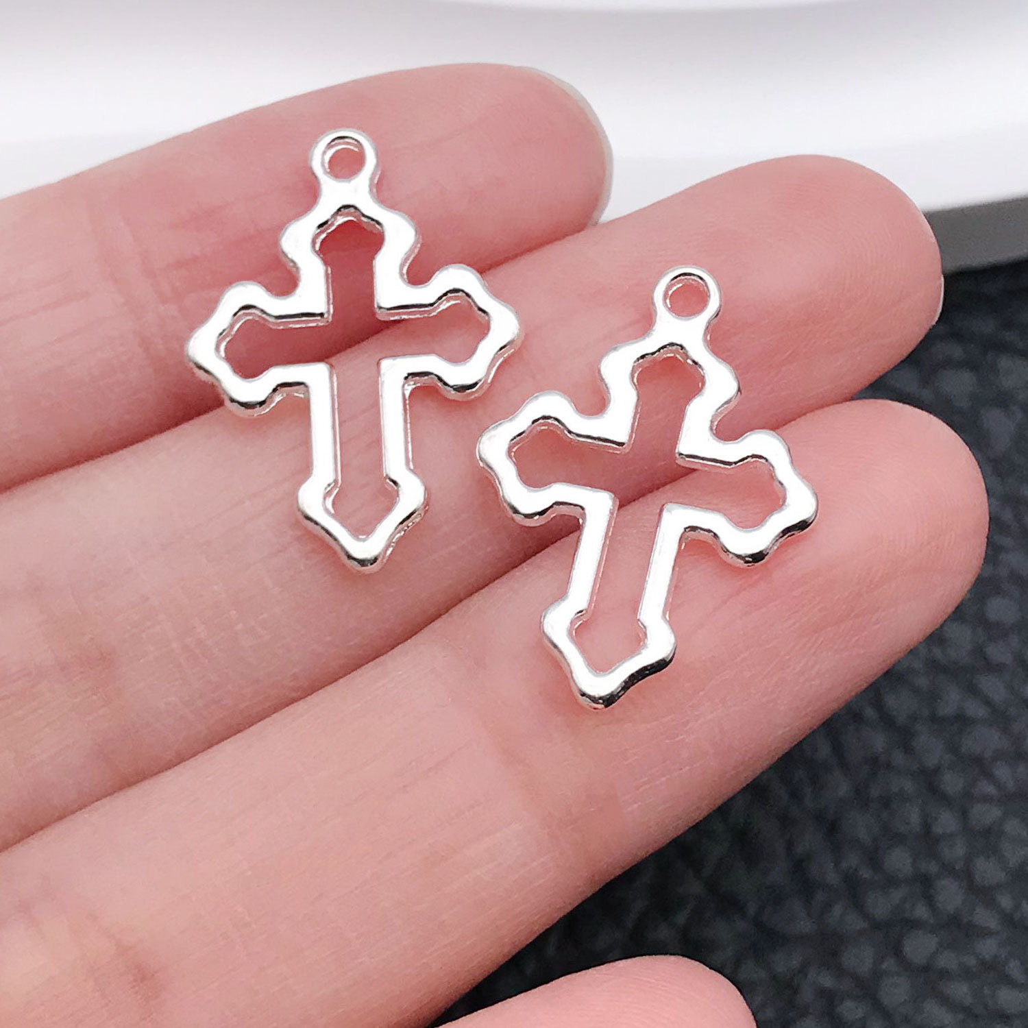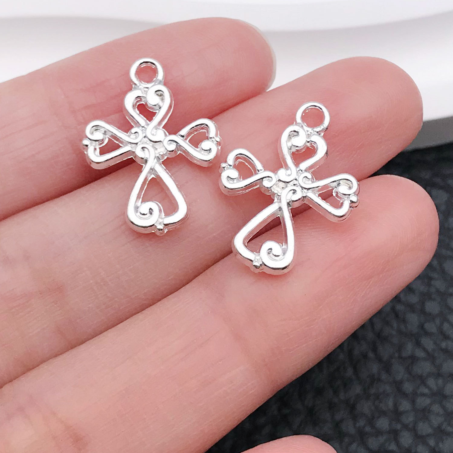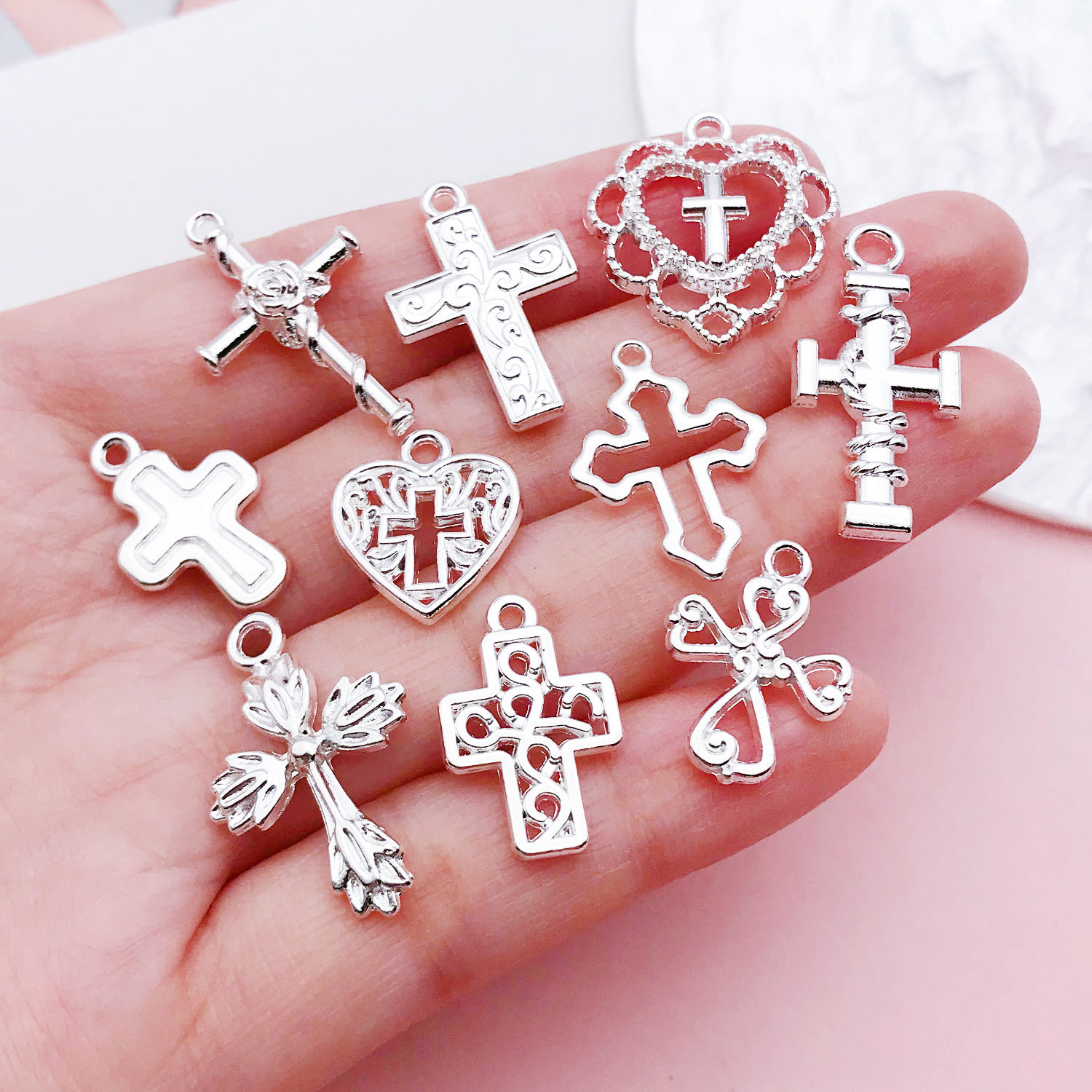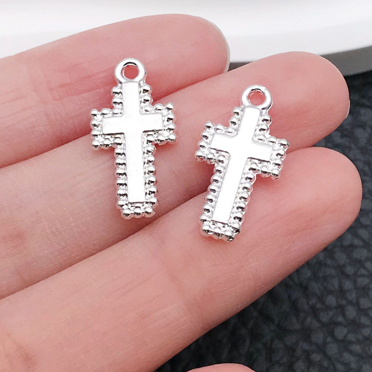 跨境热卖20款亮银十字架吊坠 手工diy项链钥匙扣合金饰品配件批发