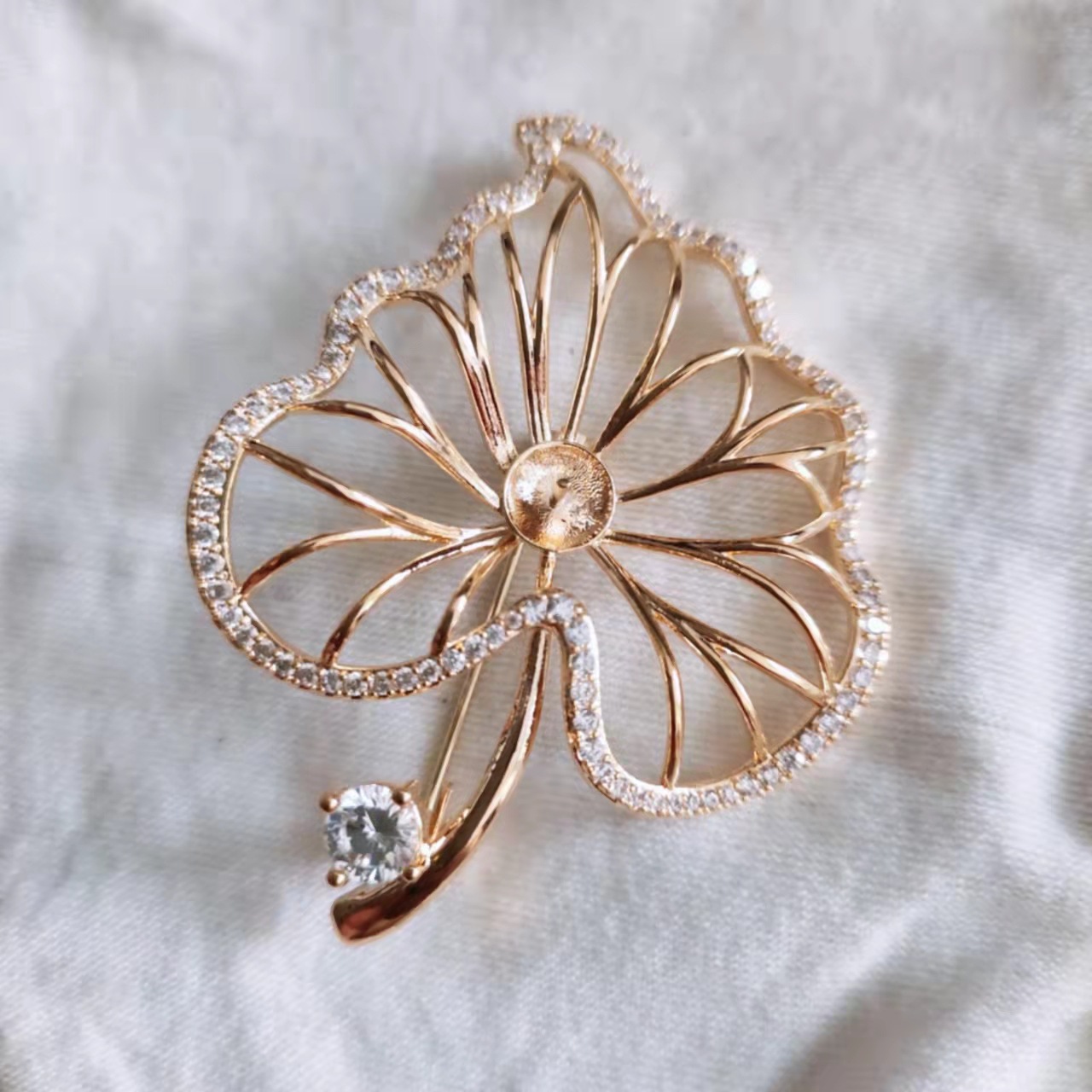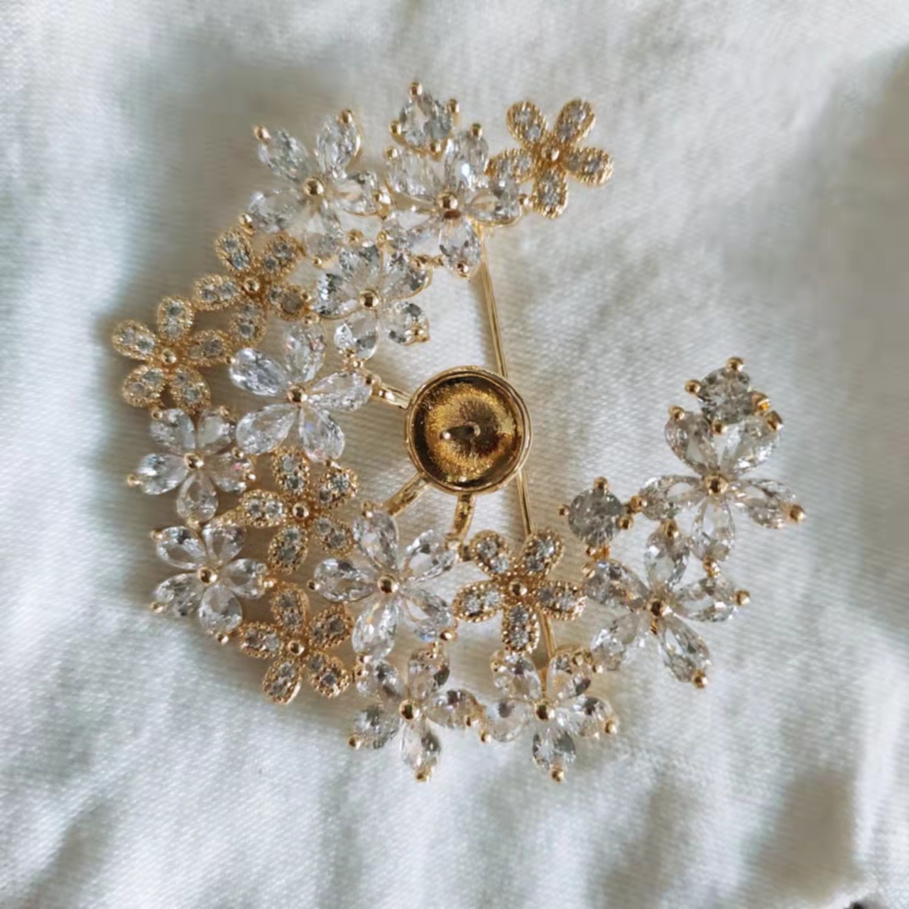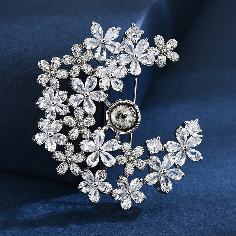胸针高级感小众轻奢创意diy配件锆石托胸花珍珠空托百搭衣饰别针