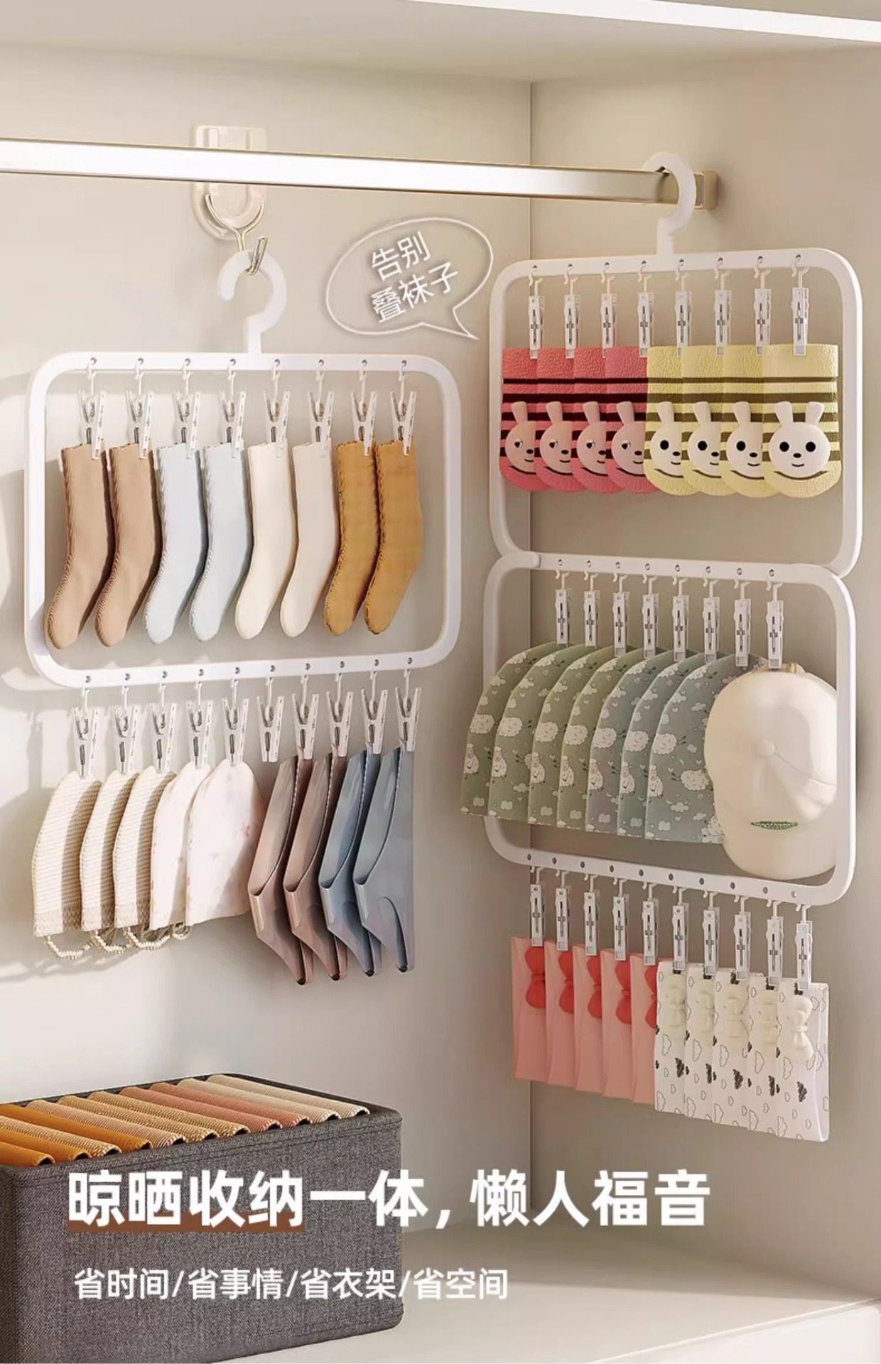 塑料袜子晾晒架多夹子儿童衣架家用衣柜收纳阳台防风晒袜子神器