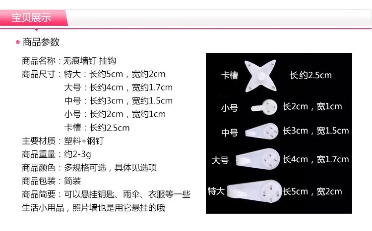 免打孔相框无痕钉强力挂钩墙上照片婚纱照专用隐形钉子壁挂画墙钉