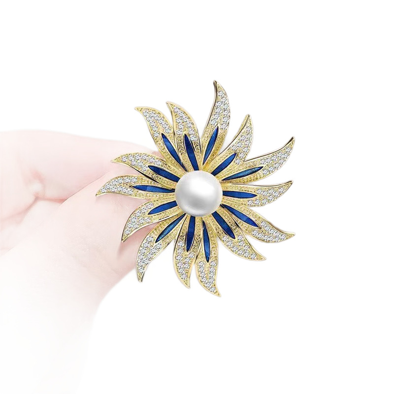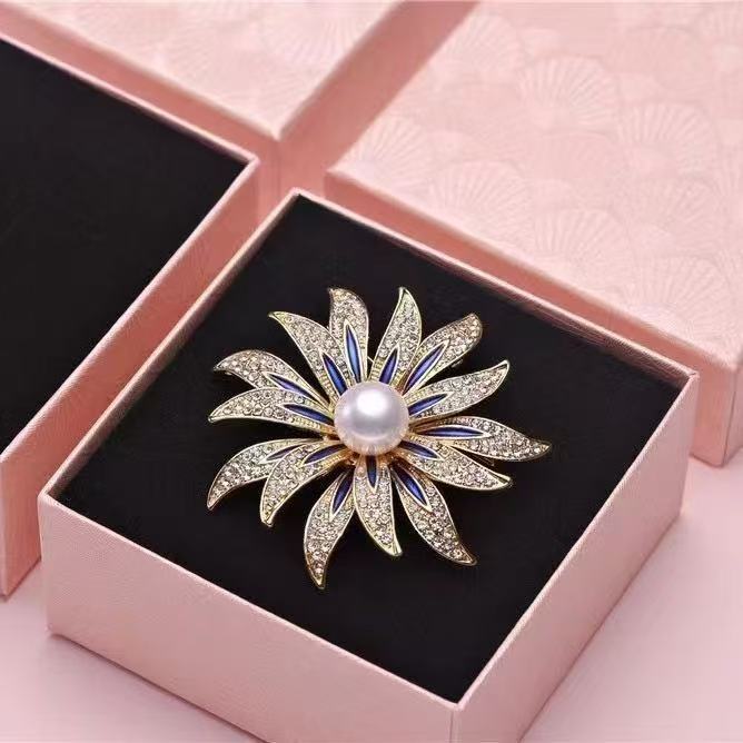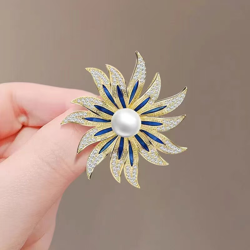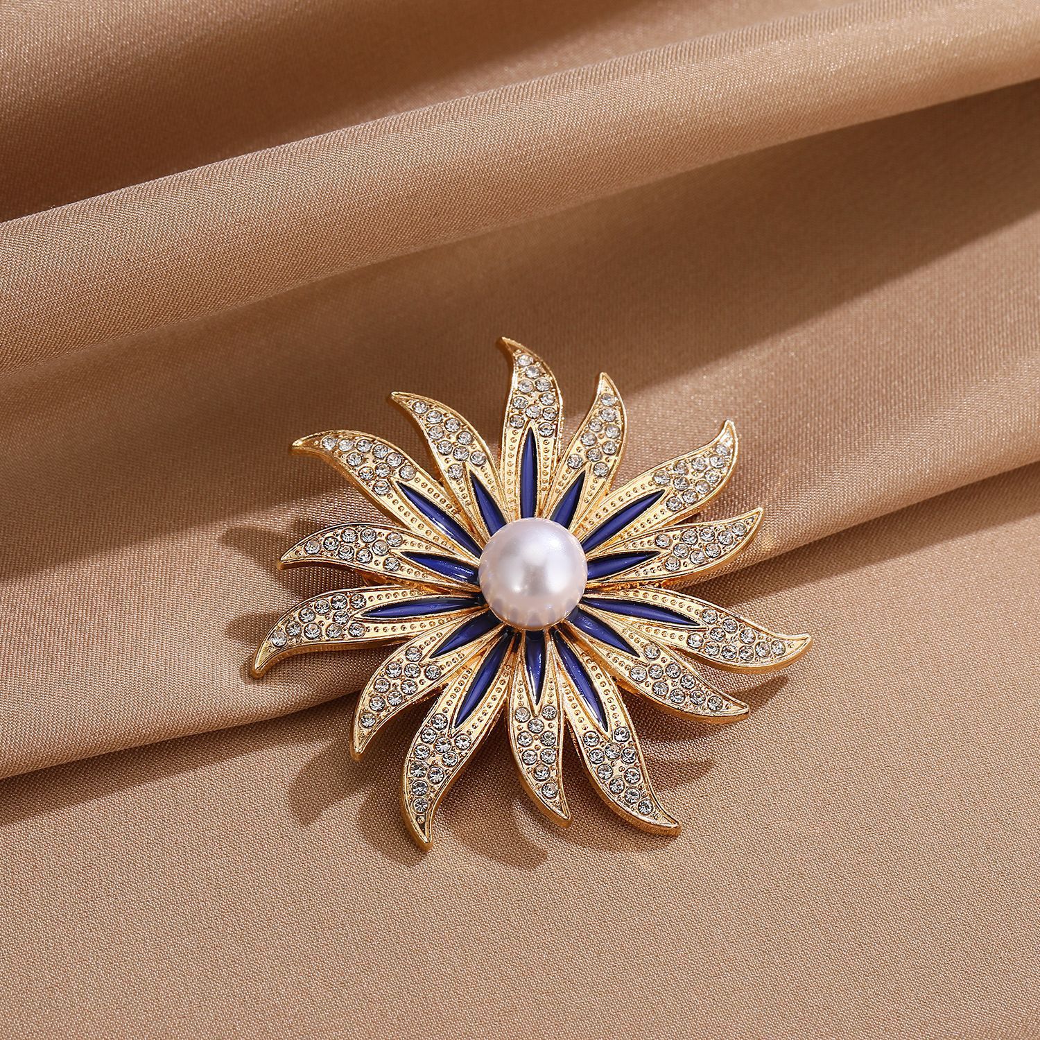 新款太阳花胸针小众轻奢闪耀时尚珍珠镶钻胸花高档礼服西装饰品