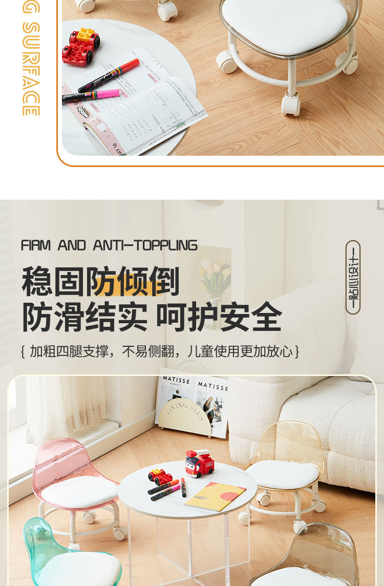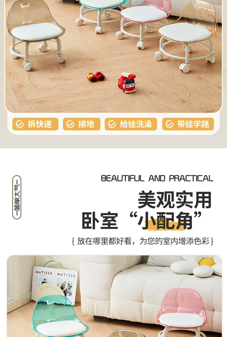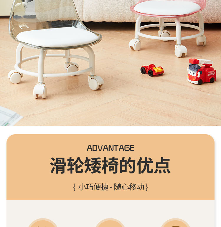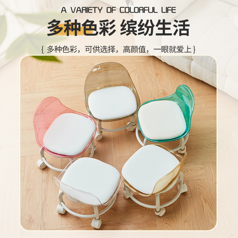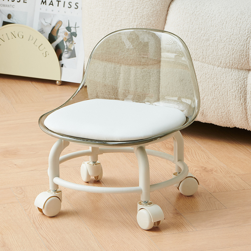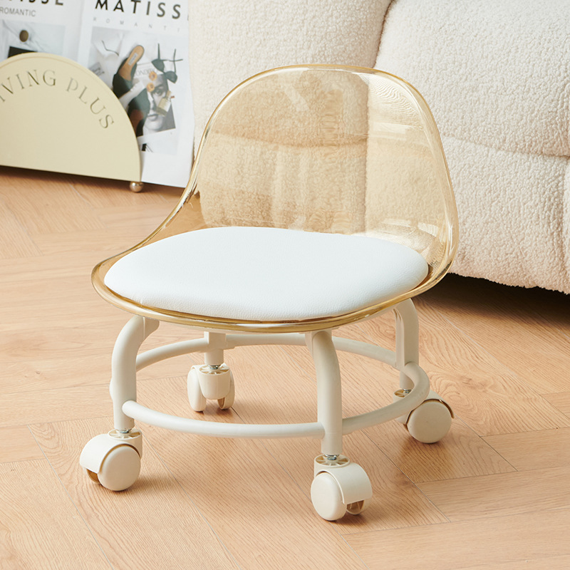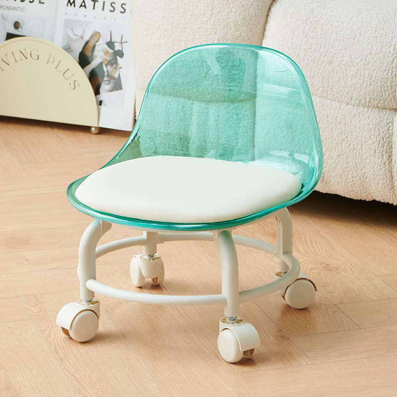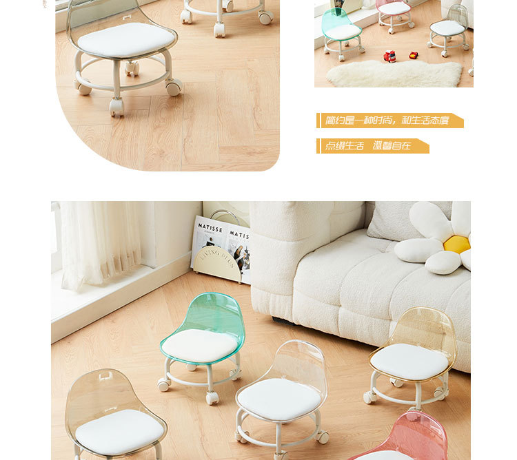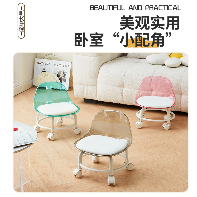 亚克力小凳子滑轮矮凳家用静音万向轮小椅子儿童舒适可移动靠背椅