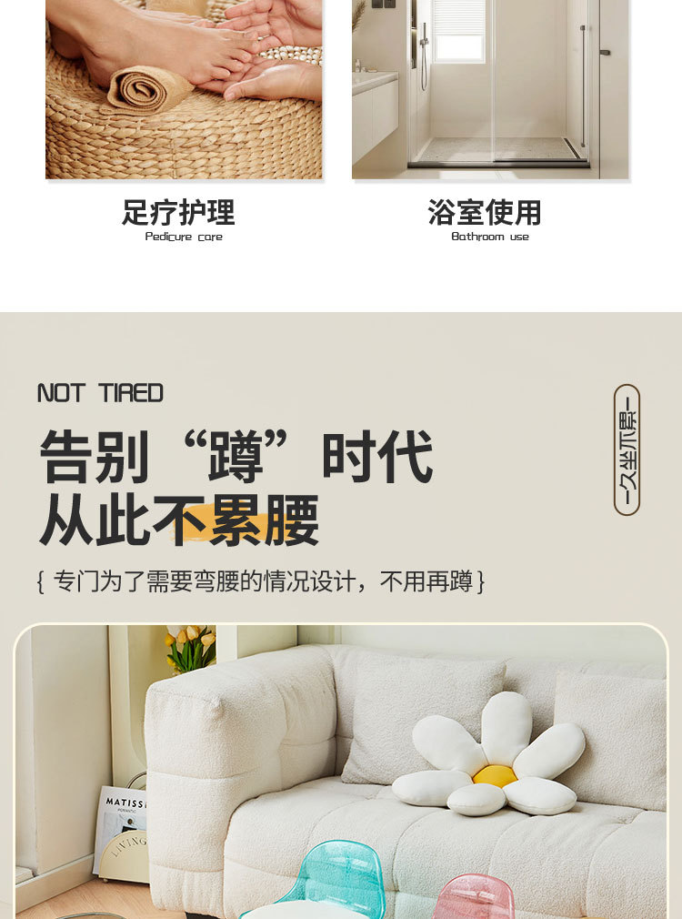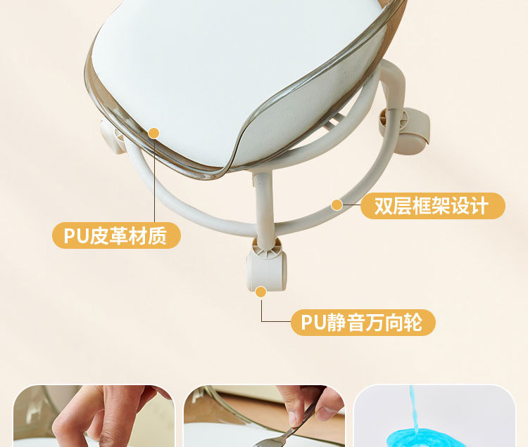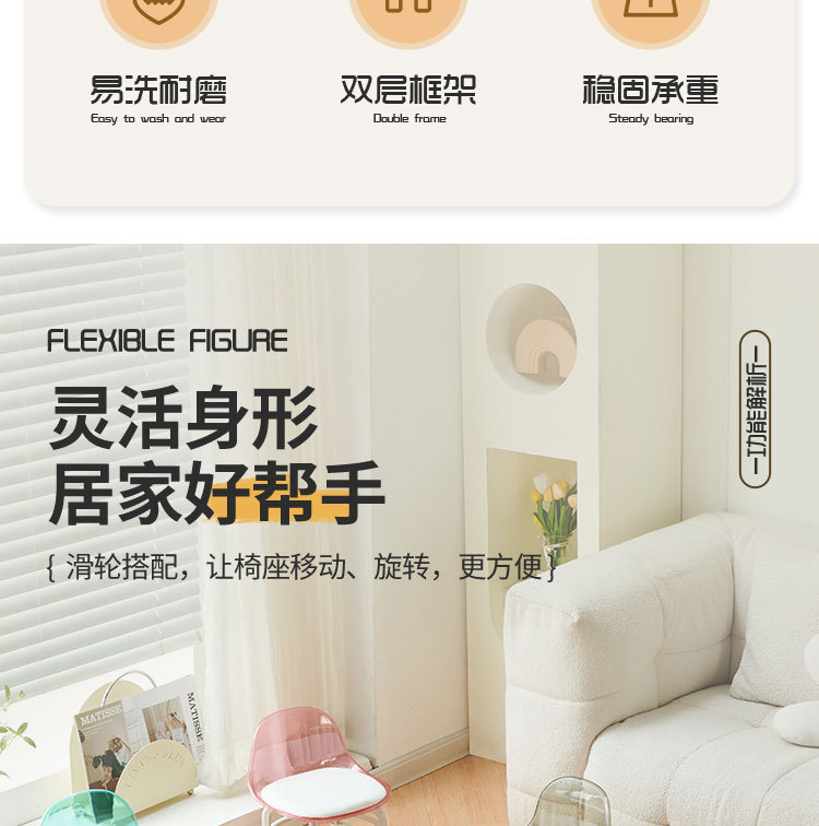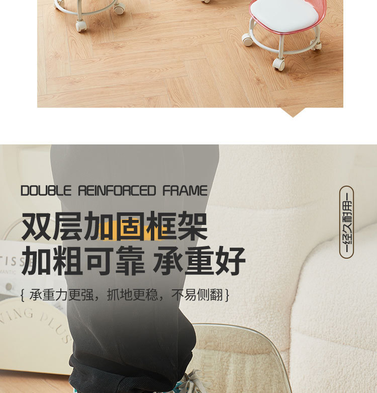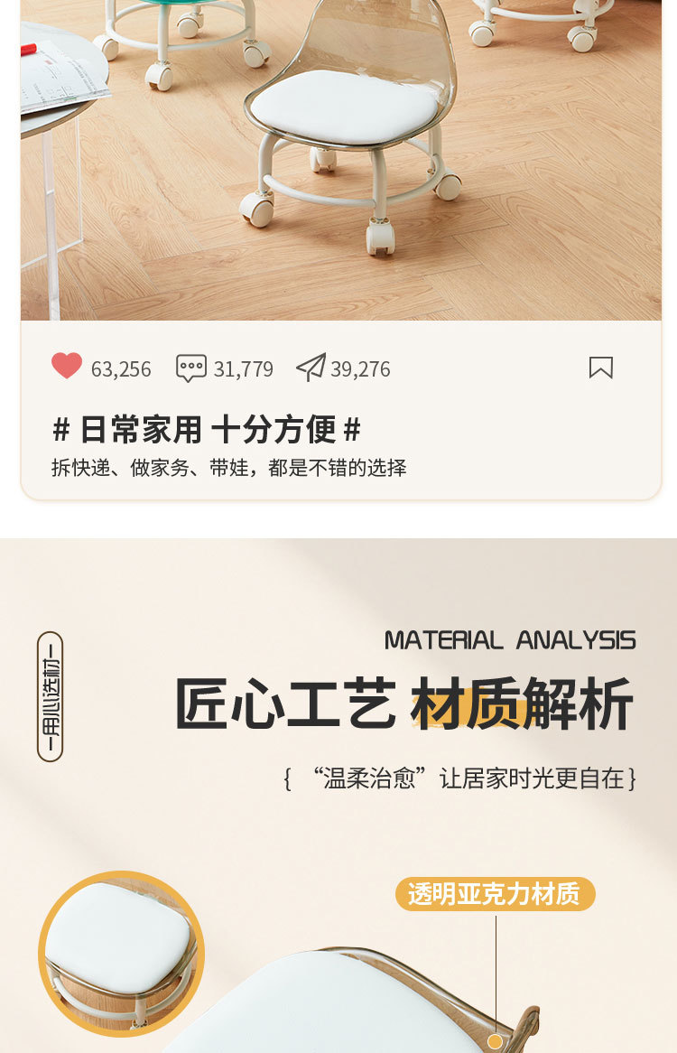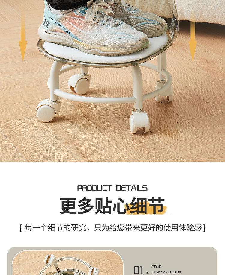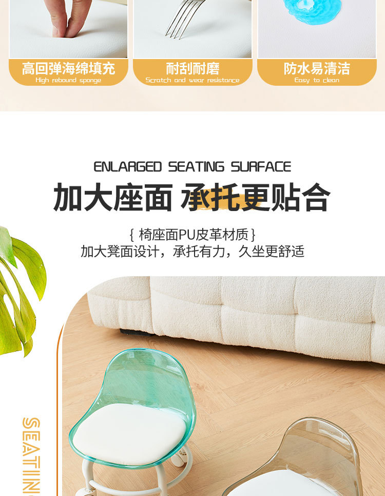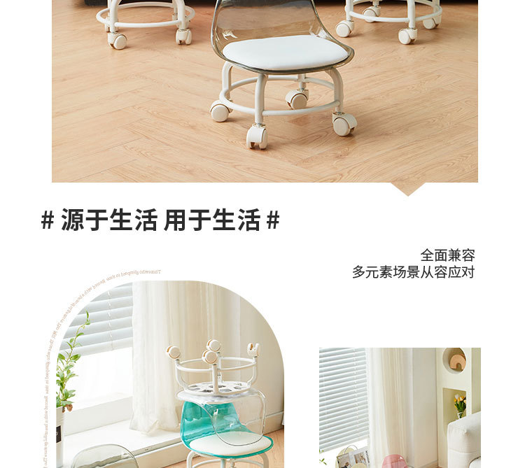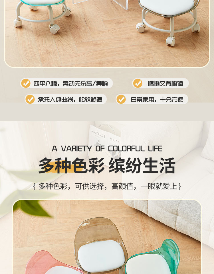 亚克力小凳子滑轮矮凳家用静音万向轮小椅子儿童舒适可移动靠背椅