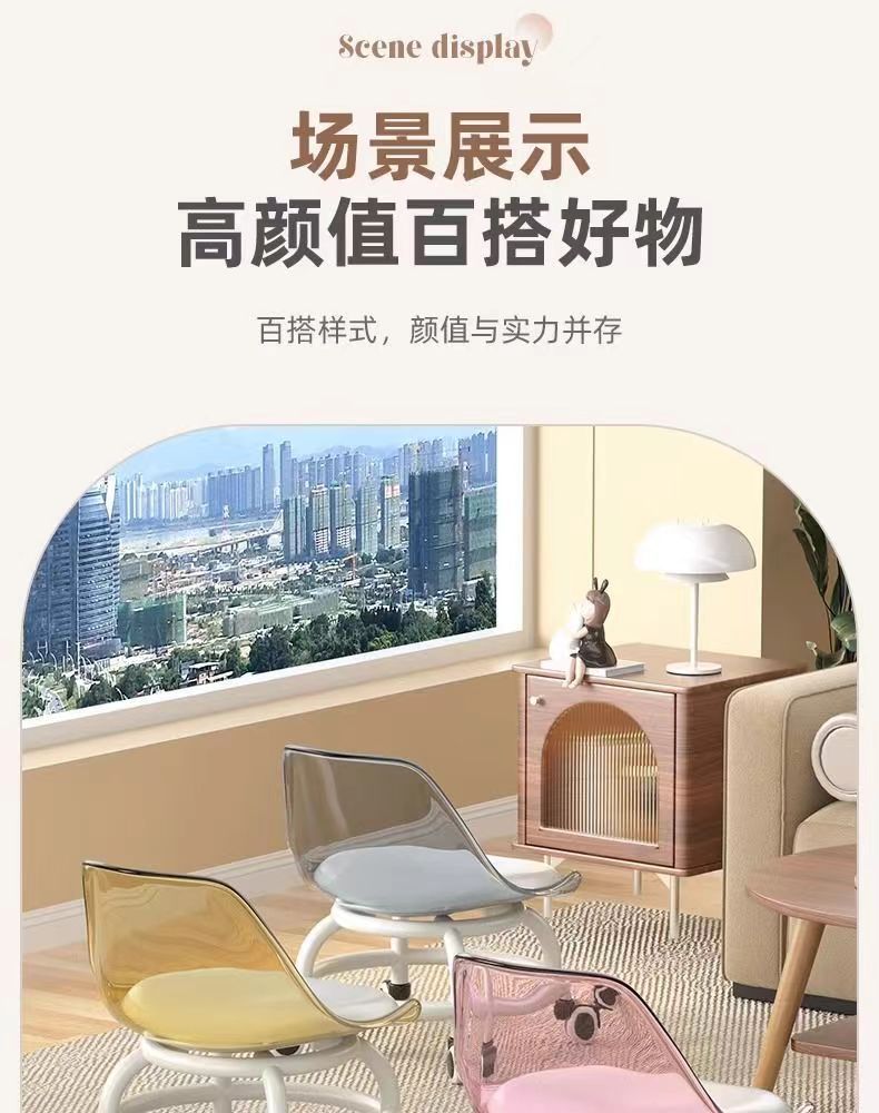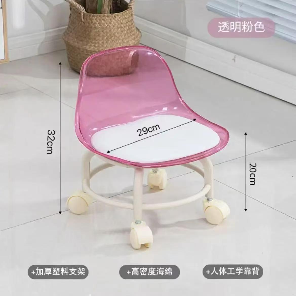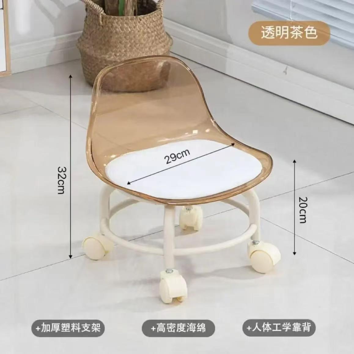 轮滑小椅子万向轮小凳子亚克力靠背家用儿童学步凳多功能椅子