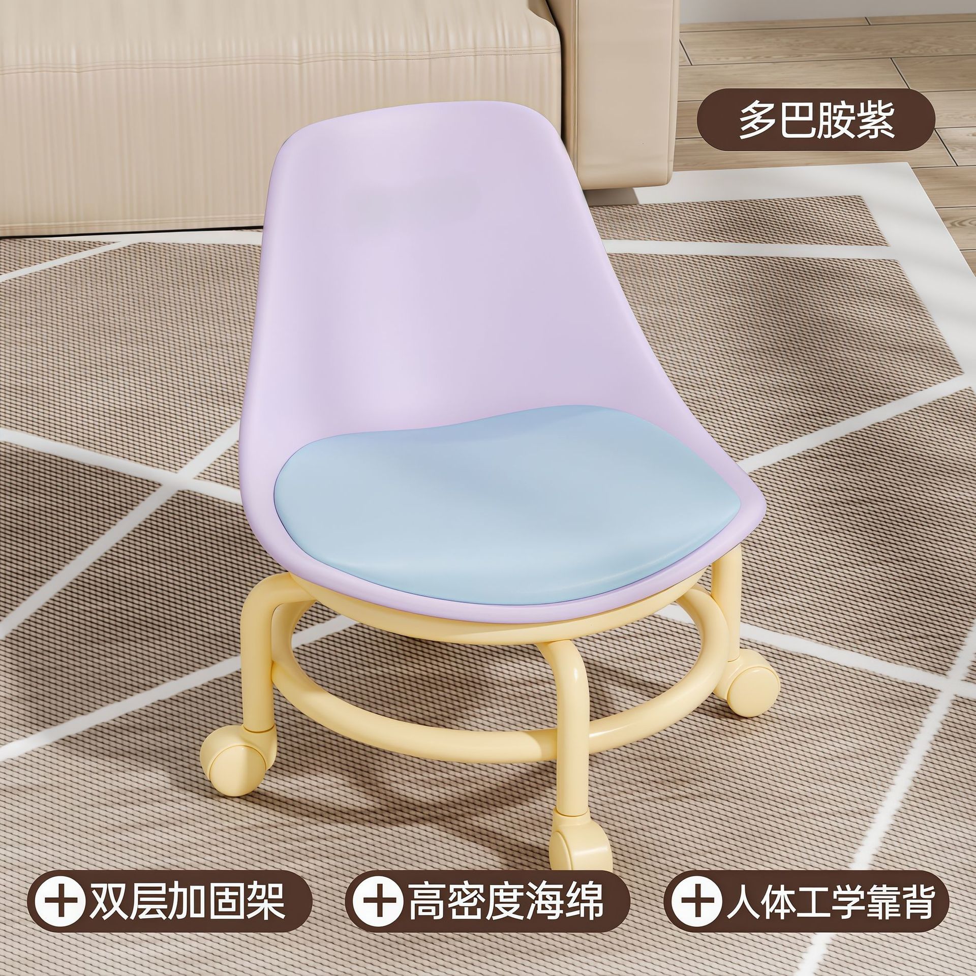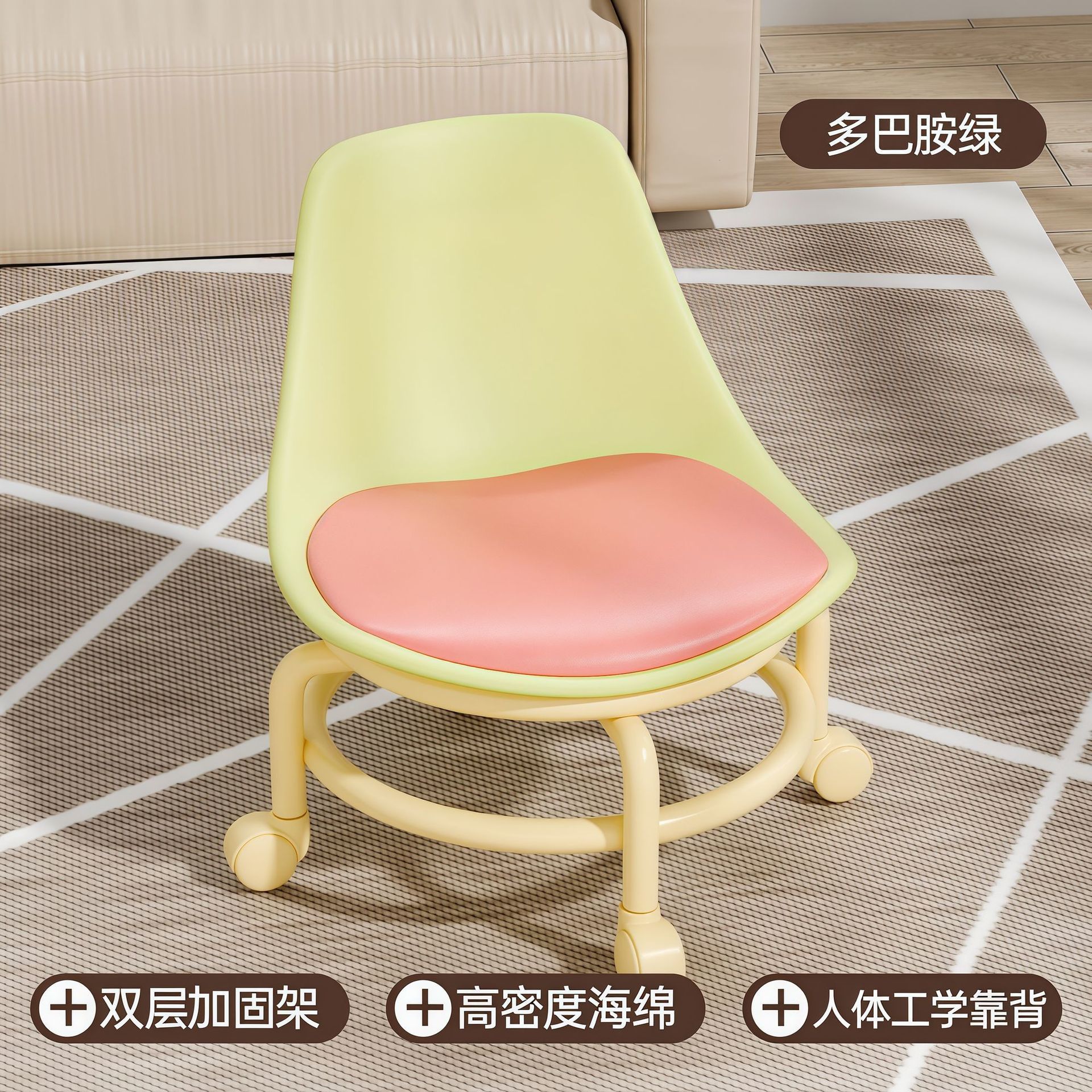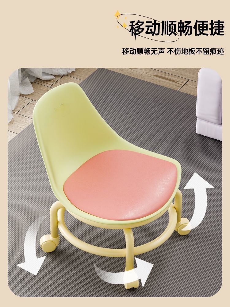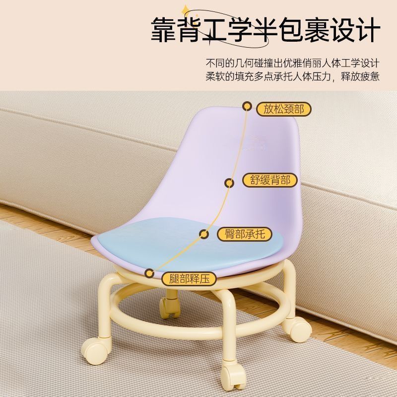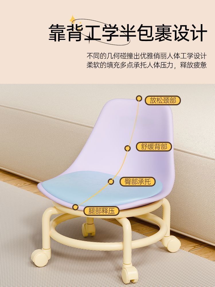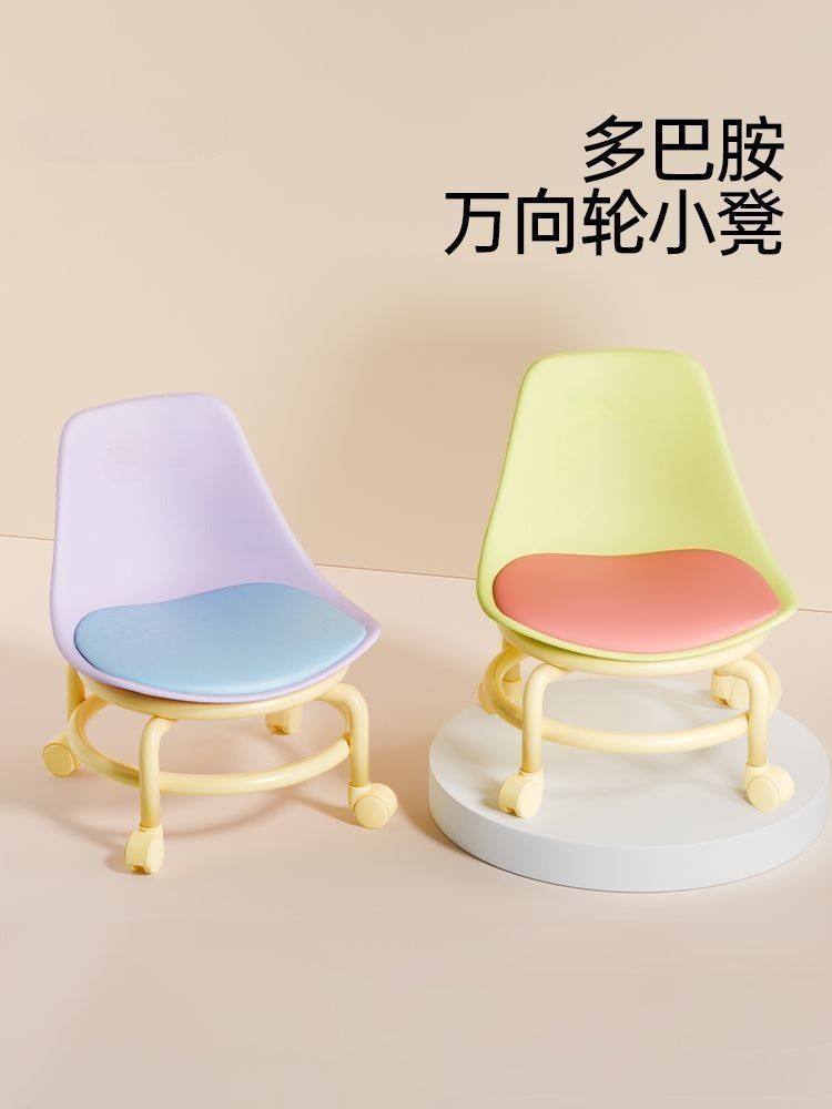 滑轮矮凳万向轮家用小凳子儿童带滑轮板凳懒人圆凳多巴胺靠背椅子