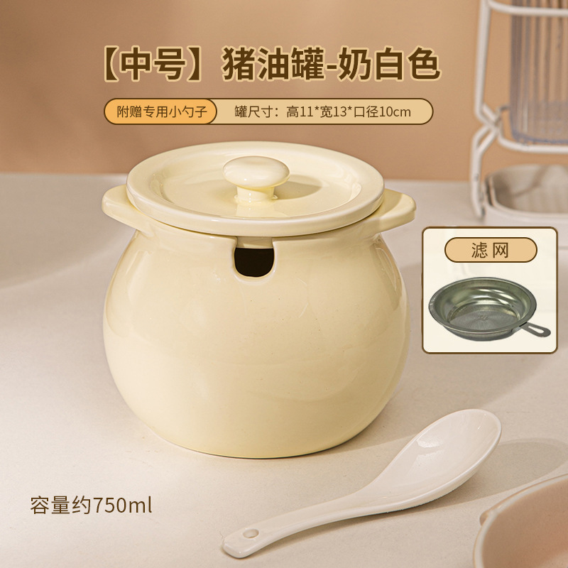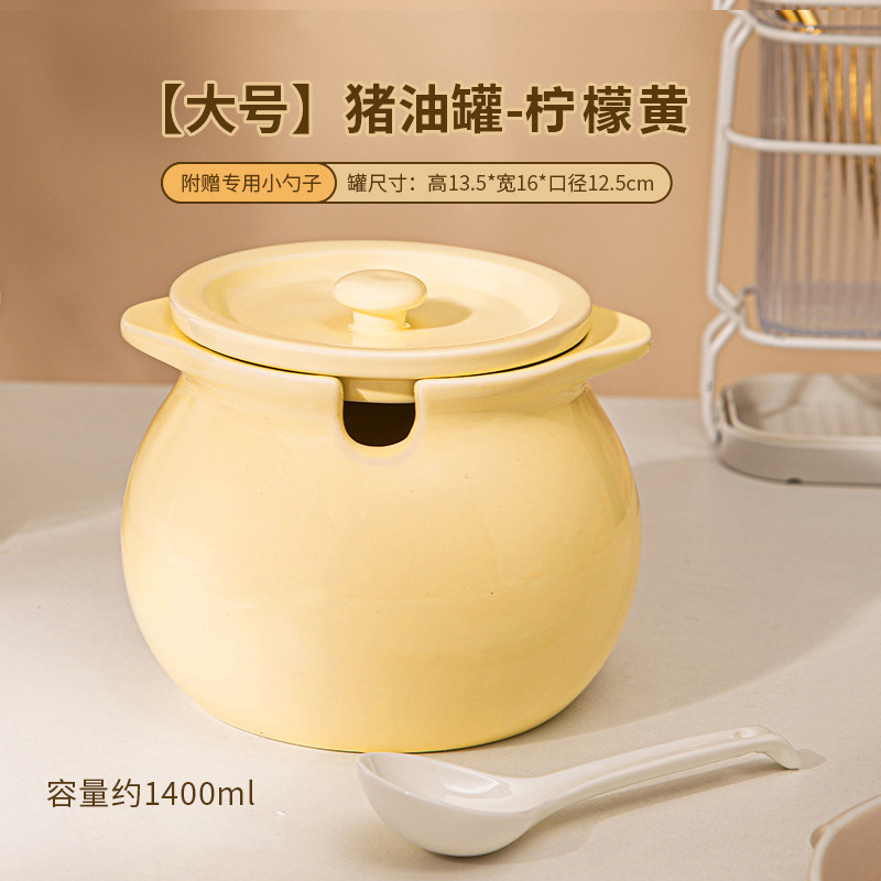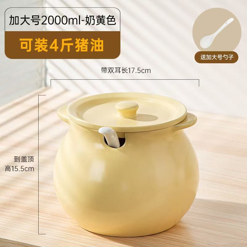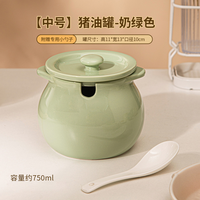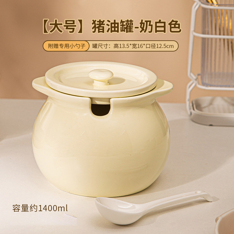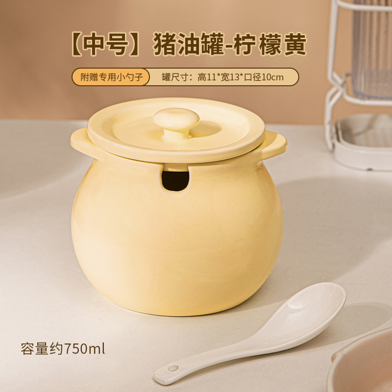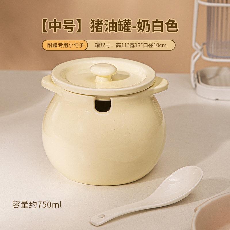 北欧陶瓷猪油罐 奶油风家用厨房耐高温带盖勺调料罐辣椒荤油罐子
