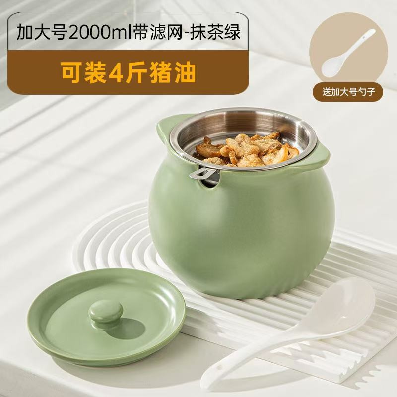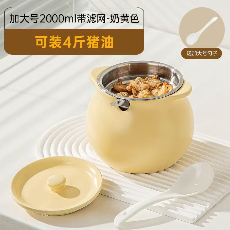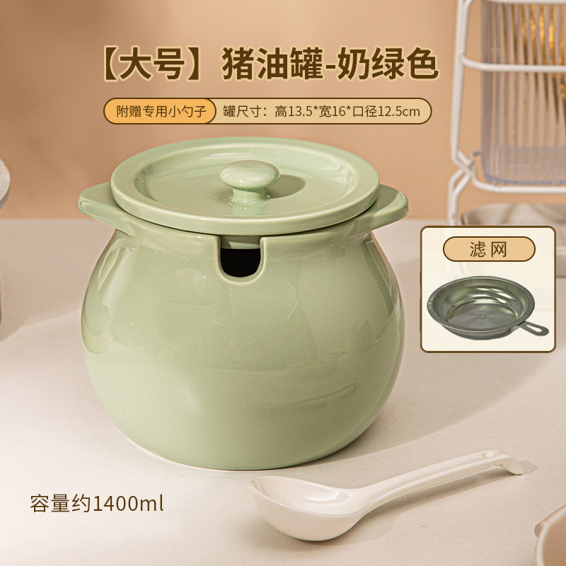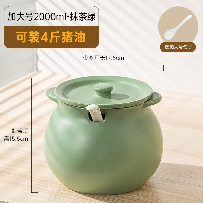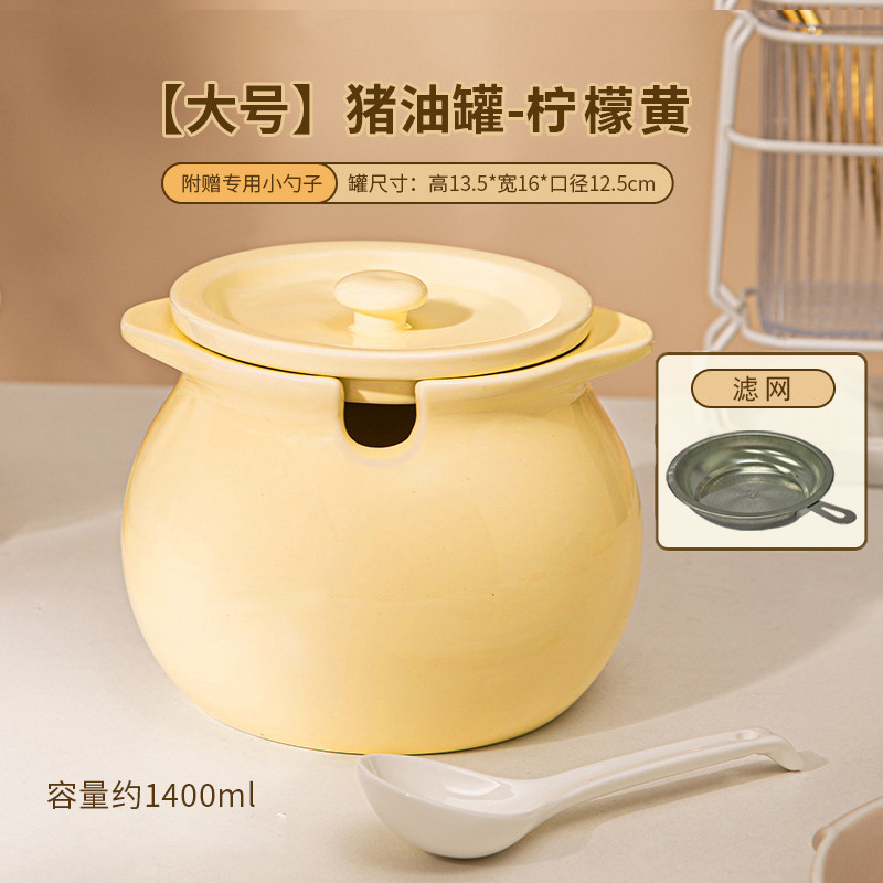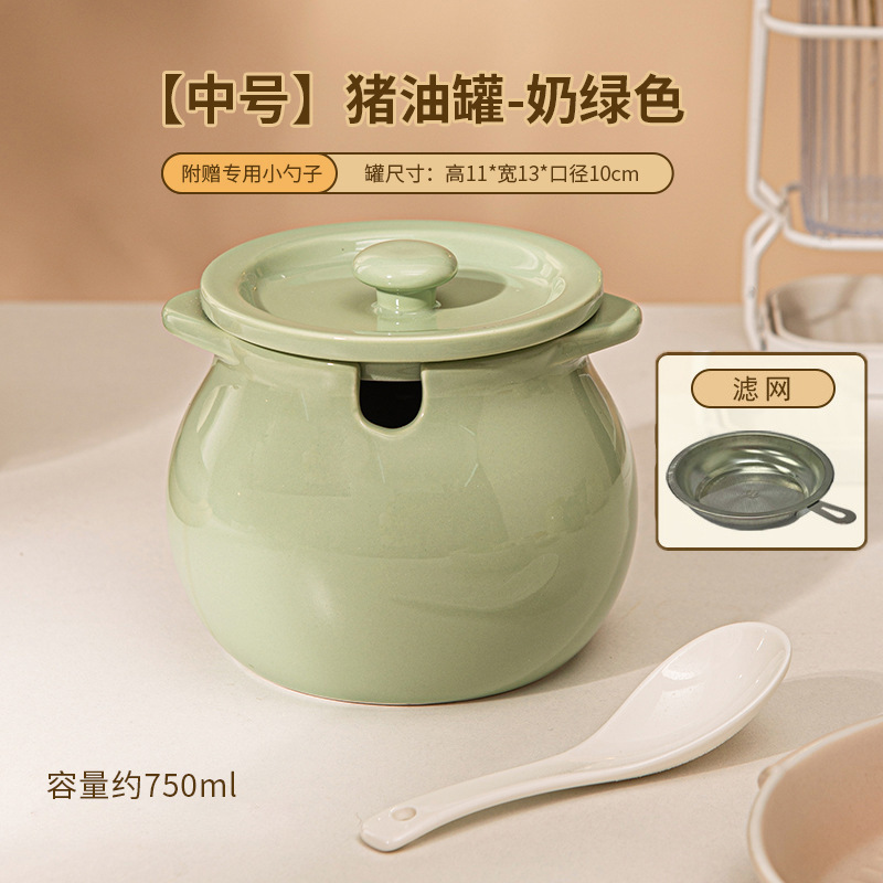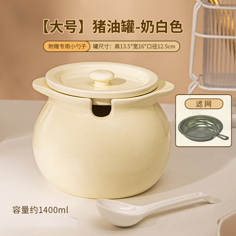 北欧陶瓷猪油罐 奶油风家用厨房耐高温带盖勺调料罐辣椒荤油罐子