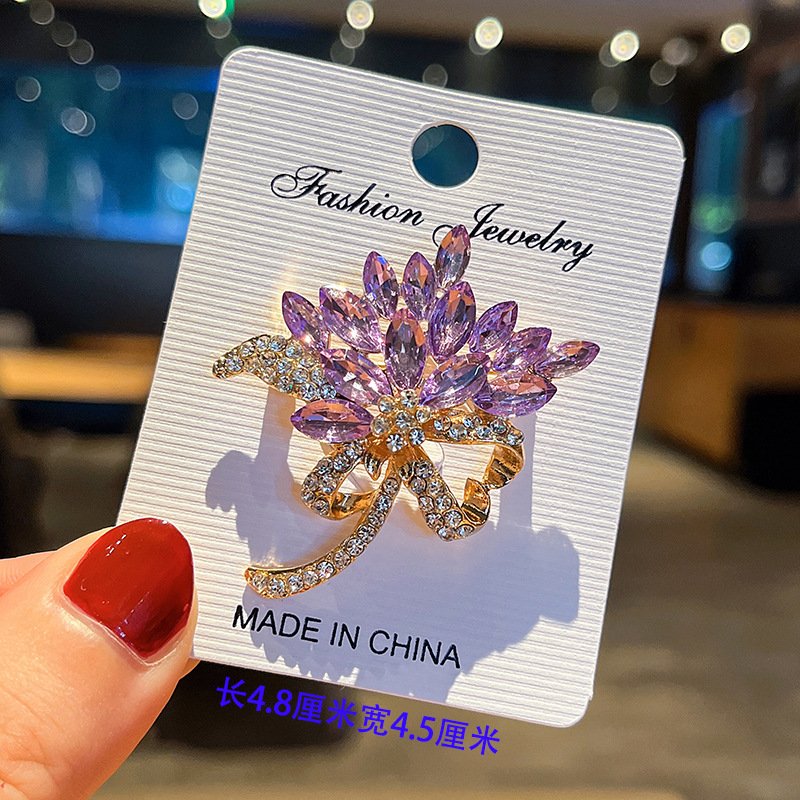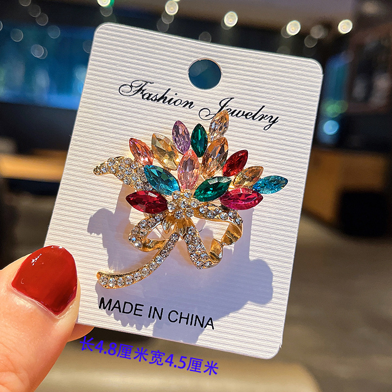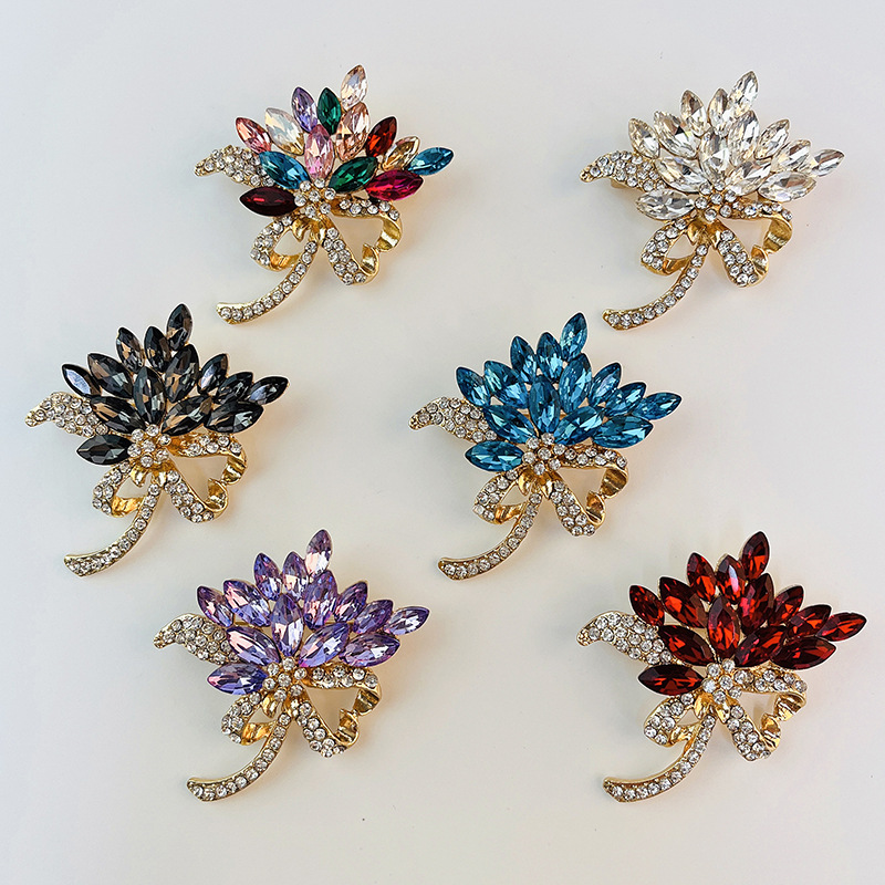 奢华彩色手捧花胸针高档女优雅大气水晶花朵别针精致西装配饰胸花