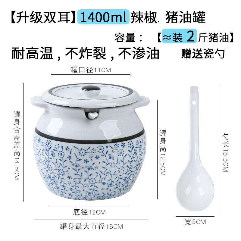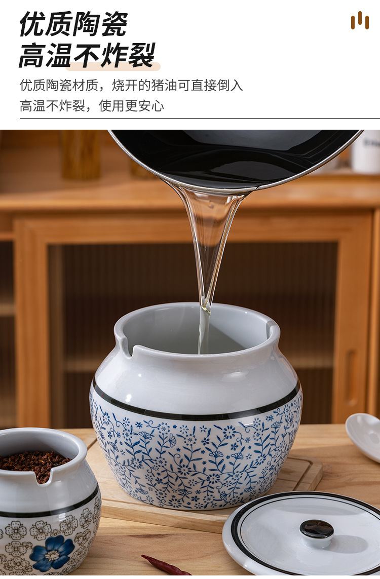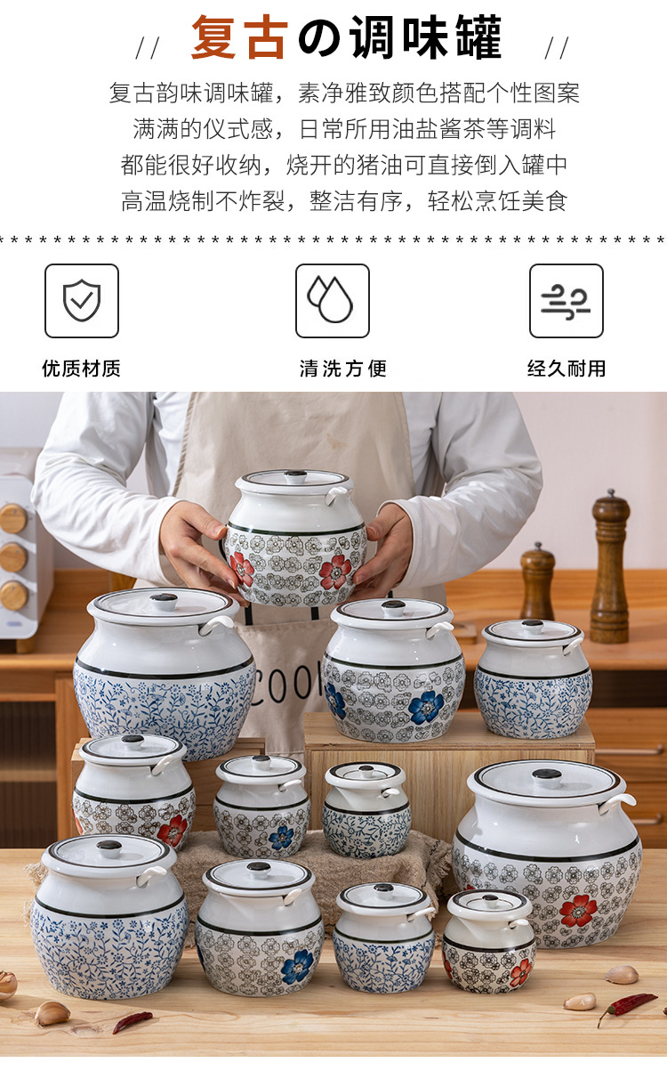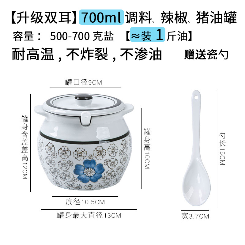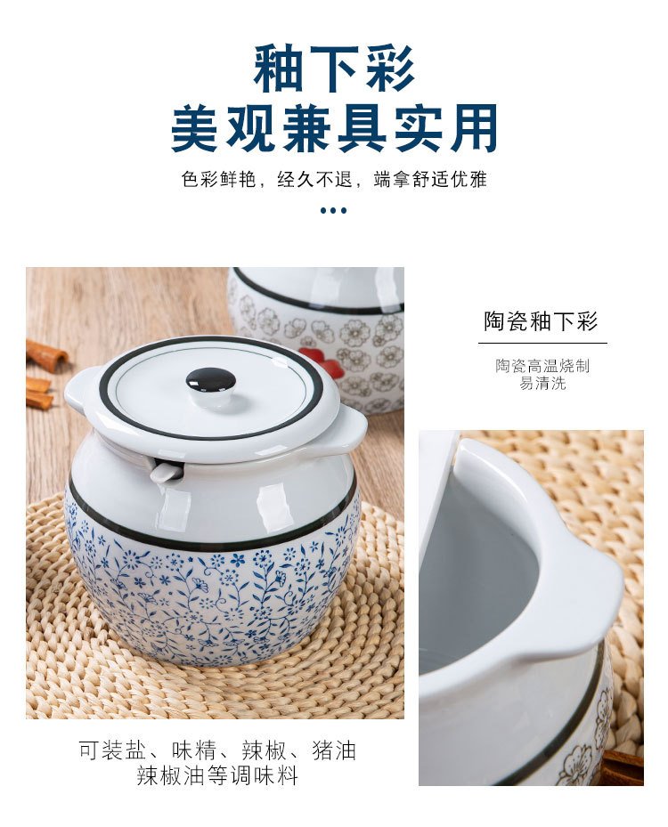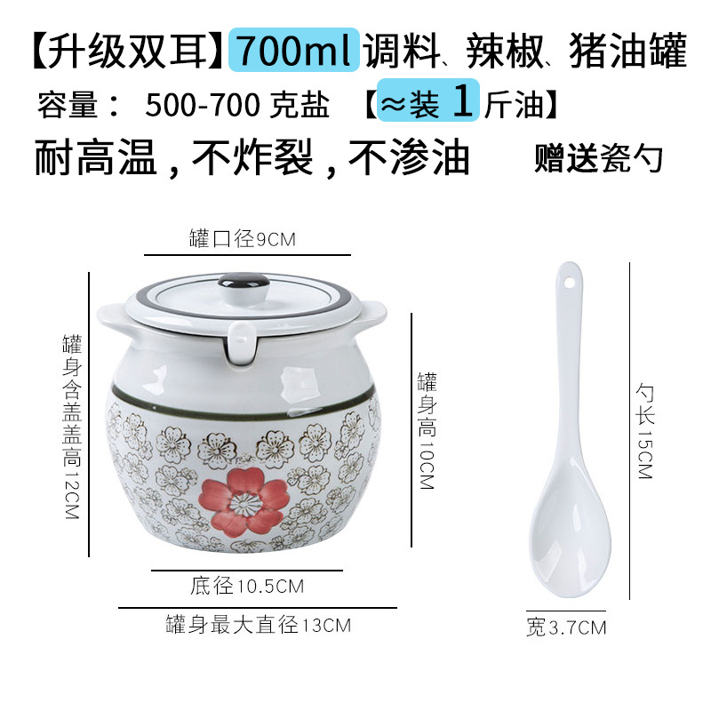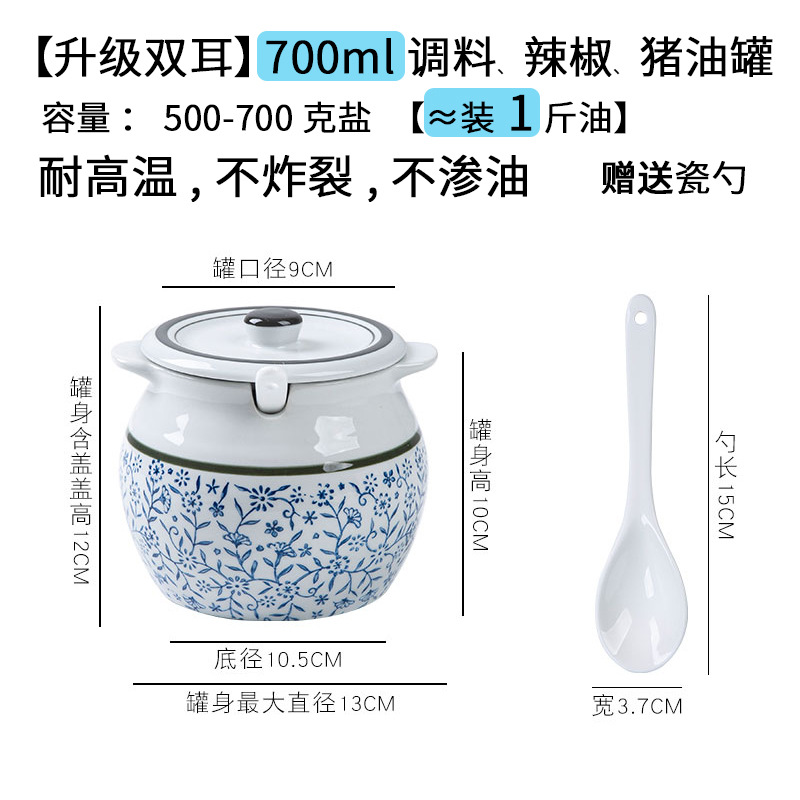带提手猪油罐陶瓷耐高温升级双耳经典带盖辣椒盐酱调料盒家用厨房