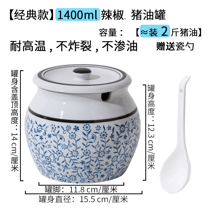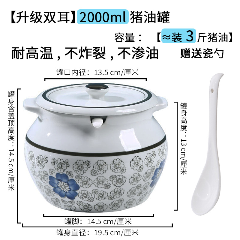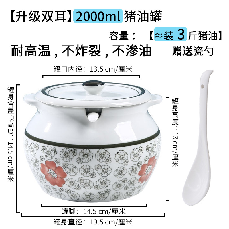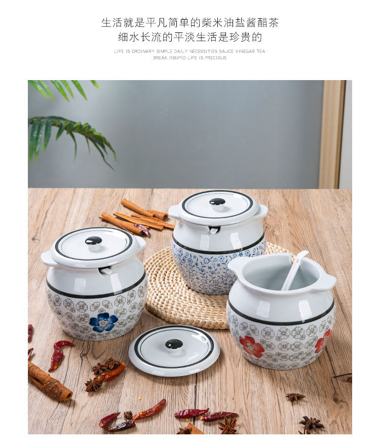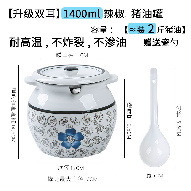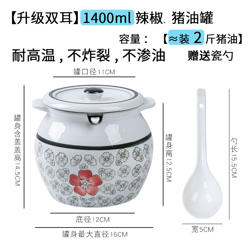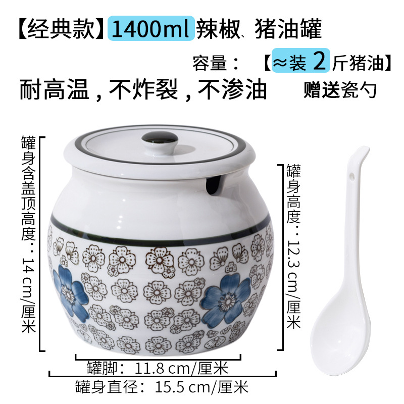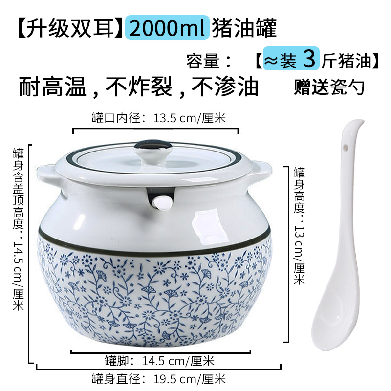 带提手猪油罐陶瓷耐高温升级双耳经典带盖辣椒盐酱调料盒家用厨房