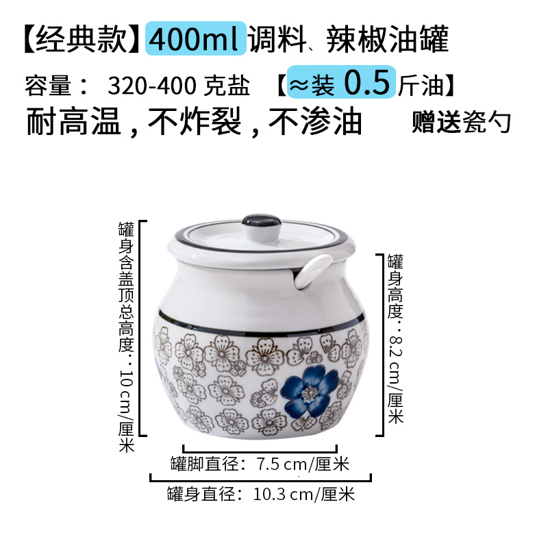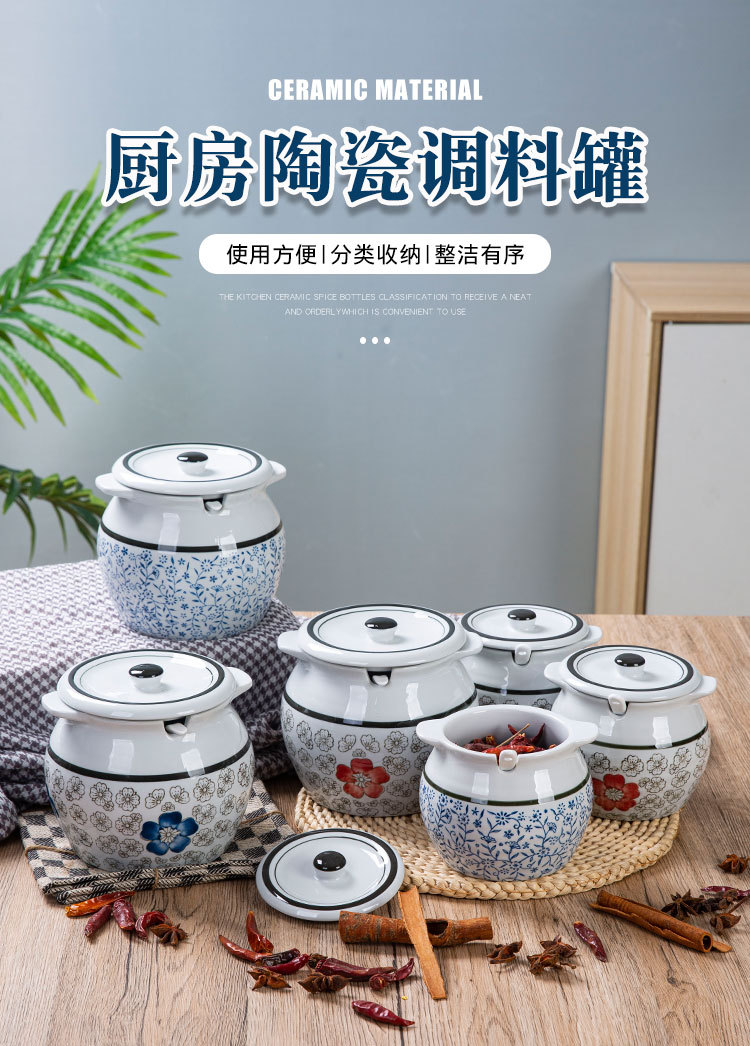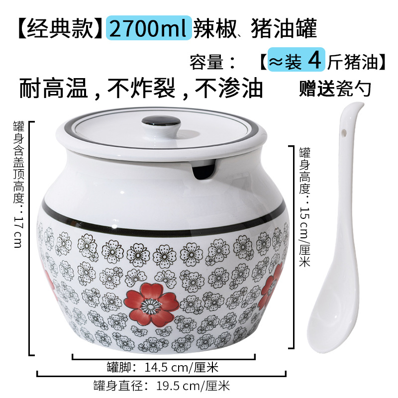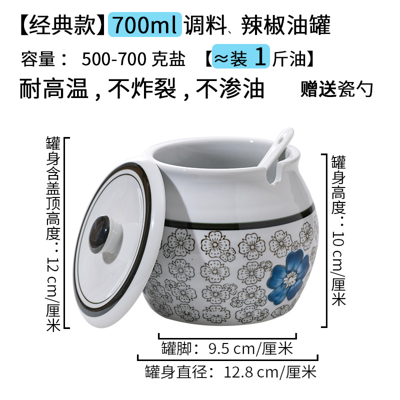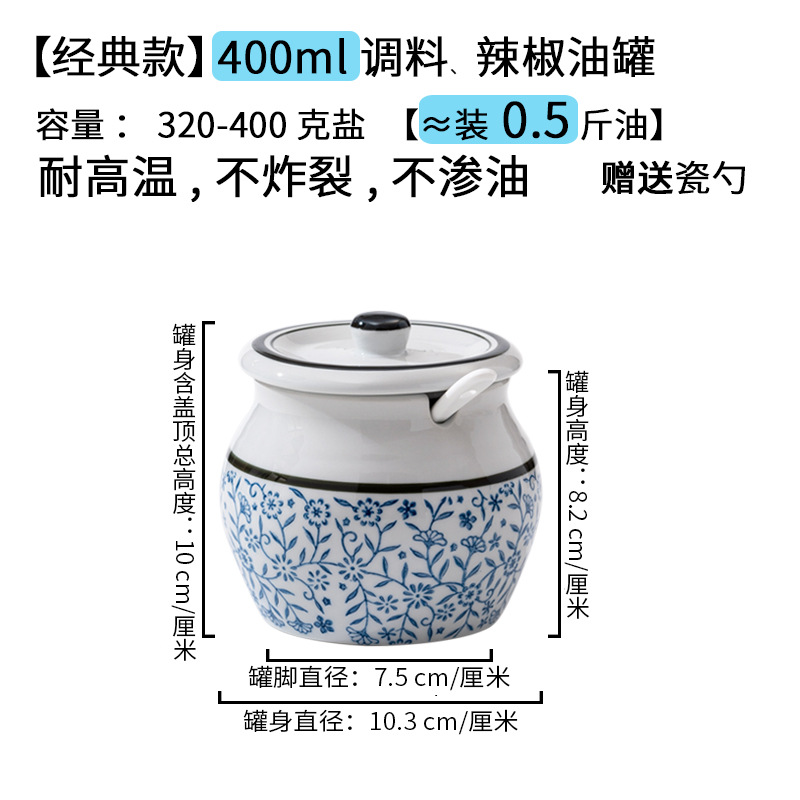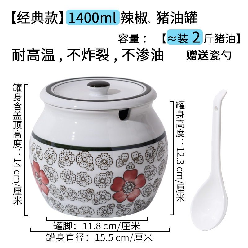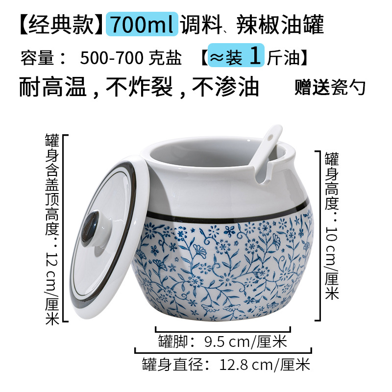 带提手猪油罐陶瓷耐高温升级双耳经典带盖辣椒盐酱调料盒家用厨房