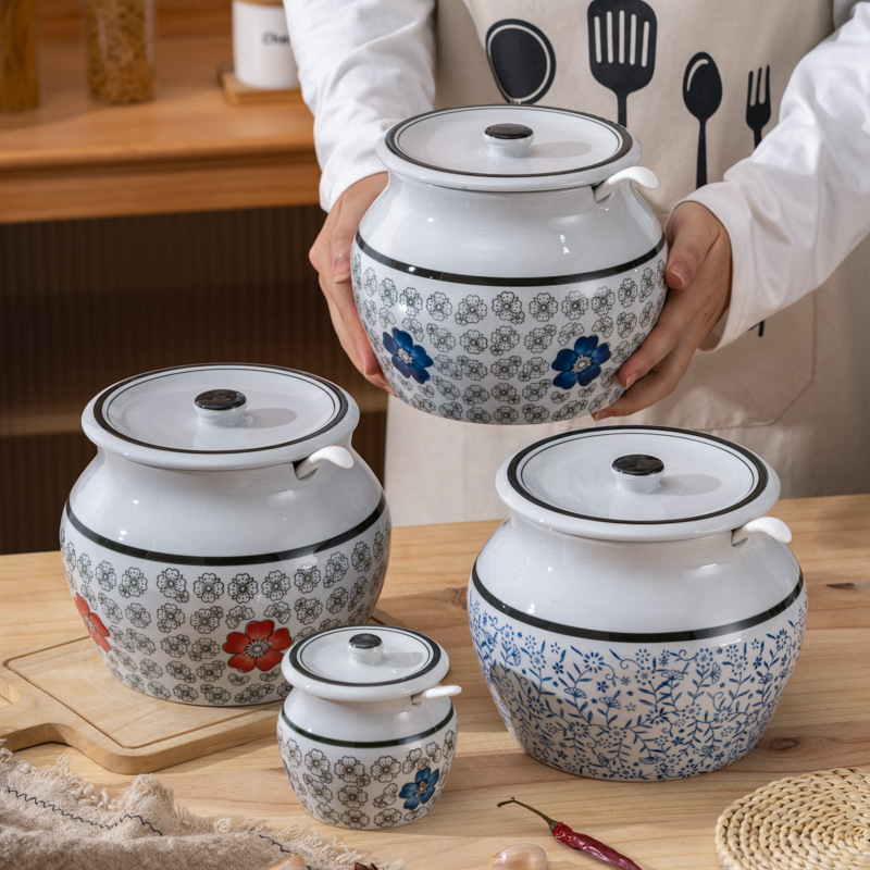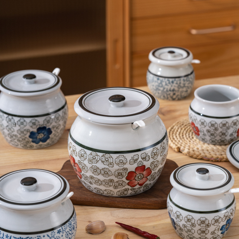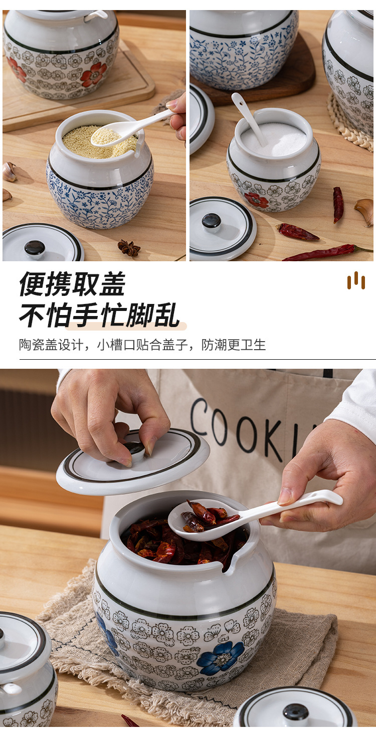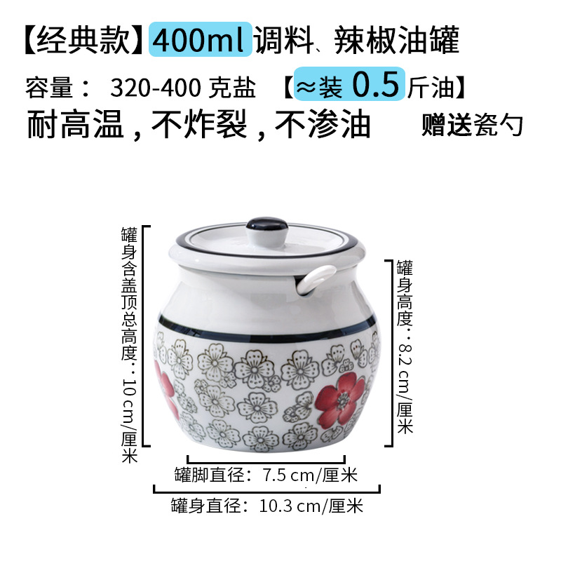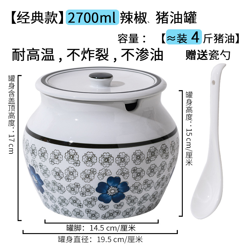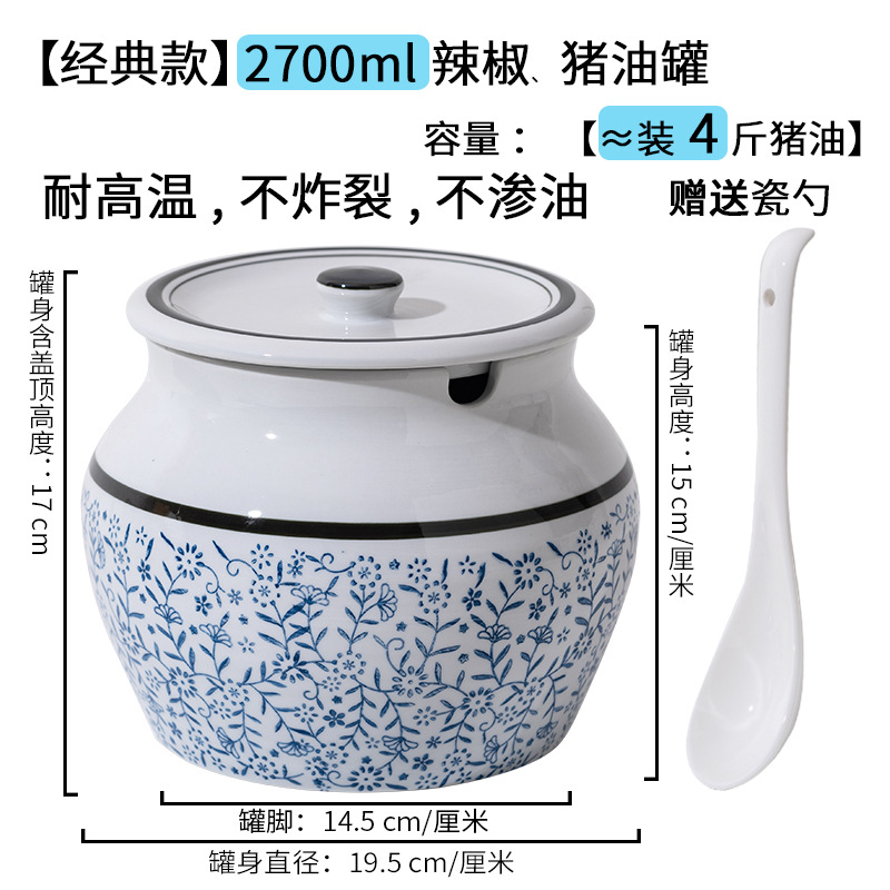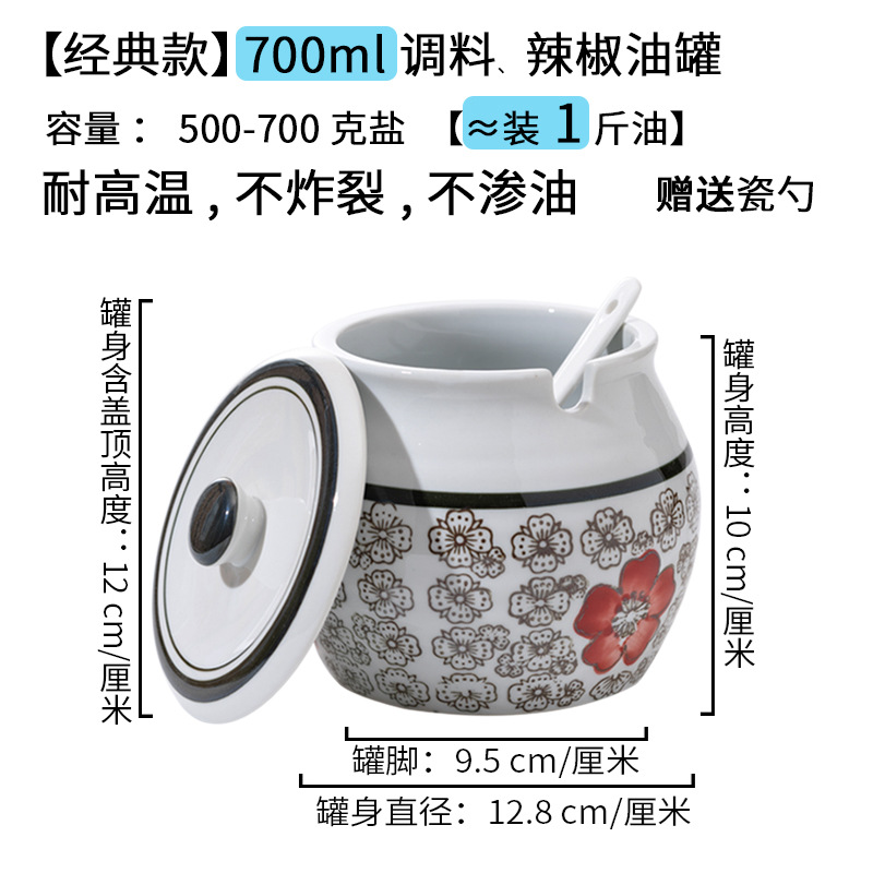带提手猪油罐陶瓷耐高温升级双耳经典带盖辣椒盐酱调料盒家用厨房