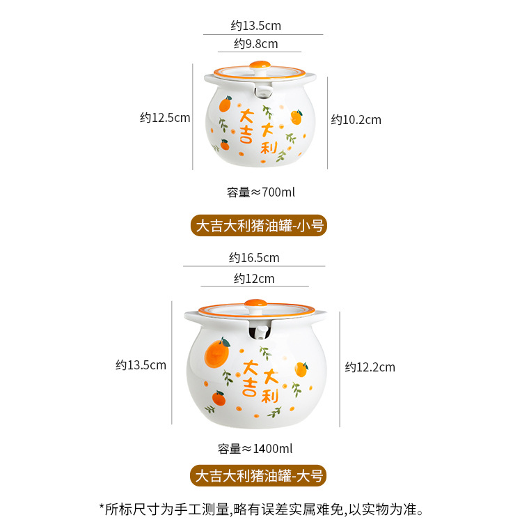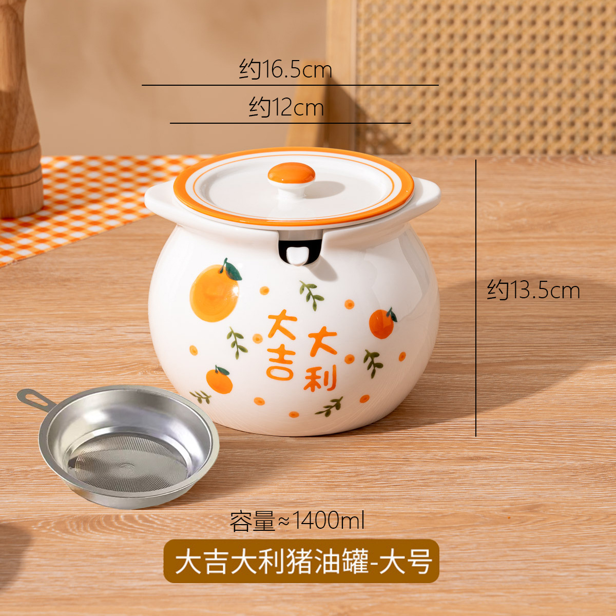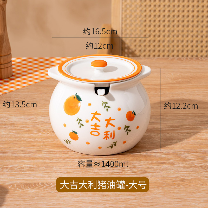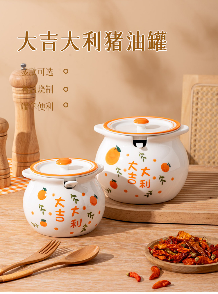 大吉大利陶瓷猪油罐家用耐高温辣椒油罐荤油罐子厨房调料罐猪油灌