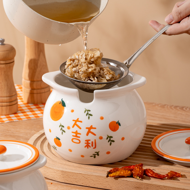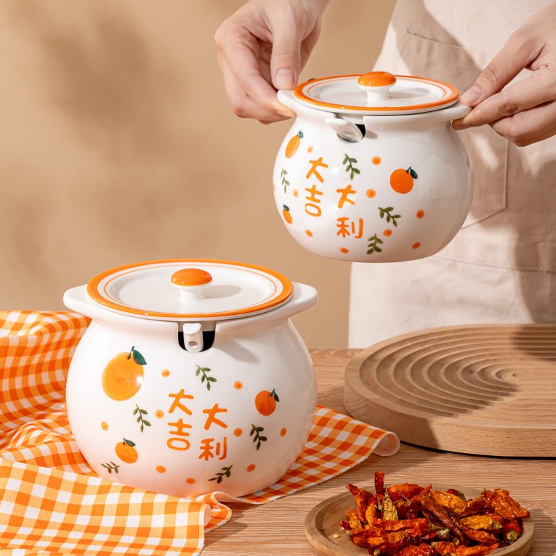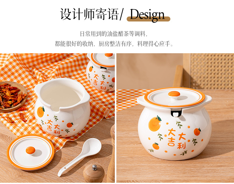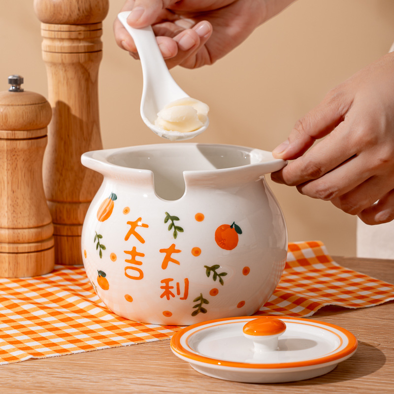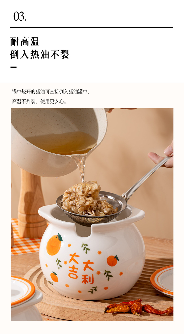 大吉大利陶瓷猪油罐家用耐高温辣椒油罐荤油罐子厨房调料罐猪油灌