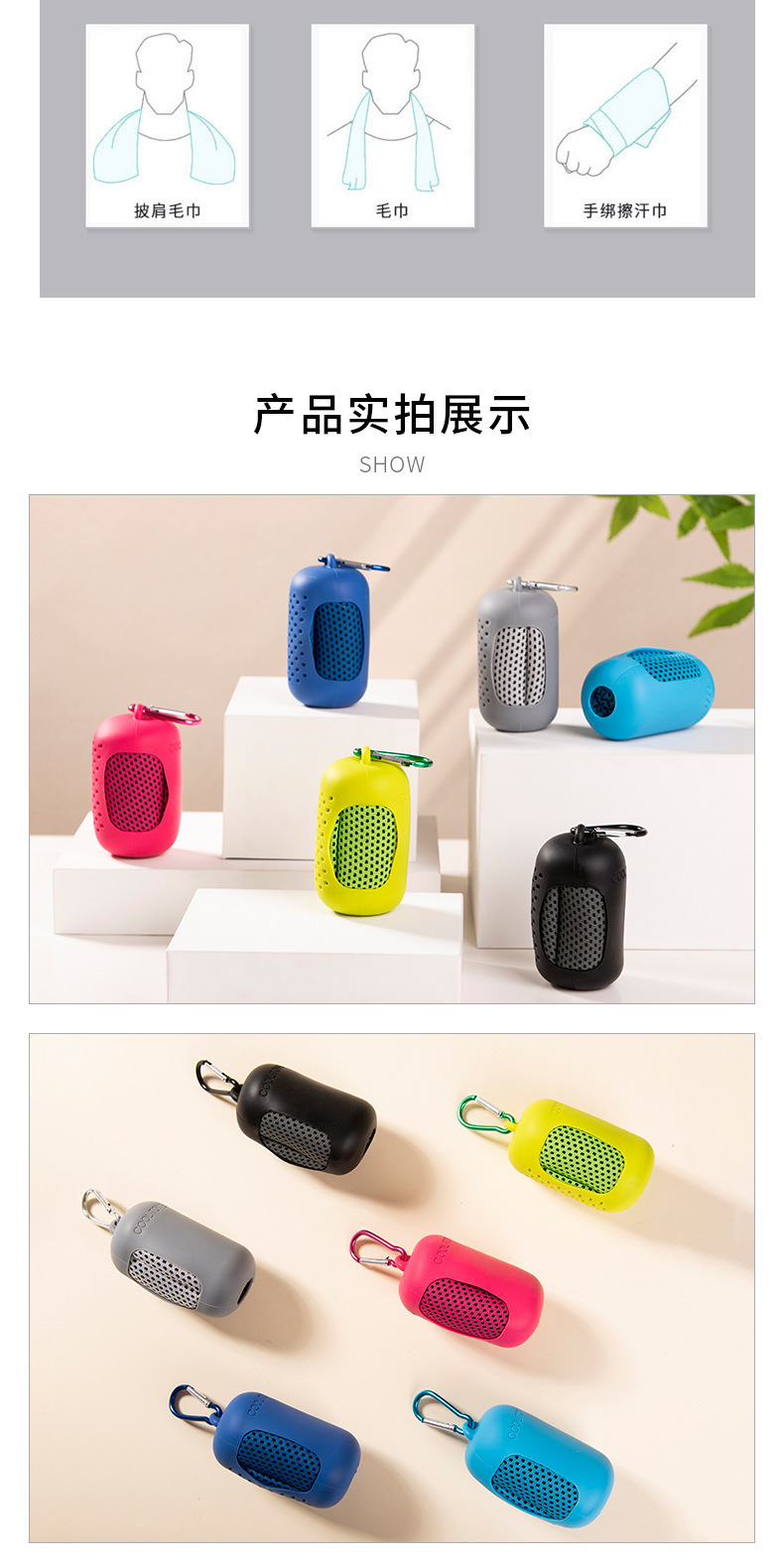 外贸创意便携迷你硅胶套装冷感毛巾 户外降温冰凉巾 速干健身毛巾