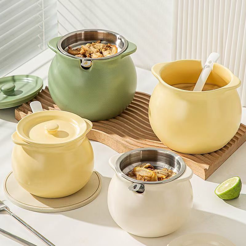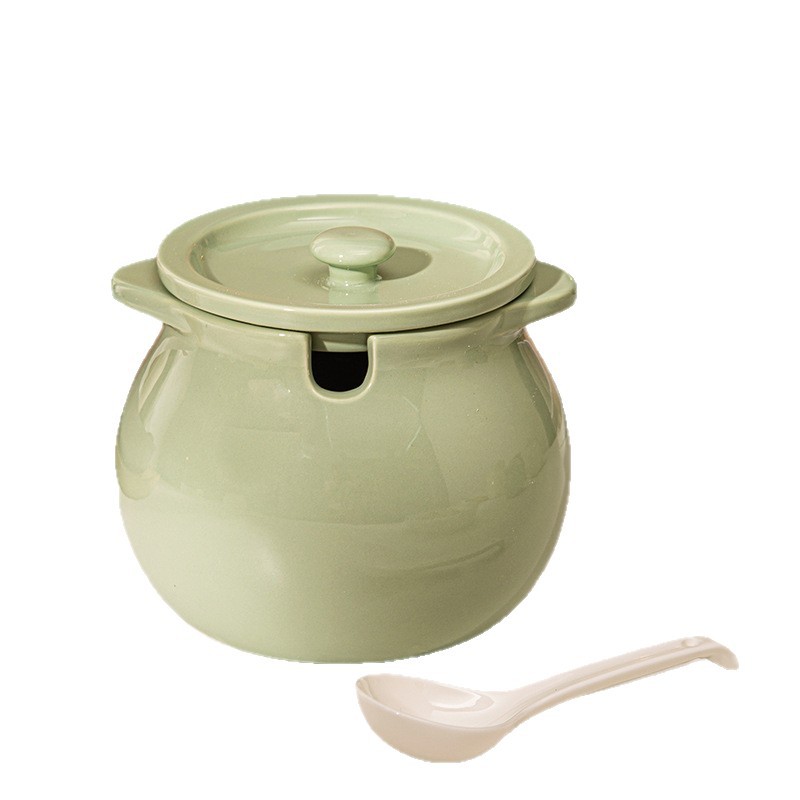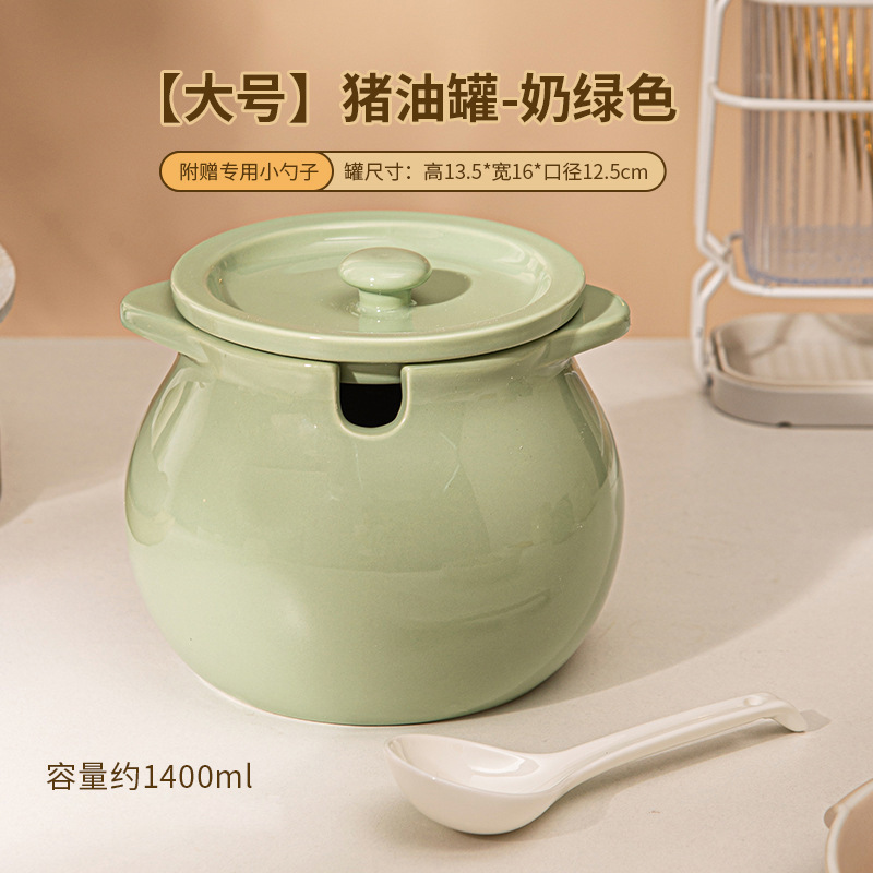 陶瓷猪油罐家用带勺子带盖北欧奶油风厨房耐高温泼辣子罐荤油罐子