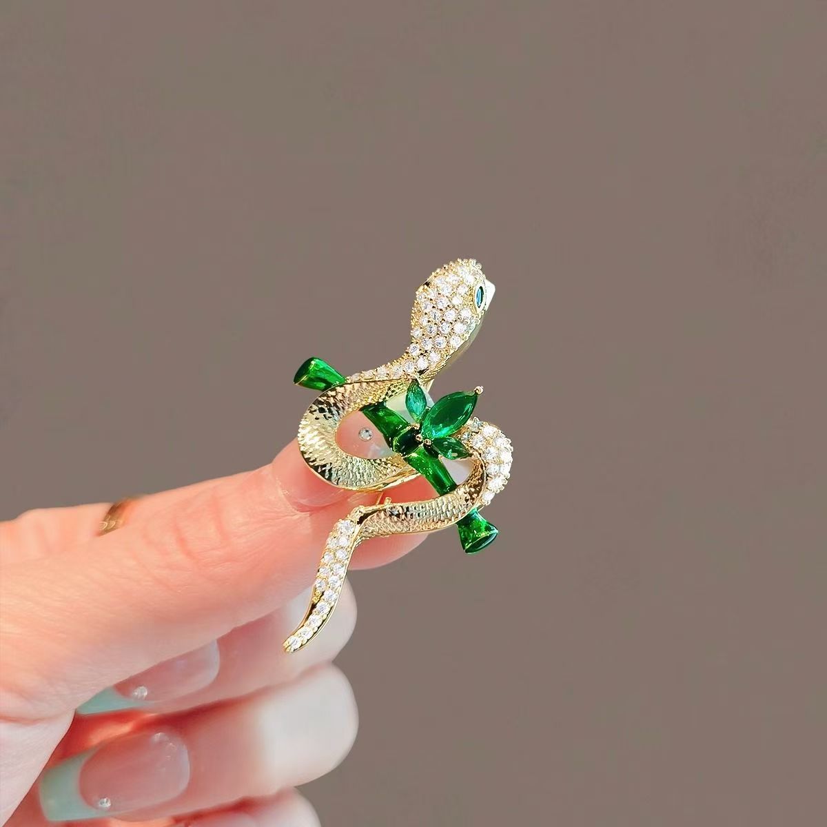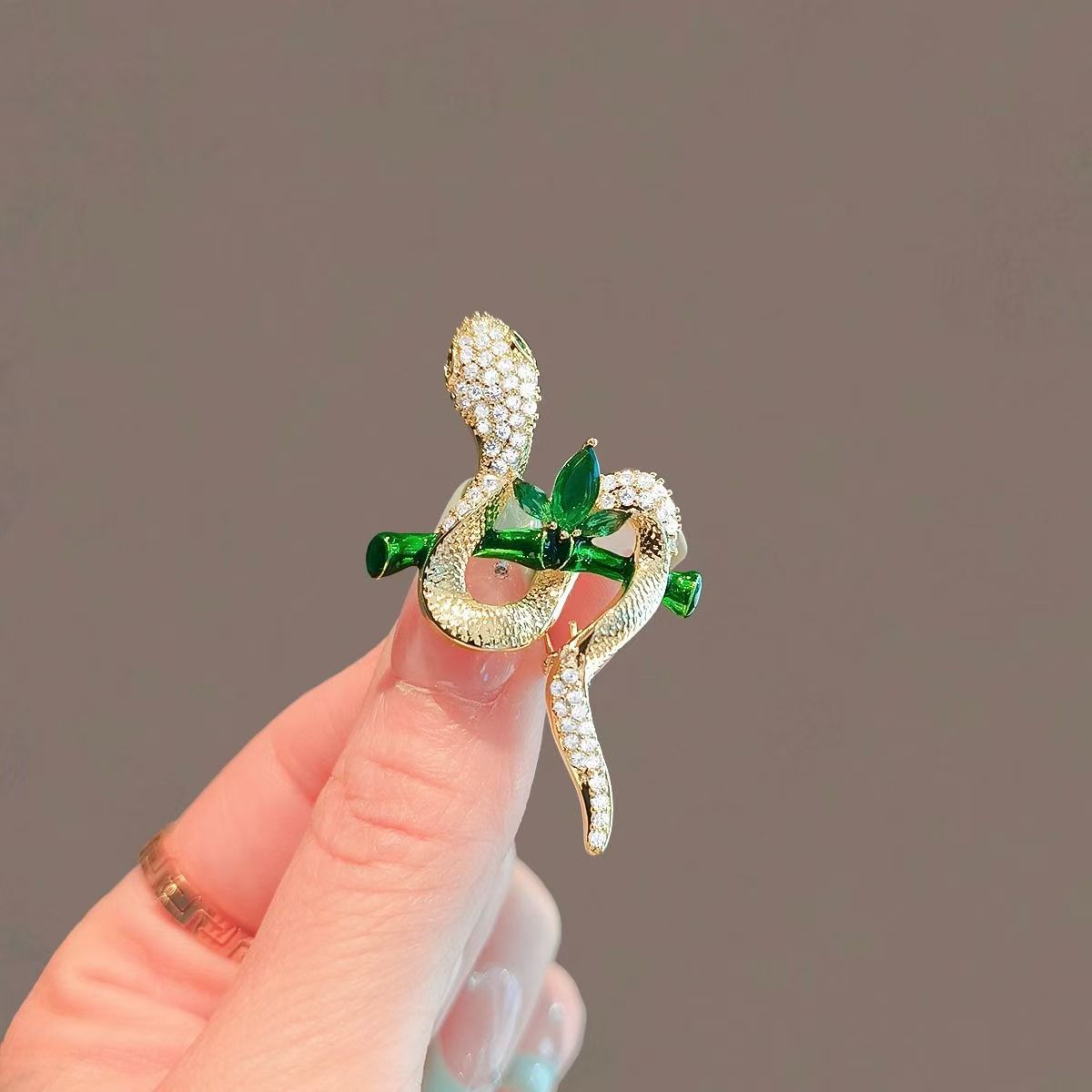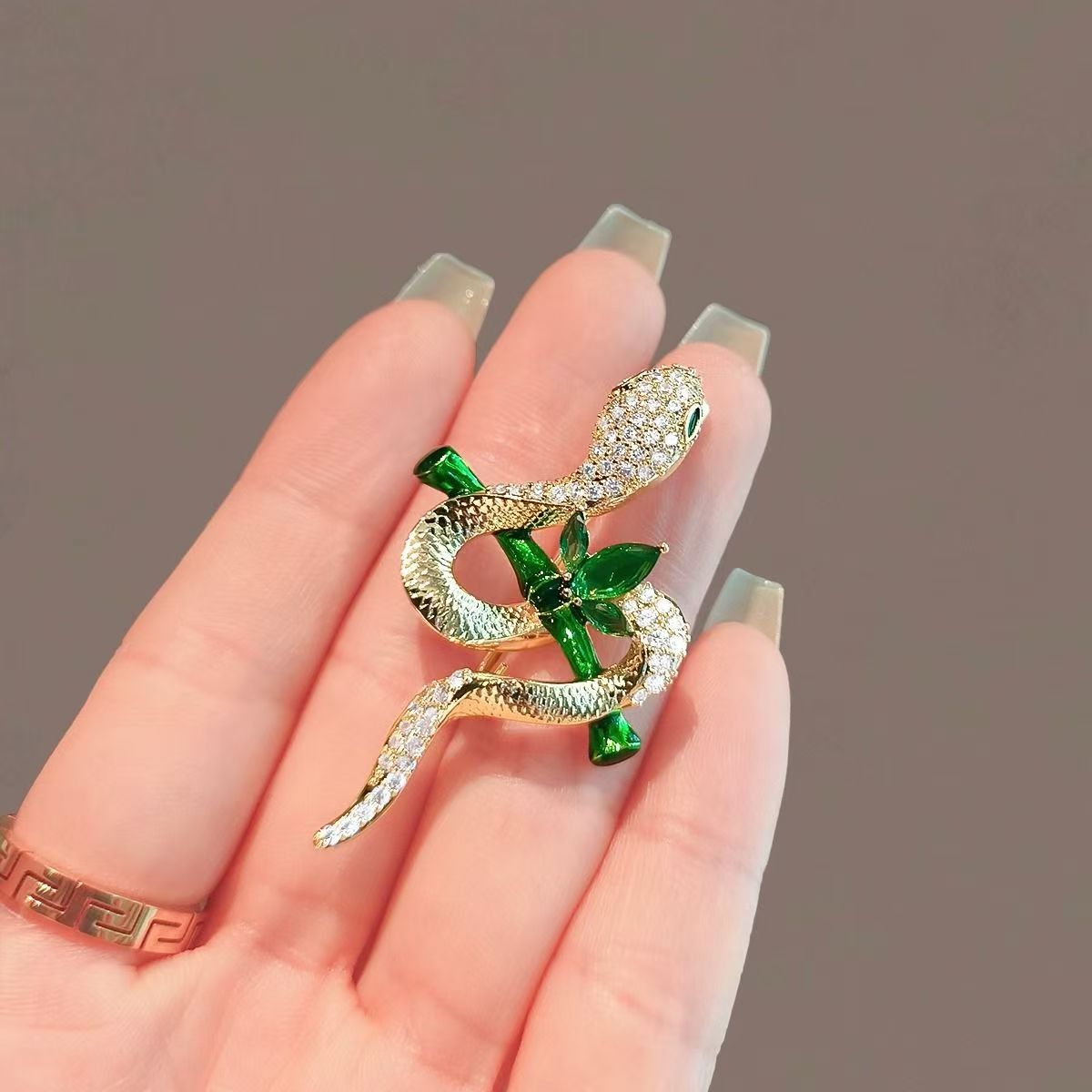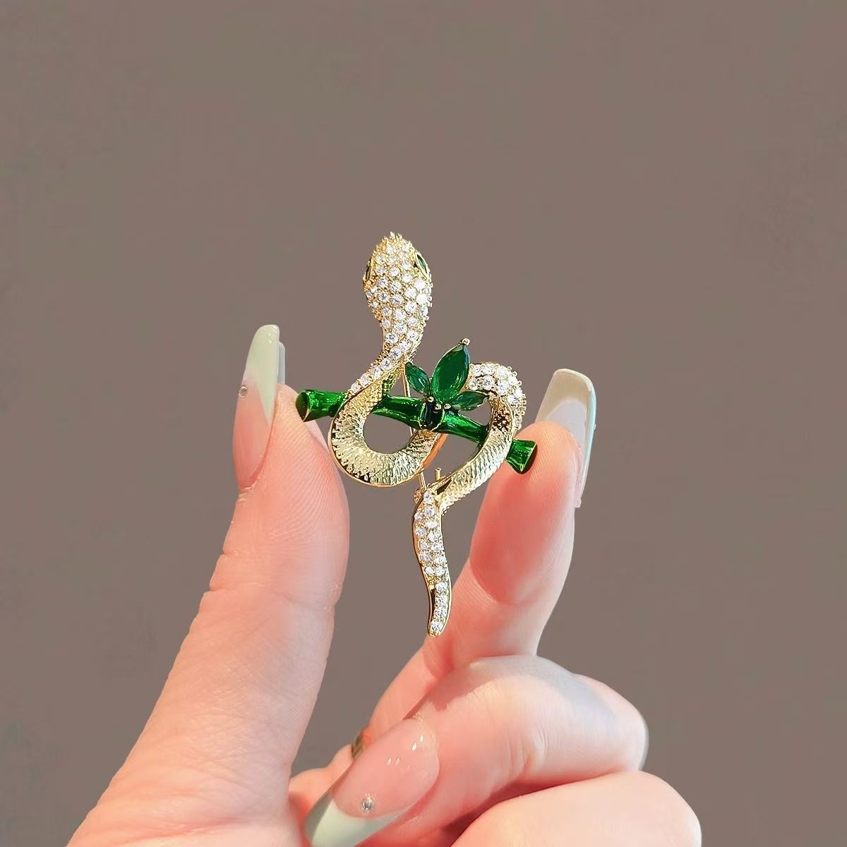 绿竹小蛇胸针高档女西服胸花配饰2025新款气质优雅防走光别针配饰