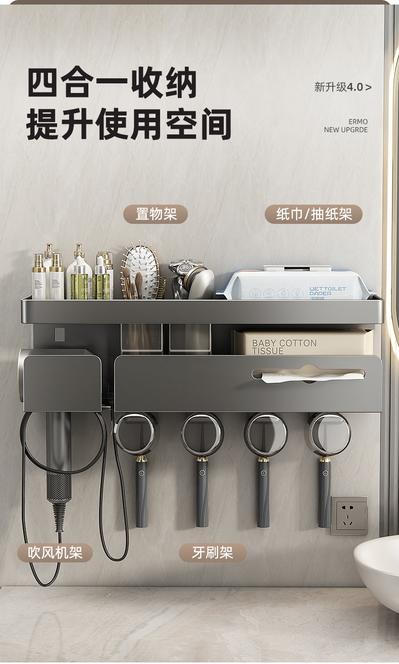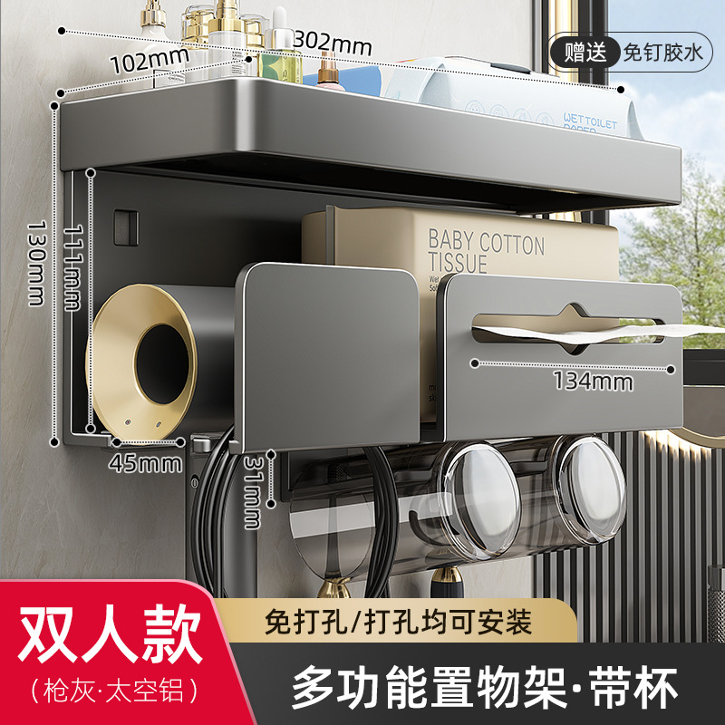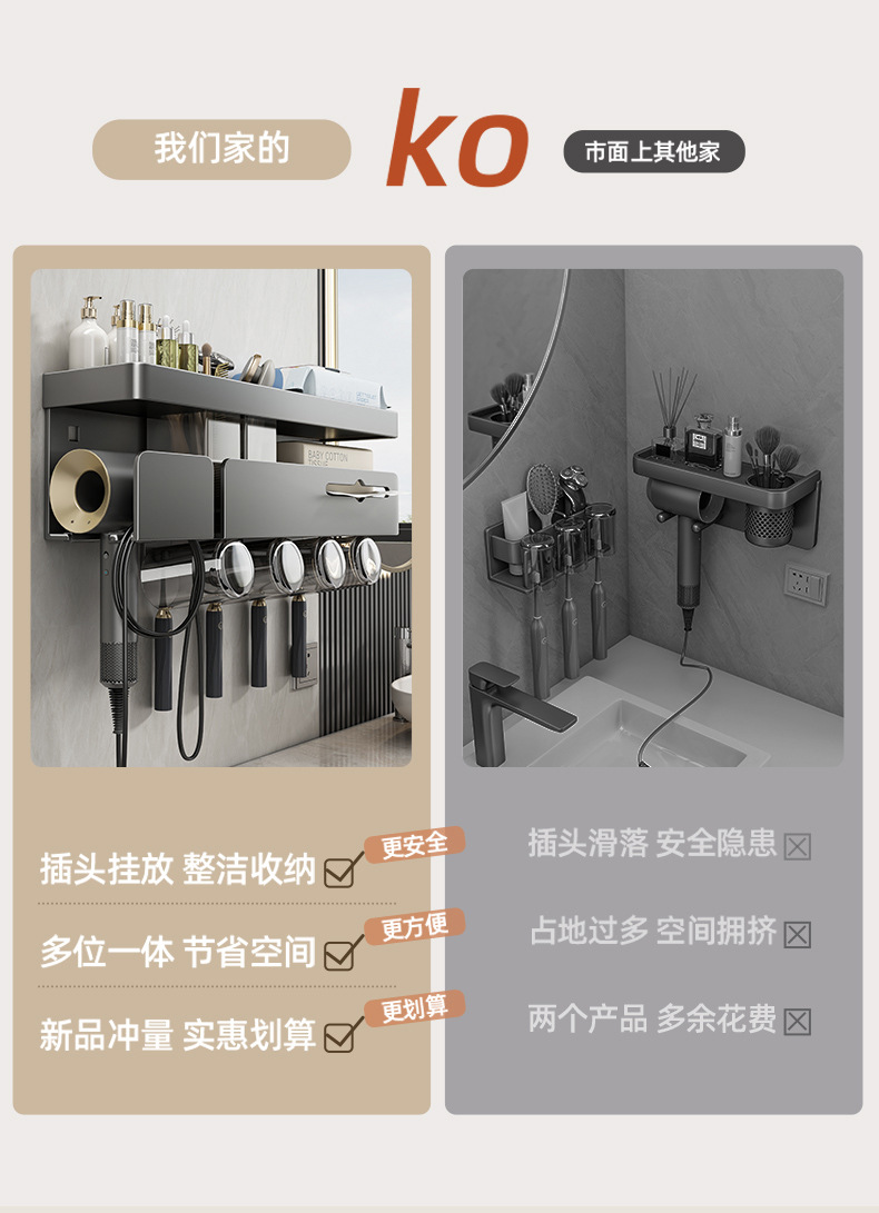 吹风机置物架免打孔卫生间壁挂电吹风支架浴室风筒收纳挂架通用