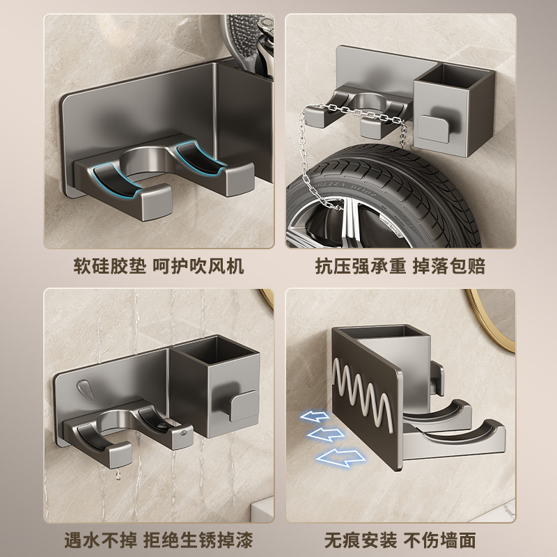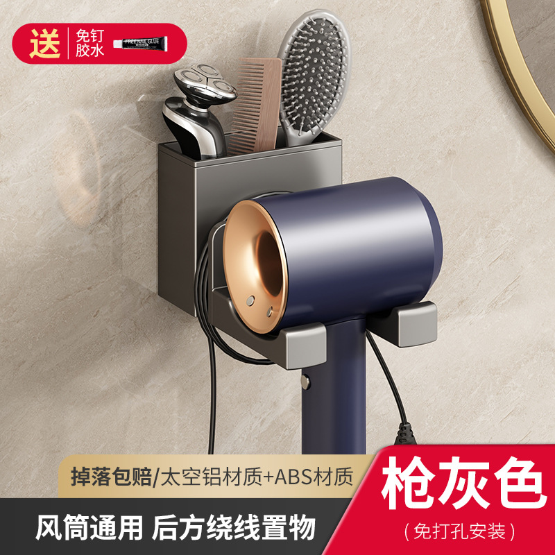 太空铝吹风机架浴室免打孔壁挂收纳置物架卫生间墙上吹风机置物架