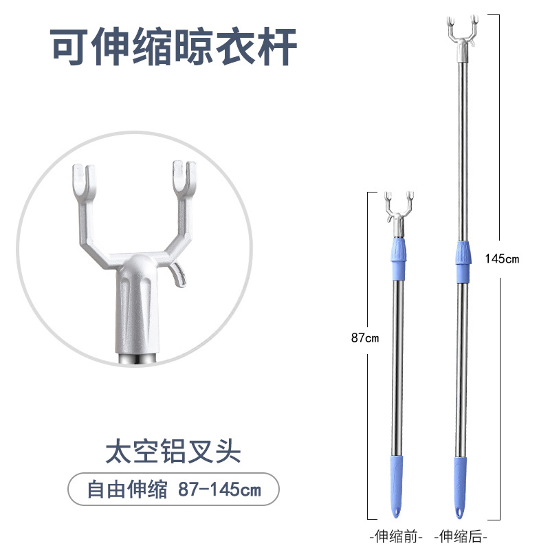 可伸缩不锈钢晾衣叉撑衣杆晒衣杆叉晾衣杆叉丫衣叉杆挑衣服取衣杆