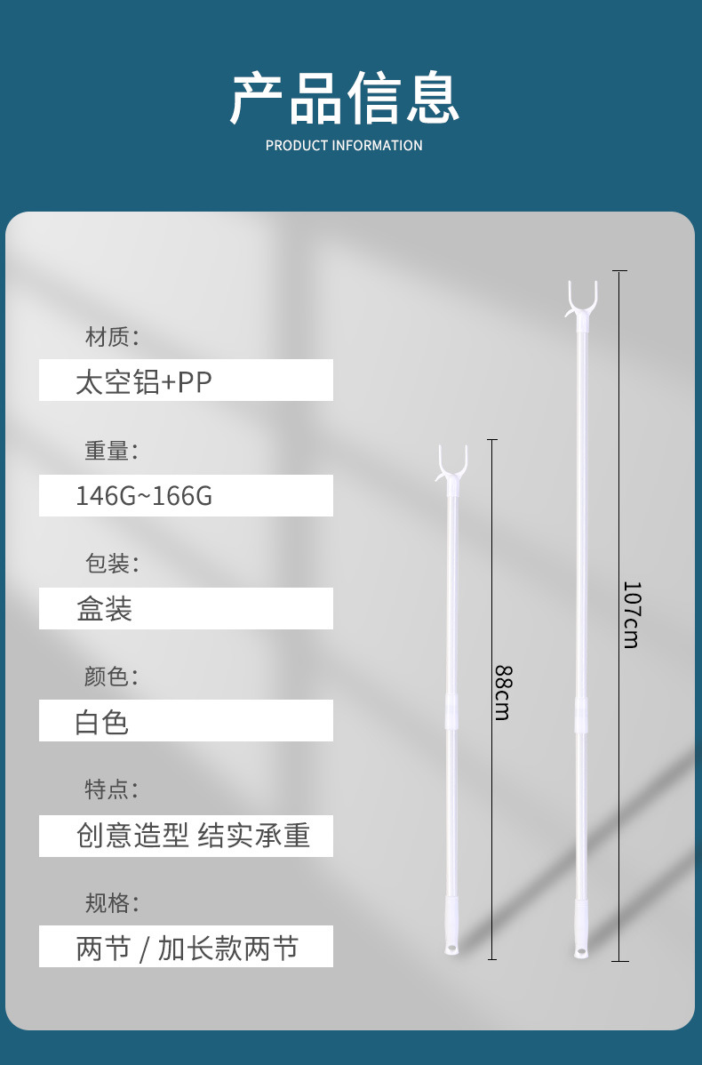 撑衣杆家用对接晾衣杆棍加长衣叉杆凉衣捍晒衣挂衣杆挑衣服丫叉杆