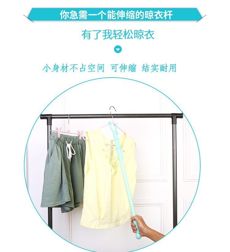 塑料可伸缩晾衣杆叉丫家用便携式撑衣杆纯色阳台晒衣杆宿舍取衣杆