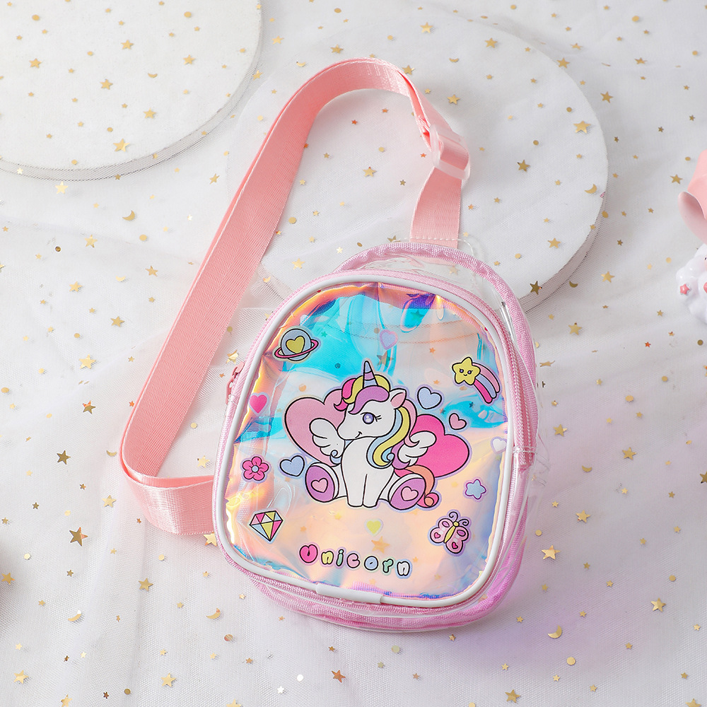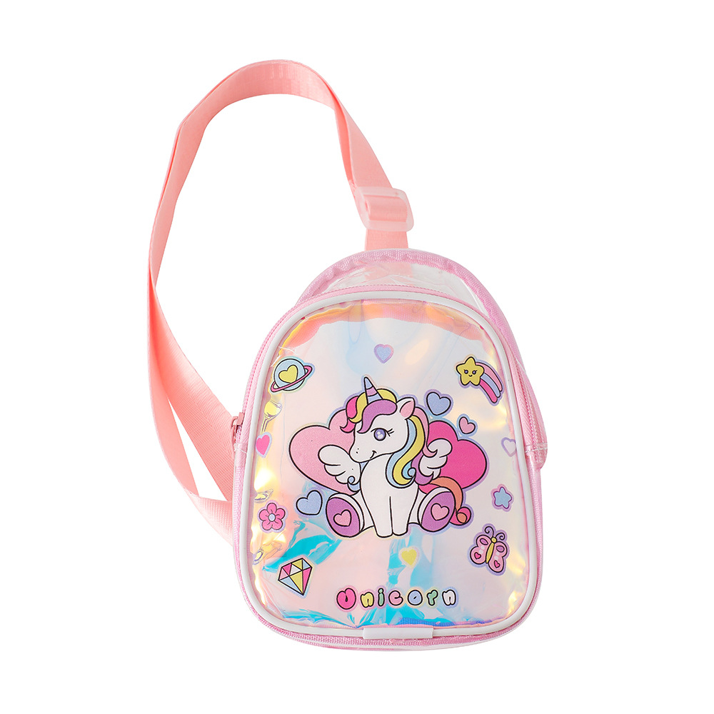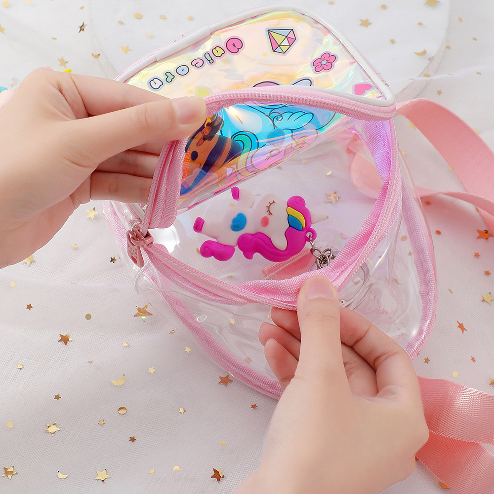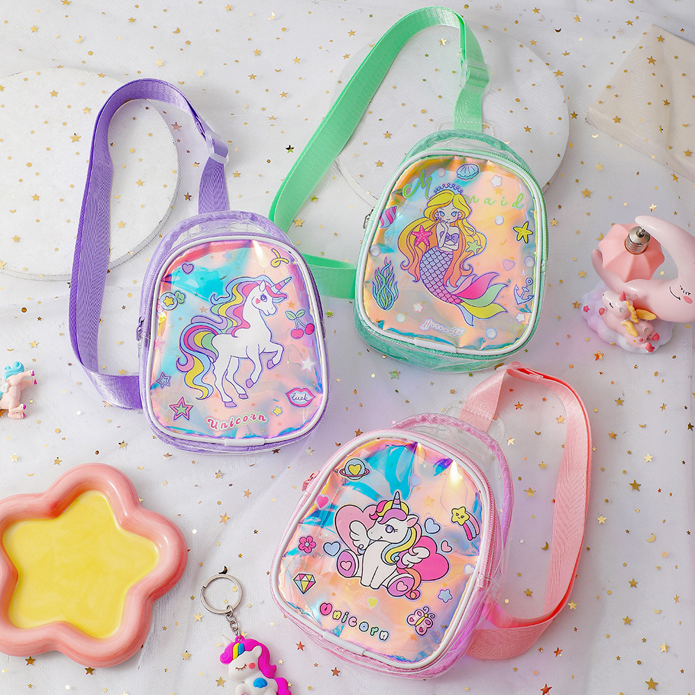 夏季透明PVC儿童单肩胸包卡通独角兽斜跨单肩包学生便携收纳包包