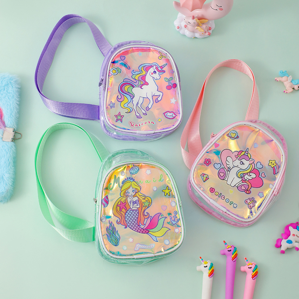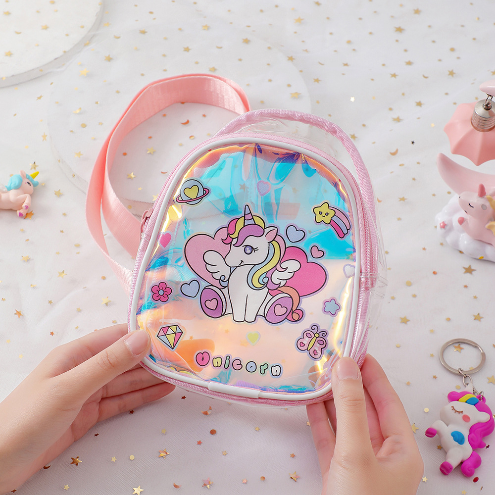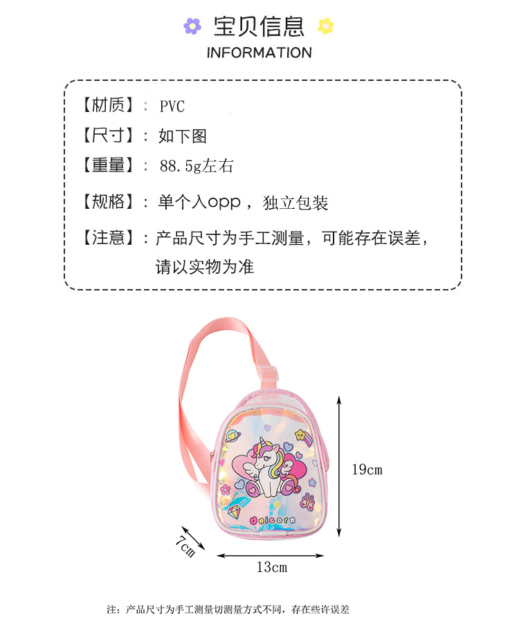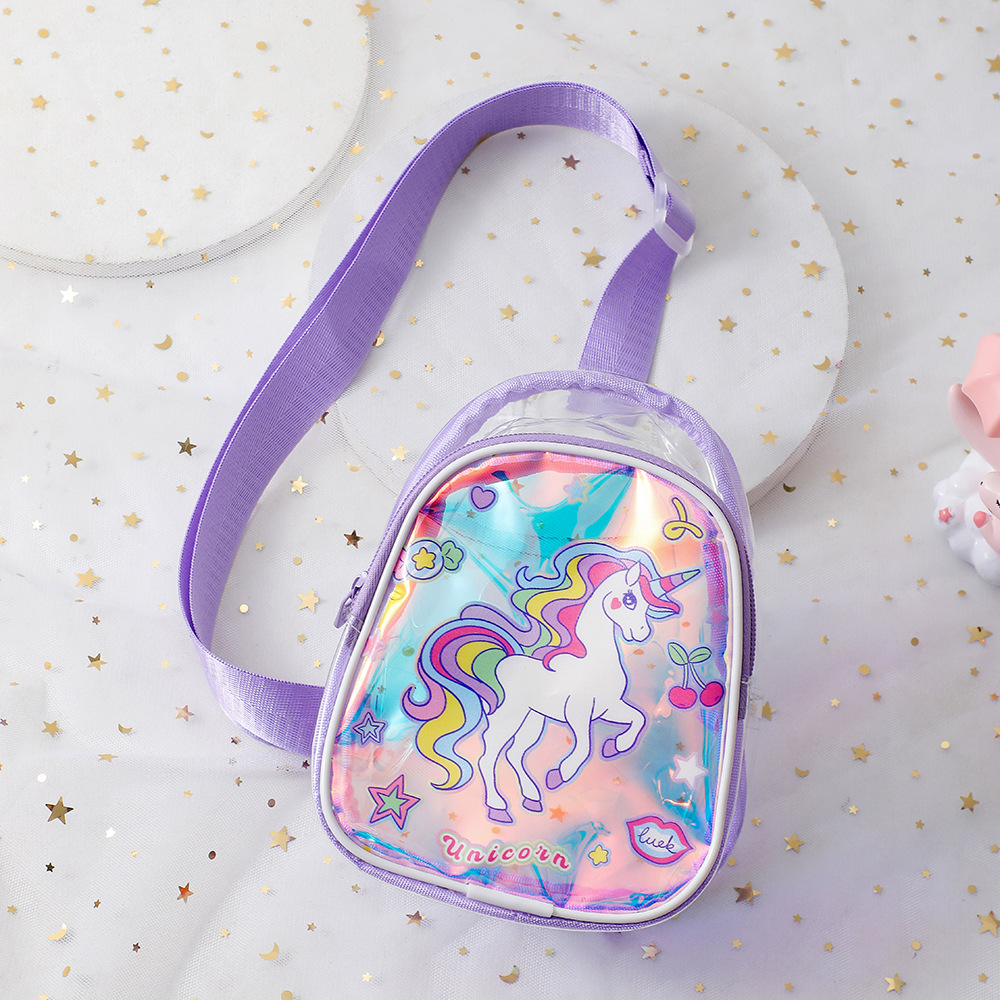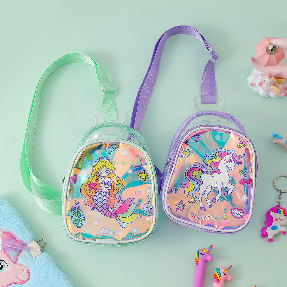 夏季透明PVC儿童单肩胸包卡通独角兽斜跨单肩包学生便携收纳包包