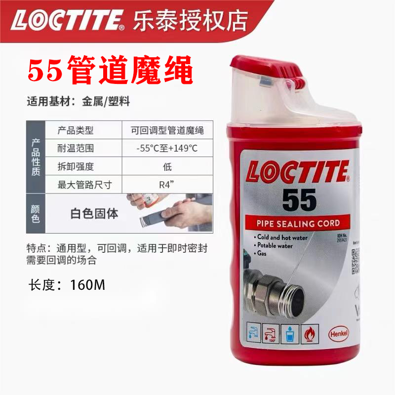 汉高乐泰55魔绳胶水管道魔绳饮用水管天然气管道密封可回调生料带