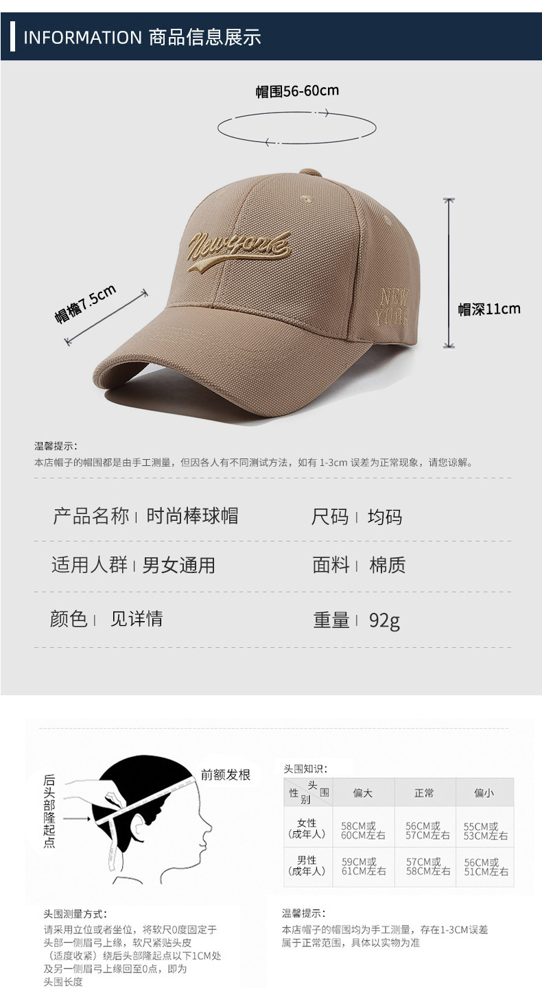 帽子男加大加深宽帽檐显脸小鸭舌帽刺绣时尚简约休闲大头围棒球帽