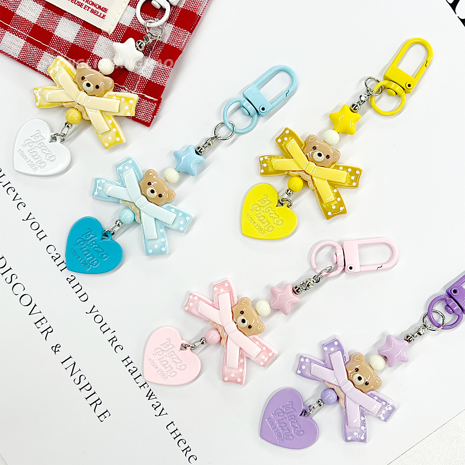 卡通树脂蝴蝶结爱心小熊挂件创意diy钥匙扣箱包挂饰伴手礼小礼品