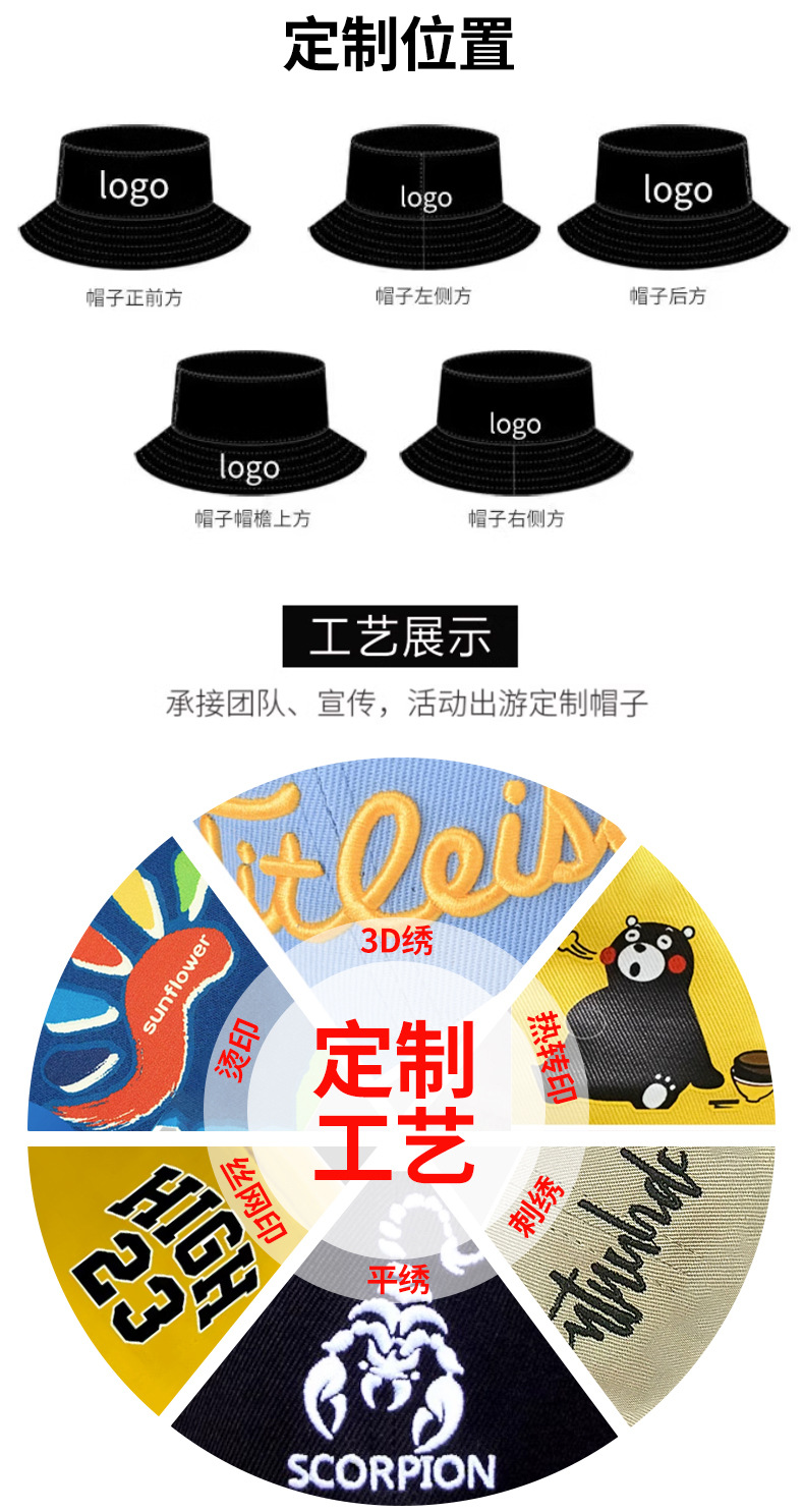旅行社旅游帽渔夫帽定制logo广告帽盆帽百搭遮阳帽防晒亲子印logo
