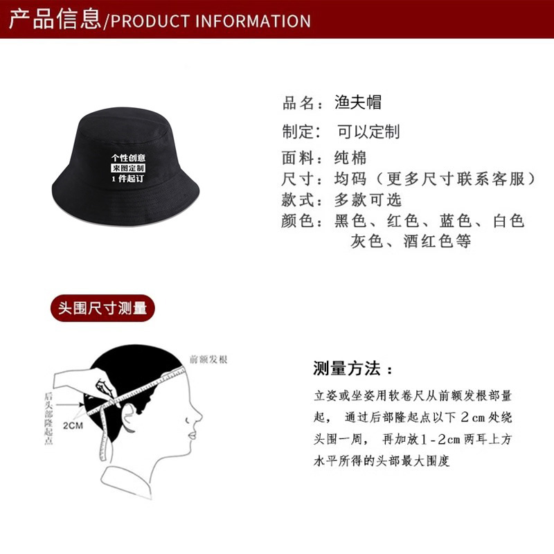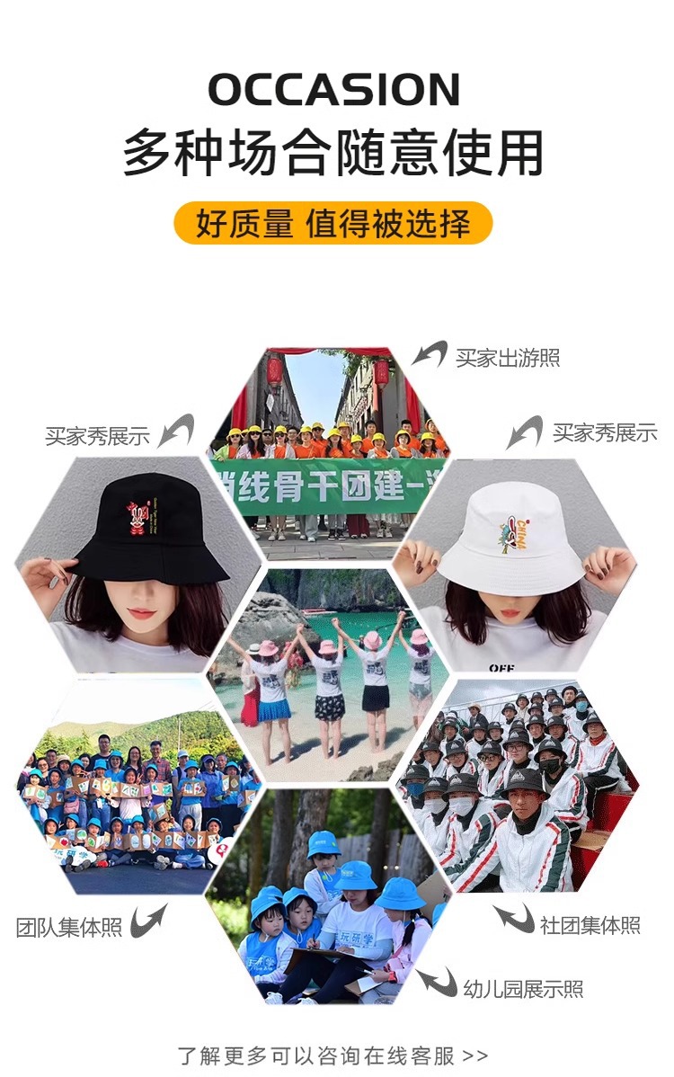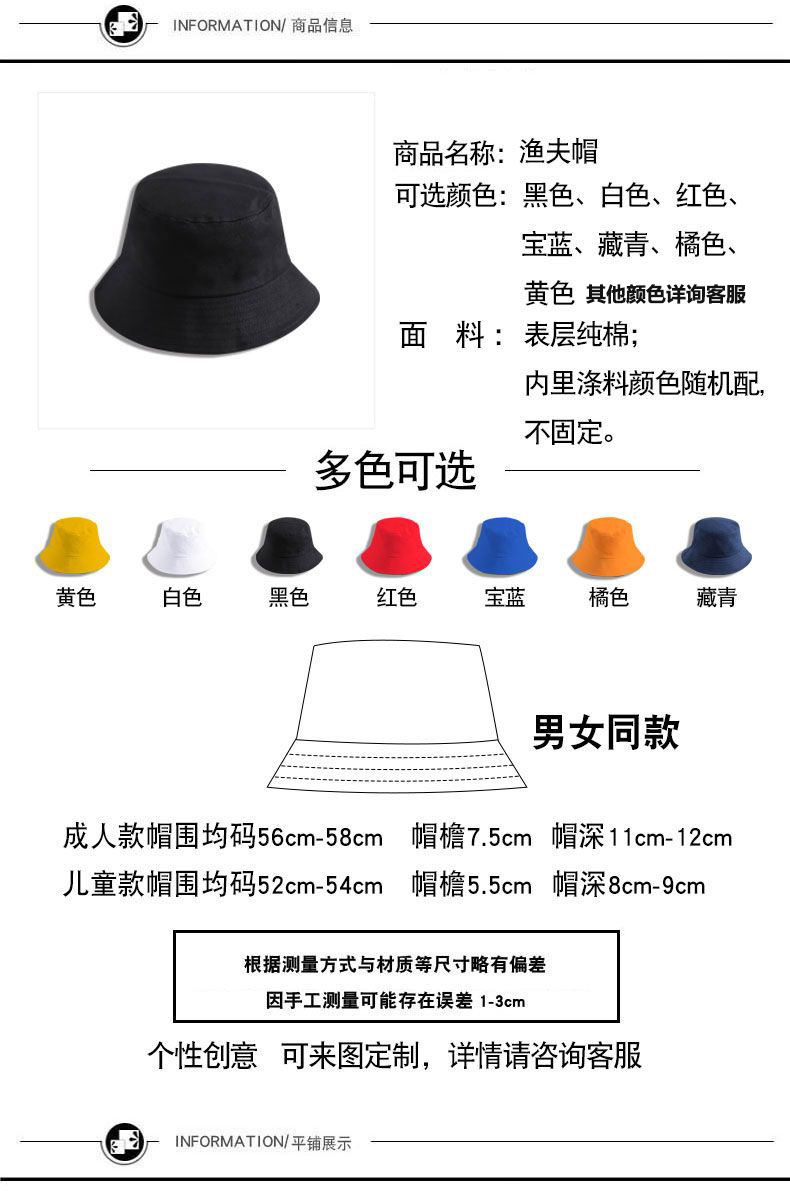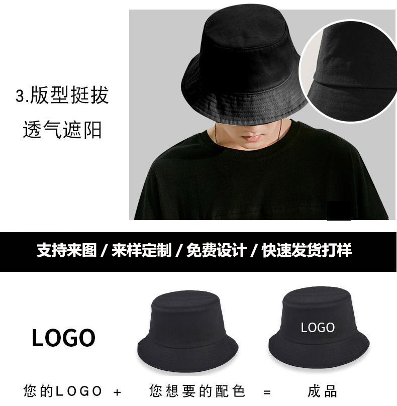 定制logo印花刺绣棉盆帽男户外遮阳纯色登山防晒帽子女双面渔夫帽