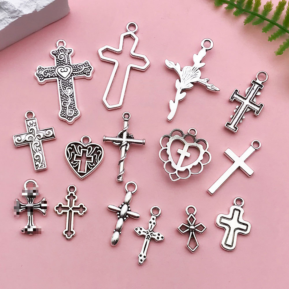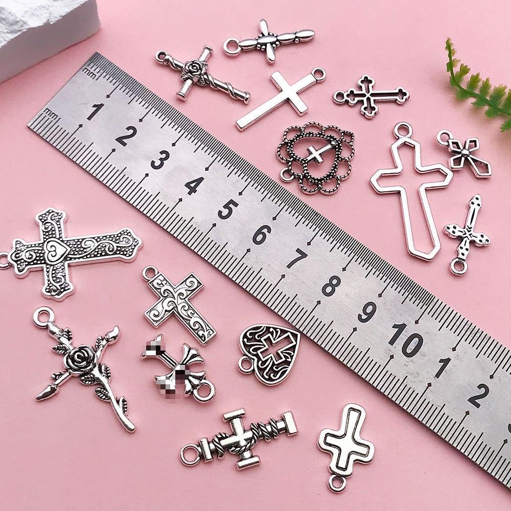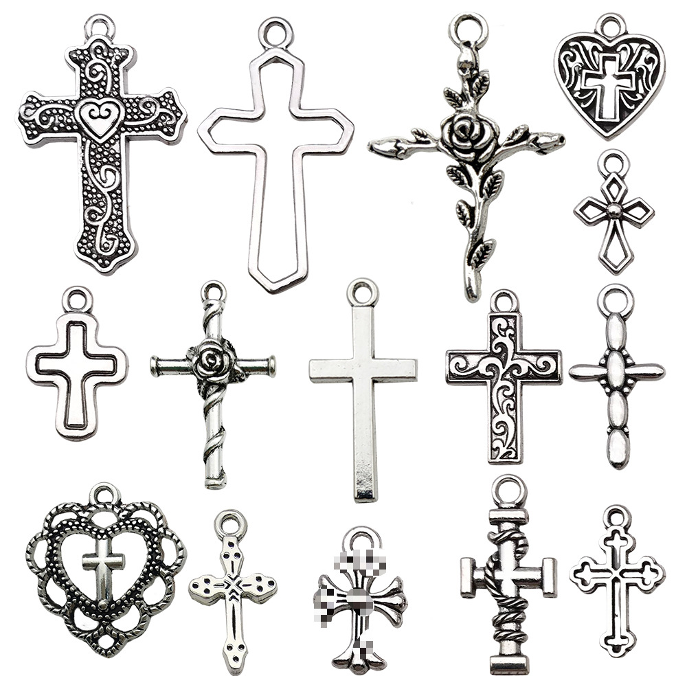 热卖复古古银色1个镂空十字架手作材料配件DIY项链耳饰服饰装饰品