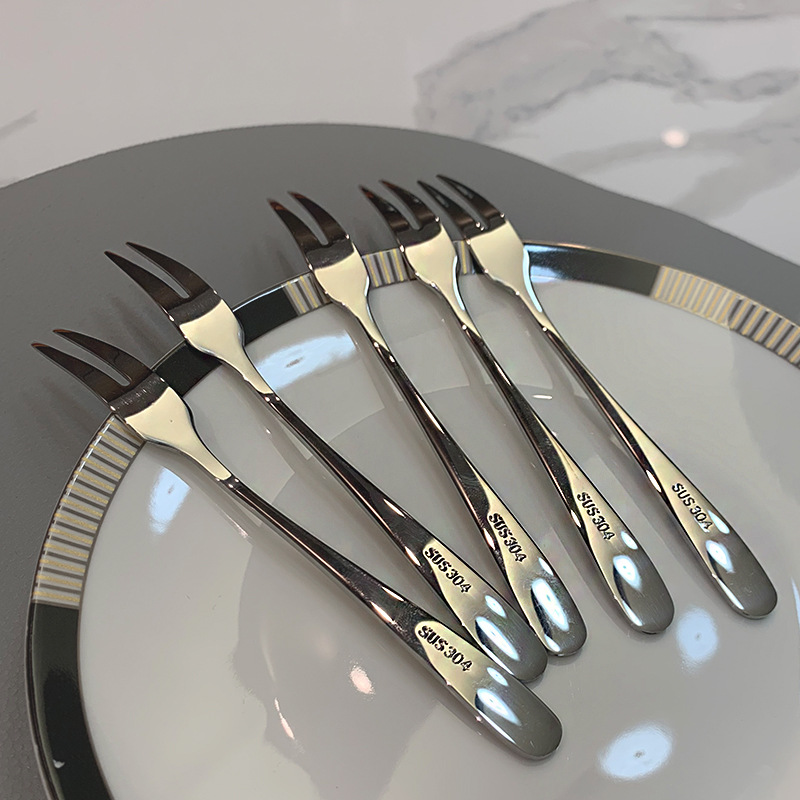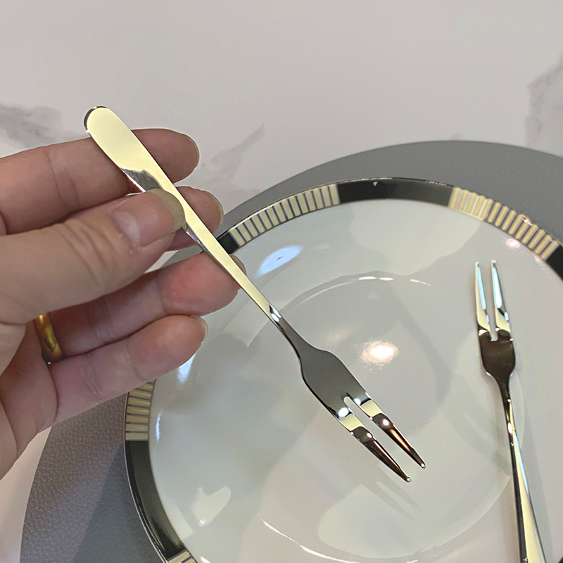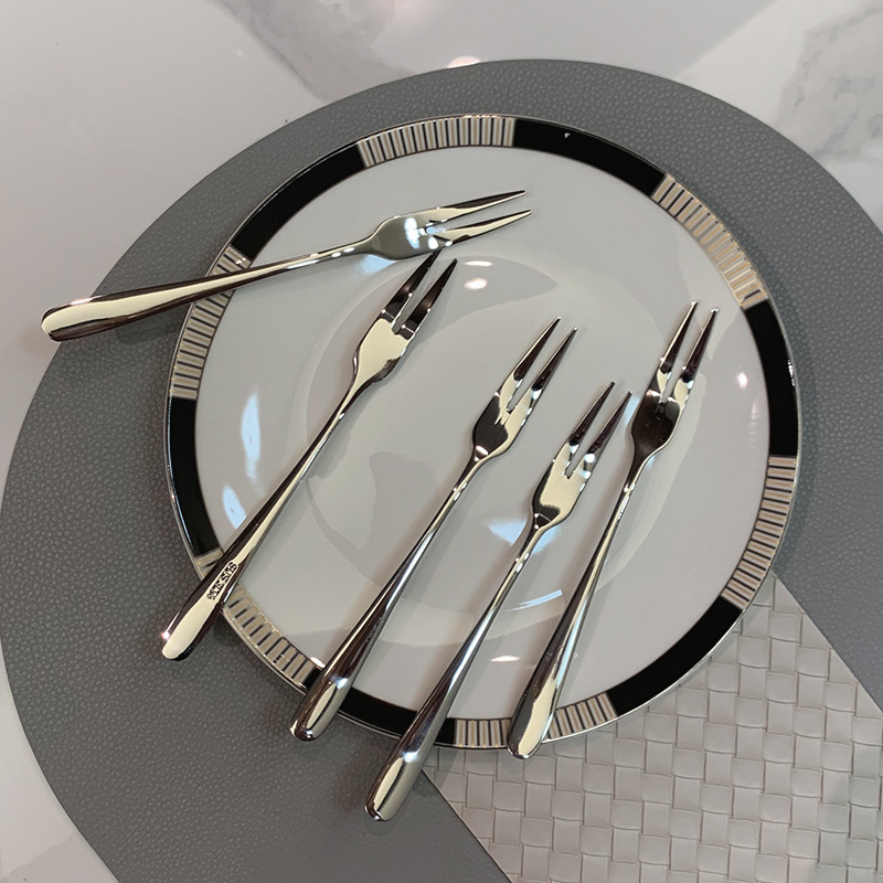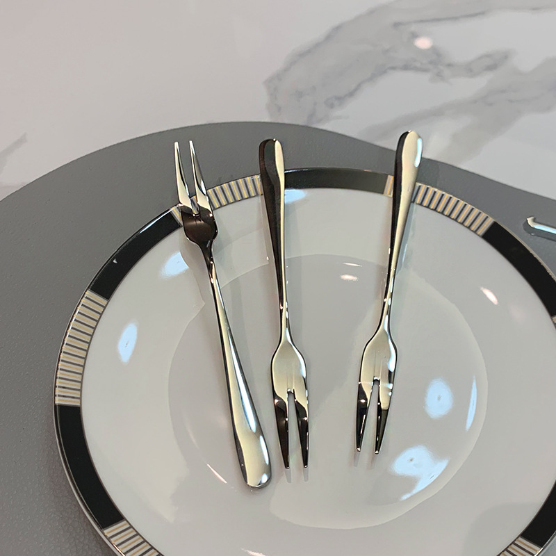 ins风高档304不锈钢水果叉家用酒店轻奢蛋糕甜品饼叉果签套装餐具