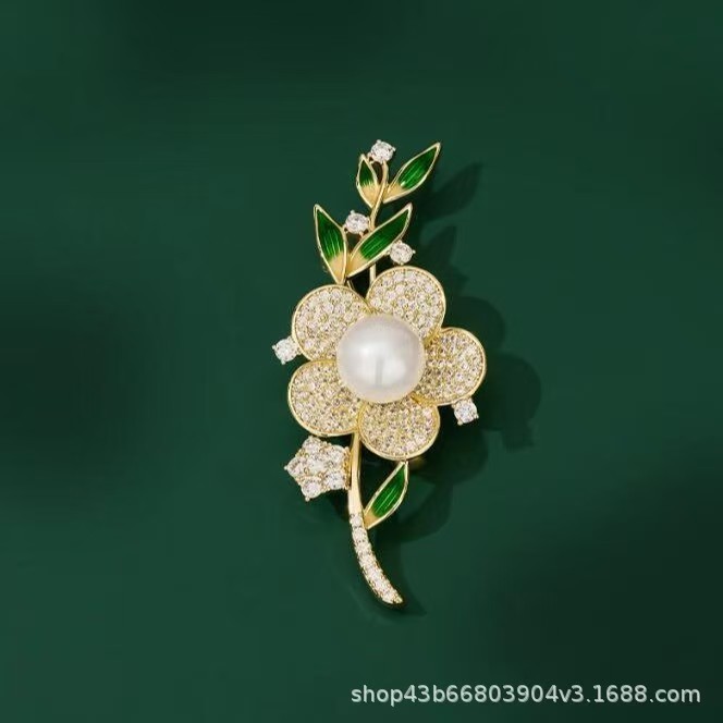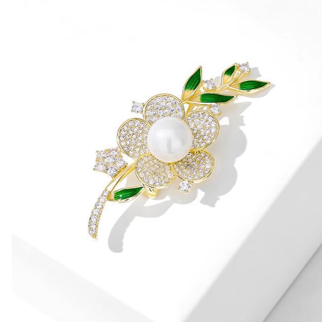 紫月秋冬甜美璀璨烟花滴油花朵淡水珍珠胸针大气精致胸花服装配饰
