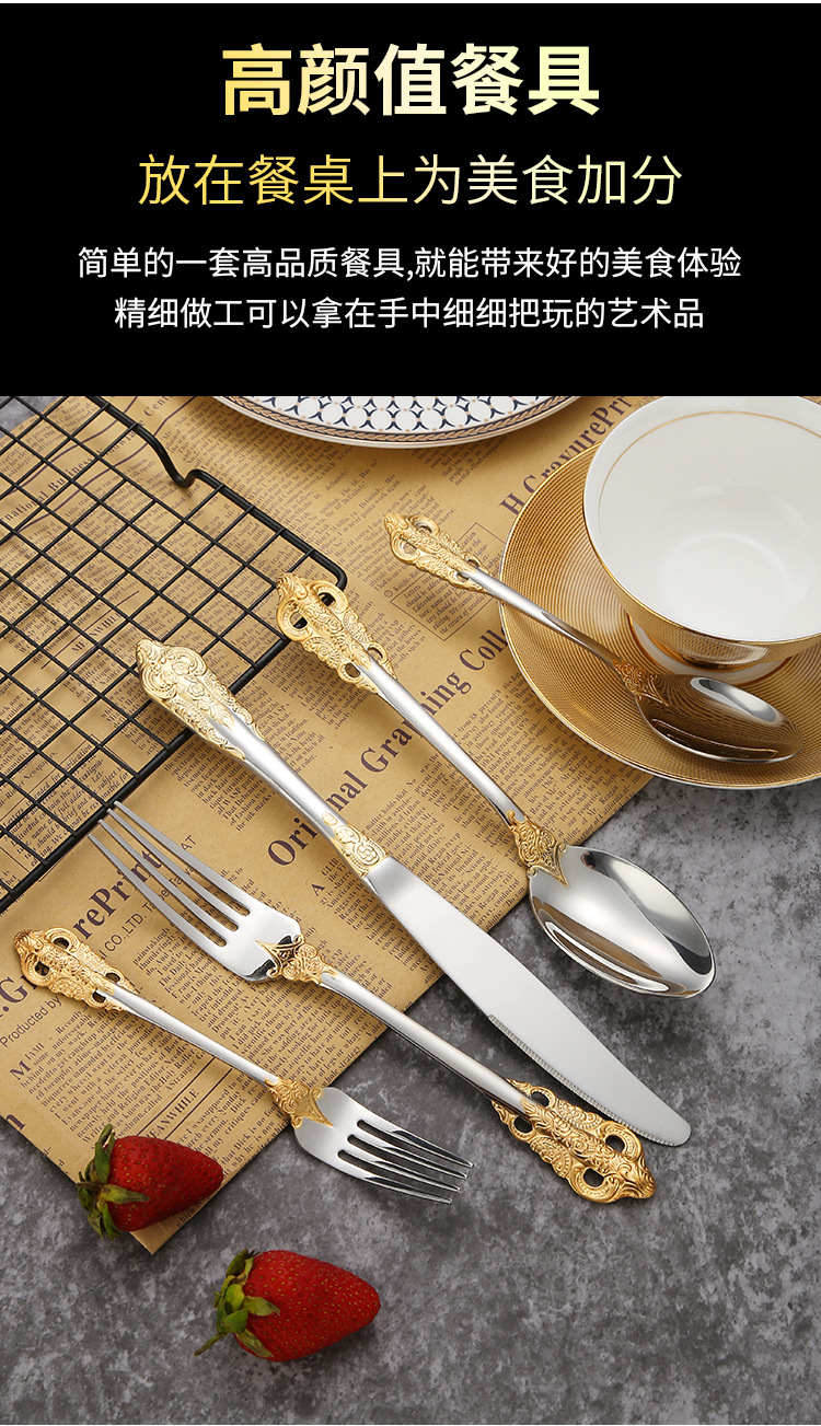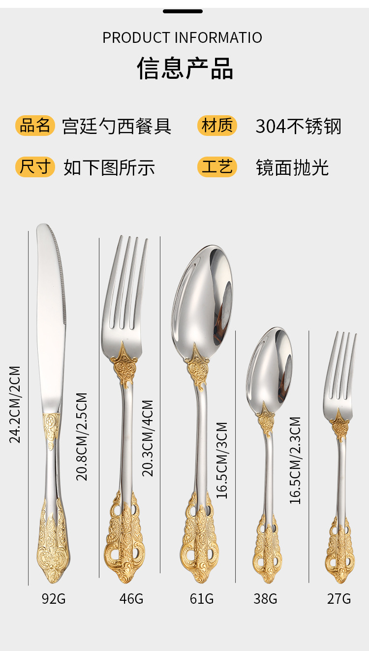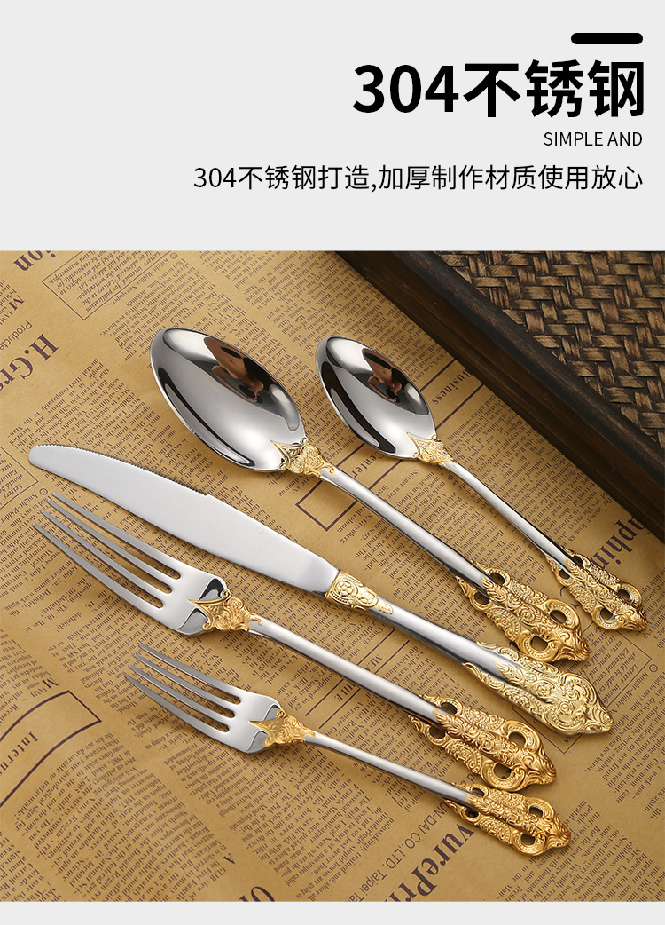 304不锈钢宫廷餐具西餐刀叉勺套装酒店牛排刀叉调羹勺子耐用西式