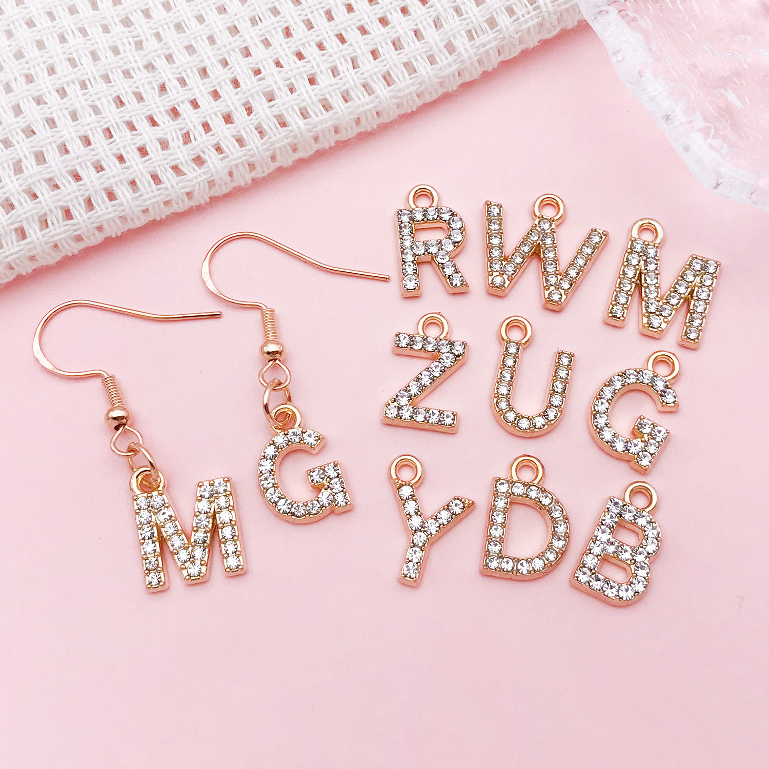 KC金轻奢简约26个英文字母点钻挂件吊坠diy项链服装饰品配件材料
