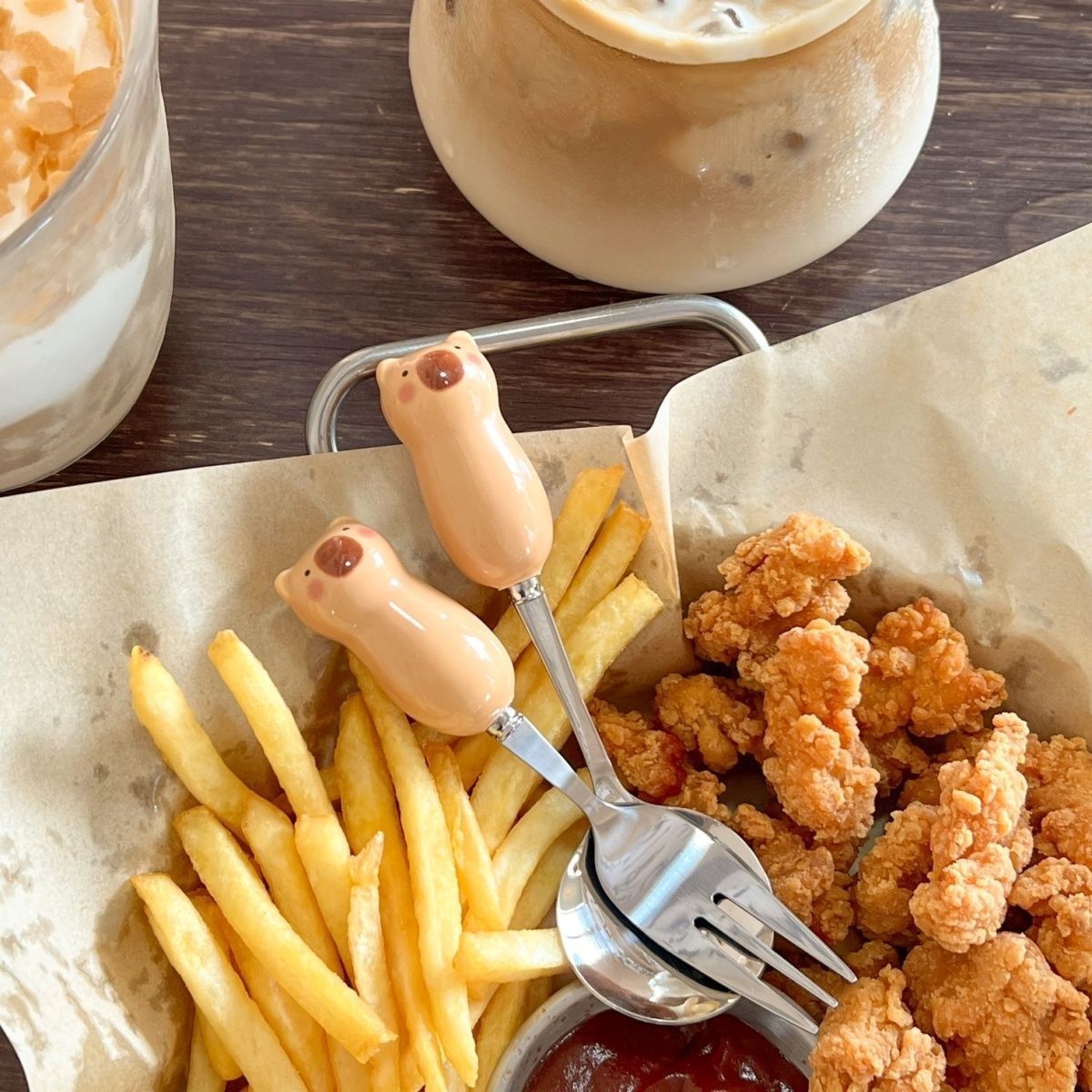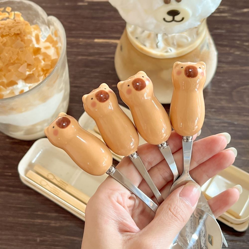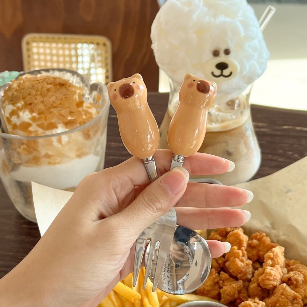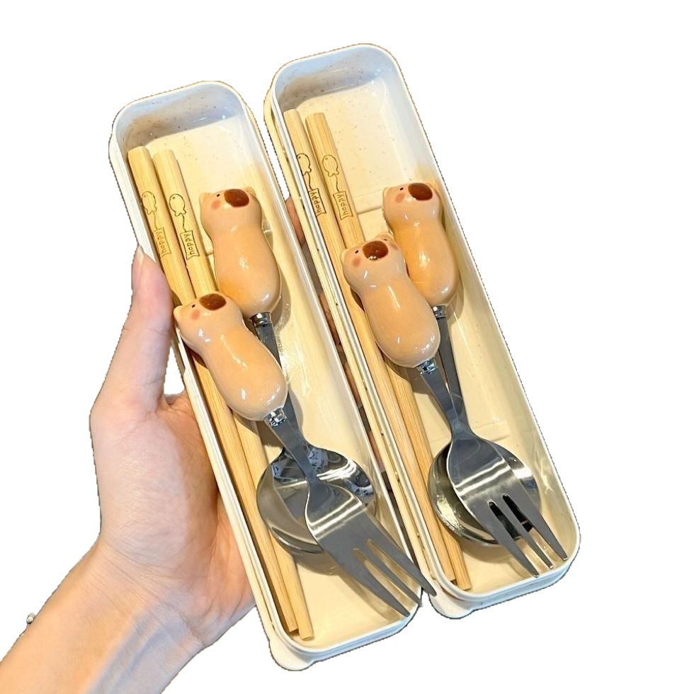卡皮巴拉勺子筷子套盒叉子ins高颜值学生儿童便携式餐具三件套装
