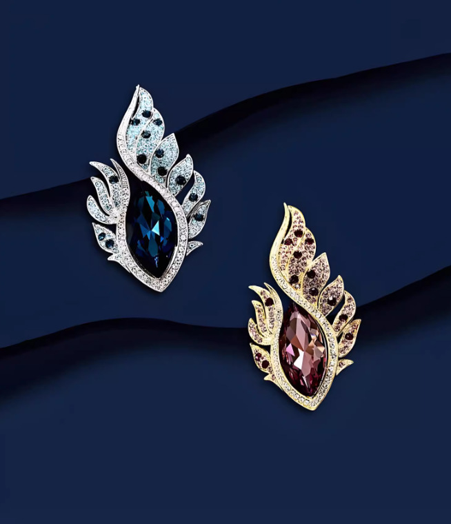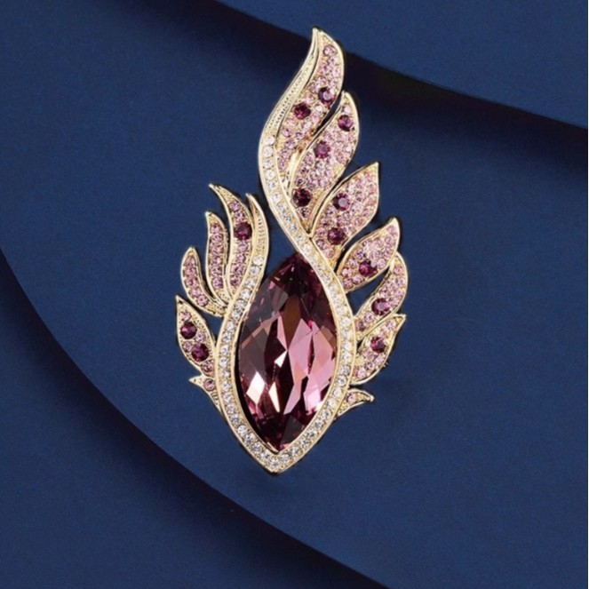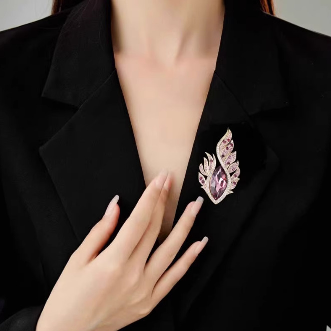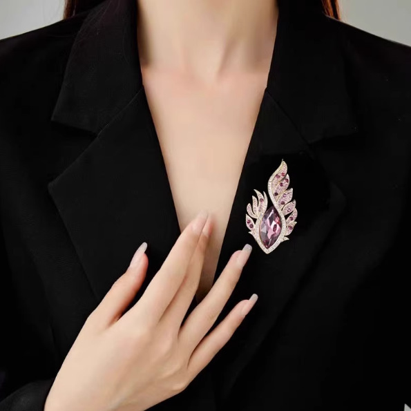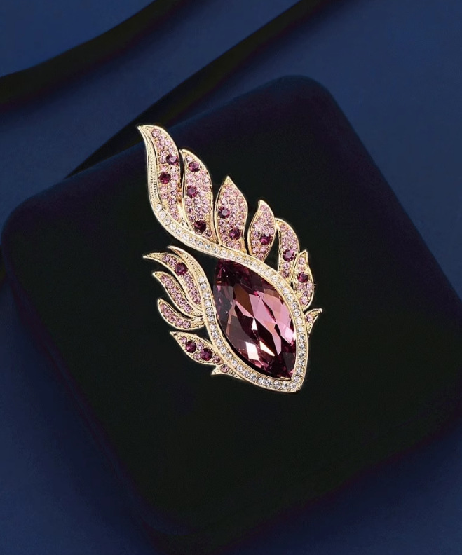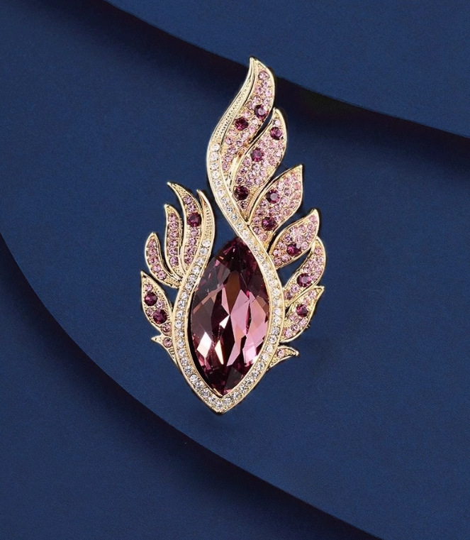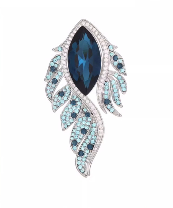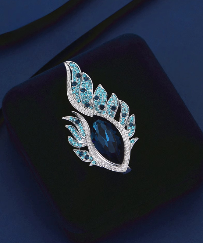 新款高档轻奢合金欧美奢华水晶凤眼羽毛彩钻胸针胸花服装配饰别针
