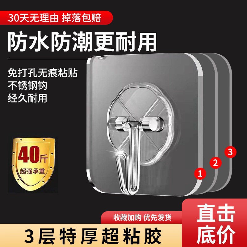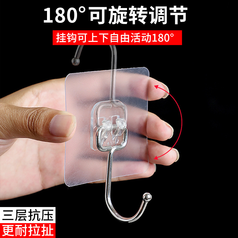 工厂批发透明大挂钩浴室强力粘胶大挂钩无痕挂钩免钉贴挂钩粘钩