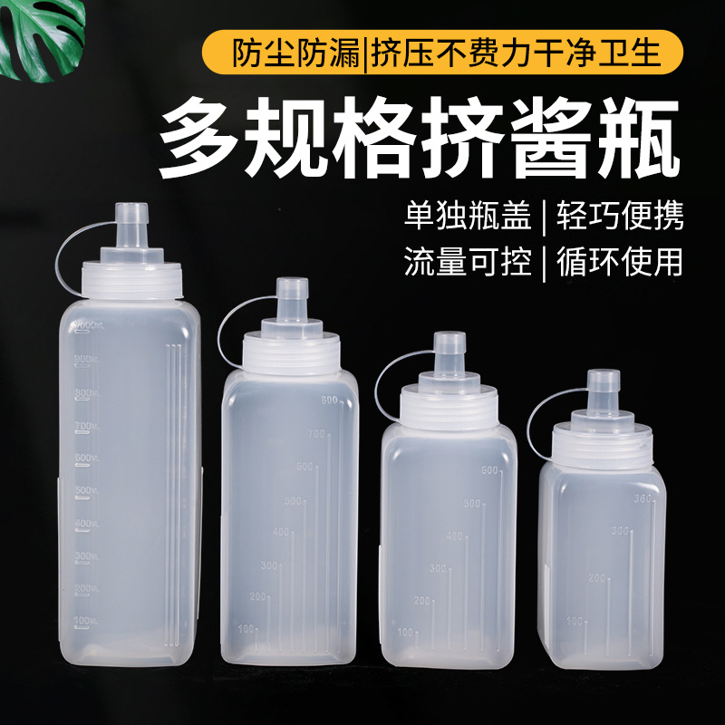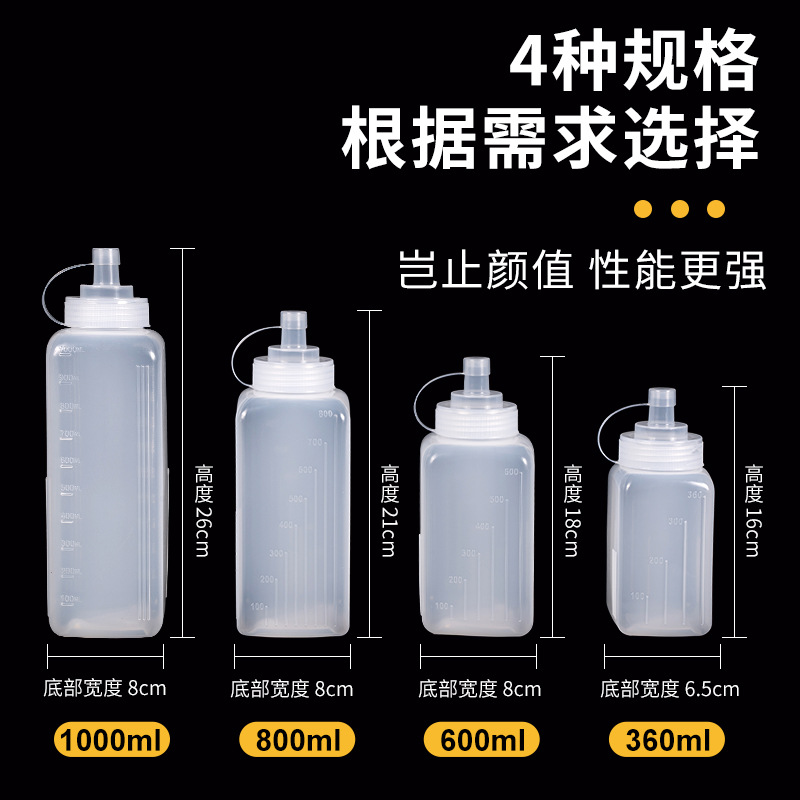 方形尖嘴塑料挤酱瓶大口径挤压瓶果酱瓶油壶挤酱壶商用厨房调料瓶
