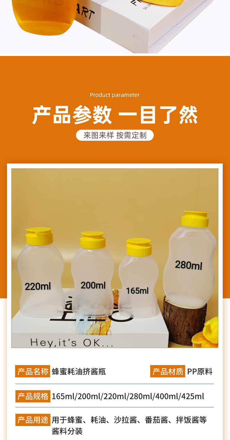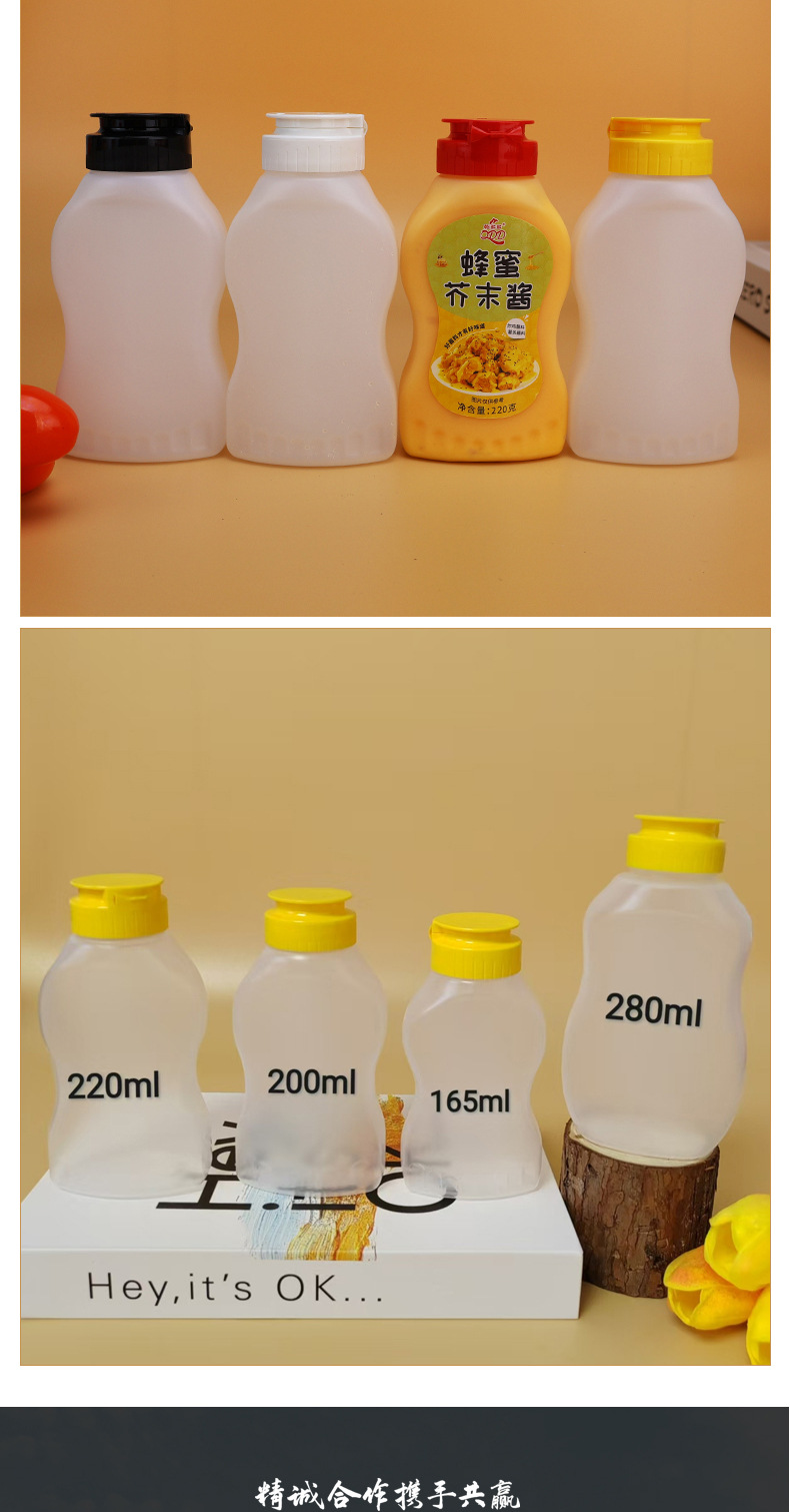 批发蚝油挤酱瓶食品级pe材质番茄酱翻盖沙拉酱透明蜂蜜耗油挤压瓶