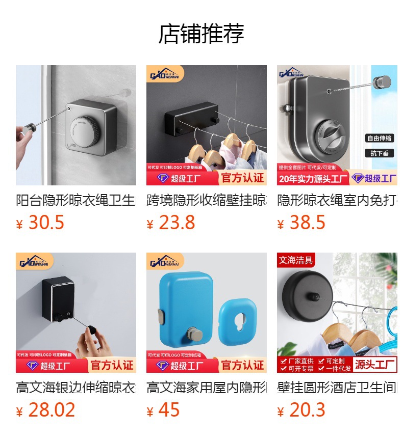 文海酒店隐形免打孔晾衣绳室内伸缩不锈钢丝晒衣绳户外尼龙挂衣绳