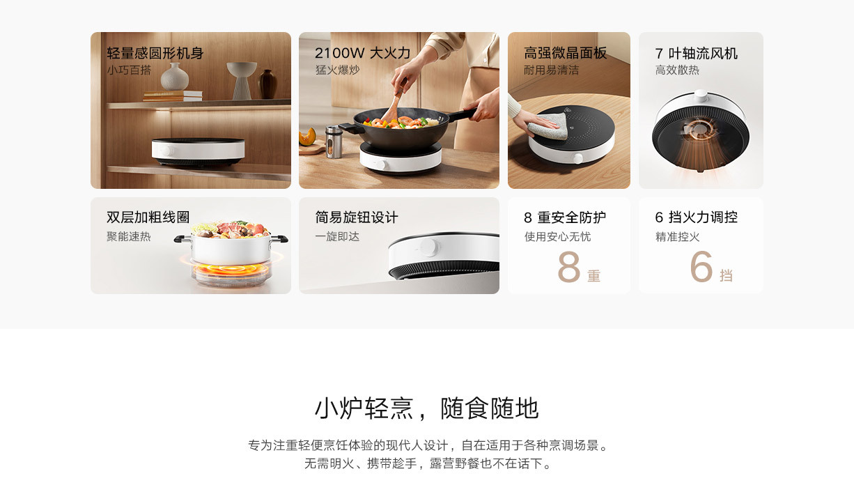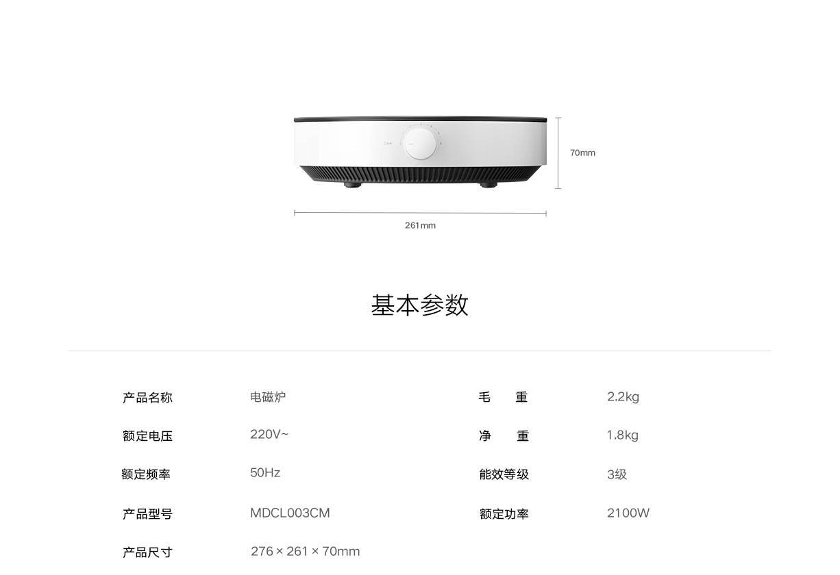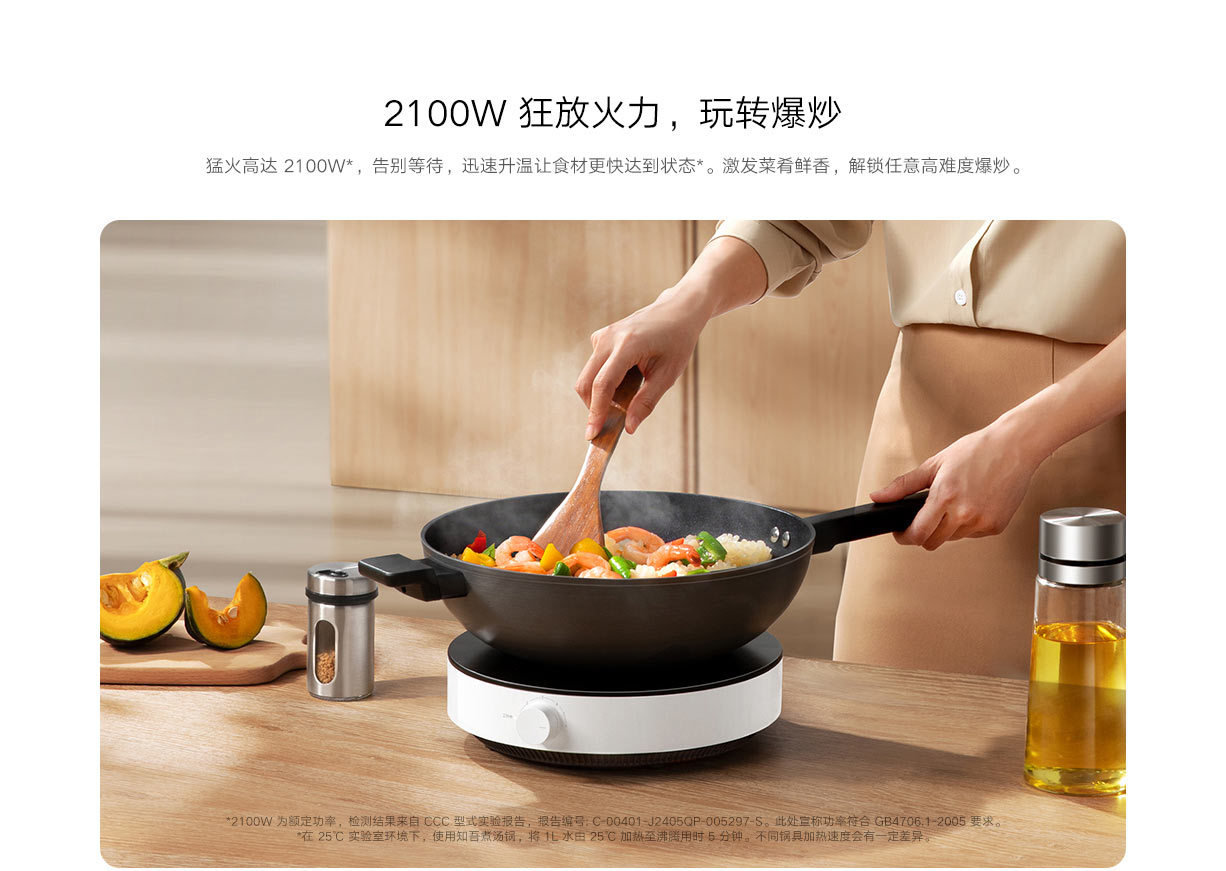 小米米家电磁炉N1/2家用多功能无明火2100W大功率6档变频控温炒菜