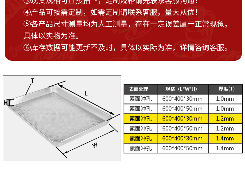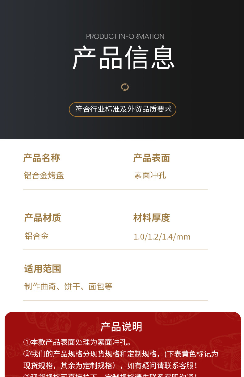 铝合金烤盘素面冲孔 40*60长方形托盘 商用披萨面包蛋糕烘焙模具